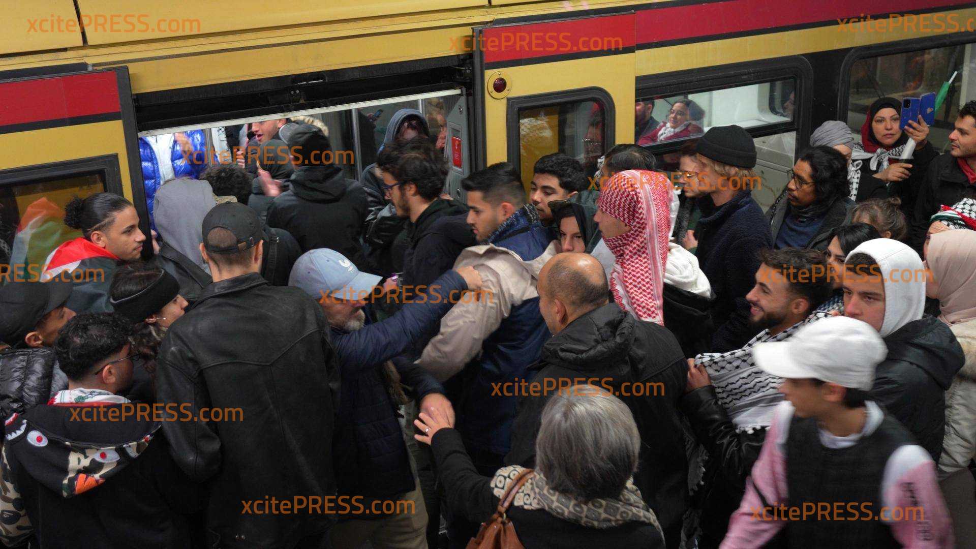 NEUE BILDER: Hunderte ziehen durch Bahnhof - vereinzelte Rangeleien, behelmte Polizisten sichern den Bahnhof und Regierungsgebäude: Zahlreiche Festnahmen (ON TAPE), laut Veranstaltern 50.000 Teilnehmer - Polizei mit über 1.000 Beamten im Großeinsatz, Anti-Hamas-Plakat sorgt für Demo-Verweis (O-Ton)