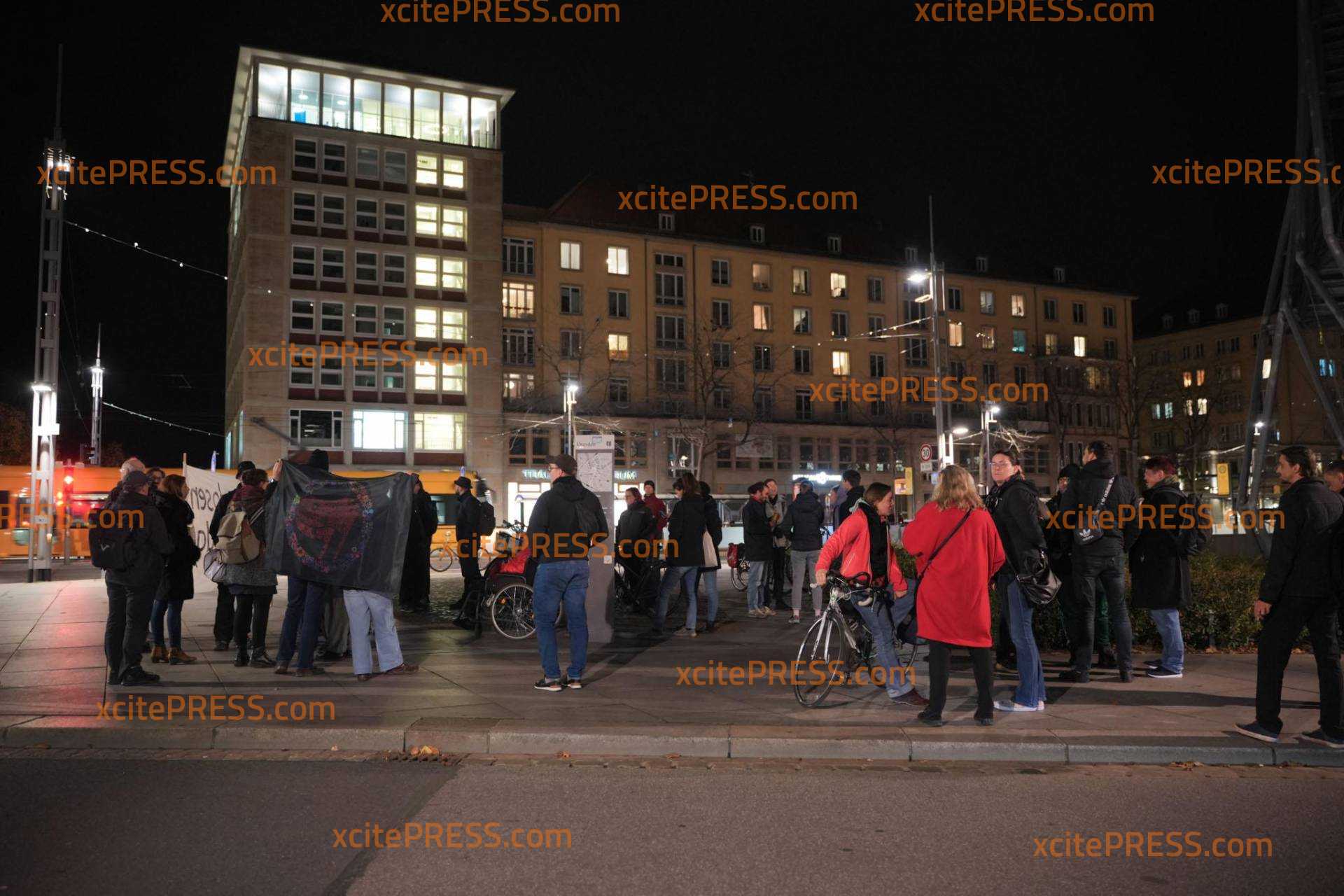 Demo von Kritikern vor dem Gebäude - Polizei im Einsatz