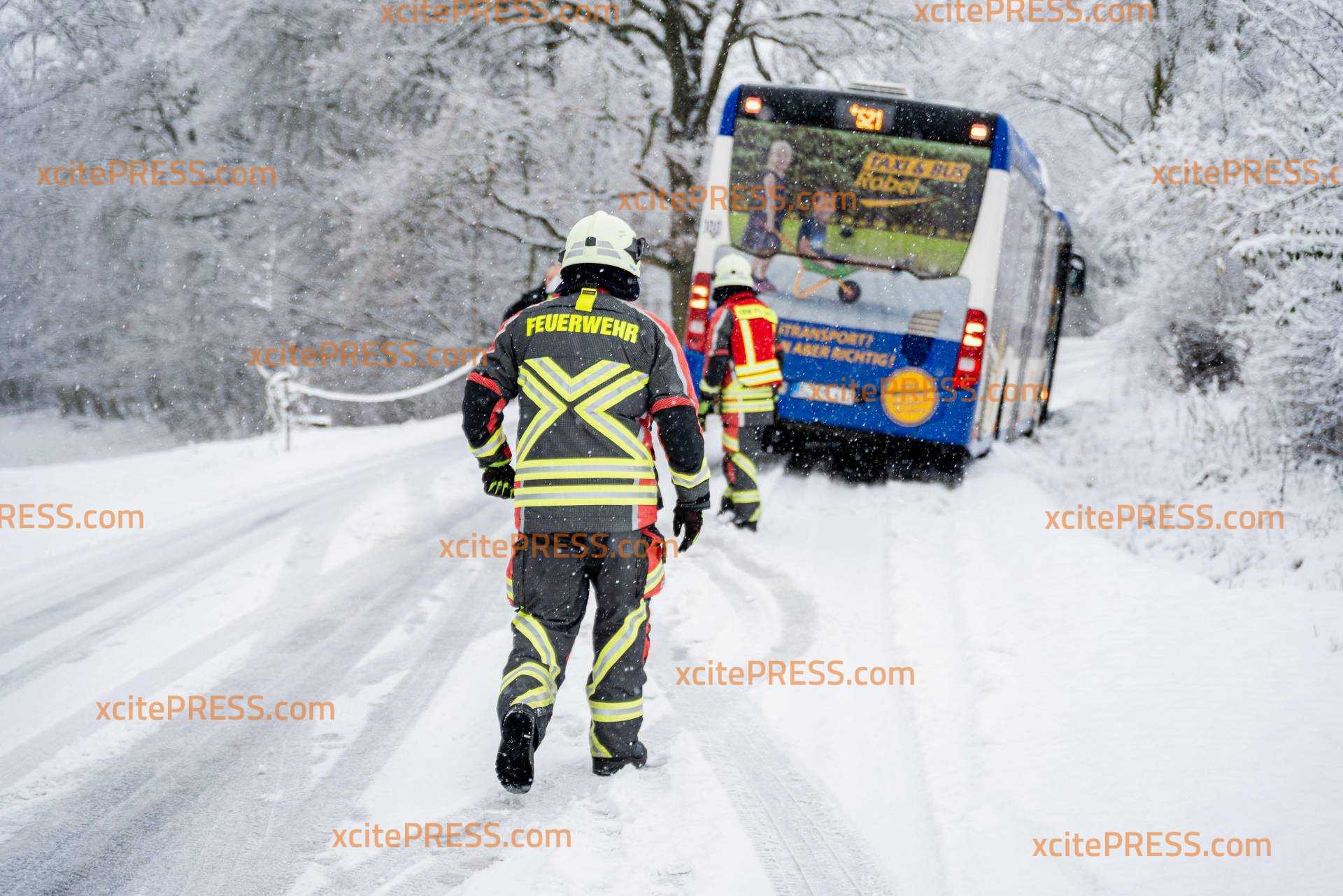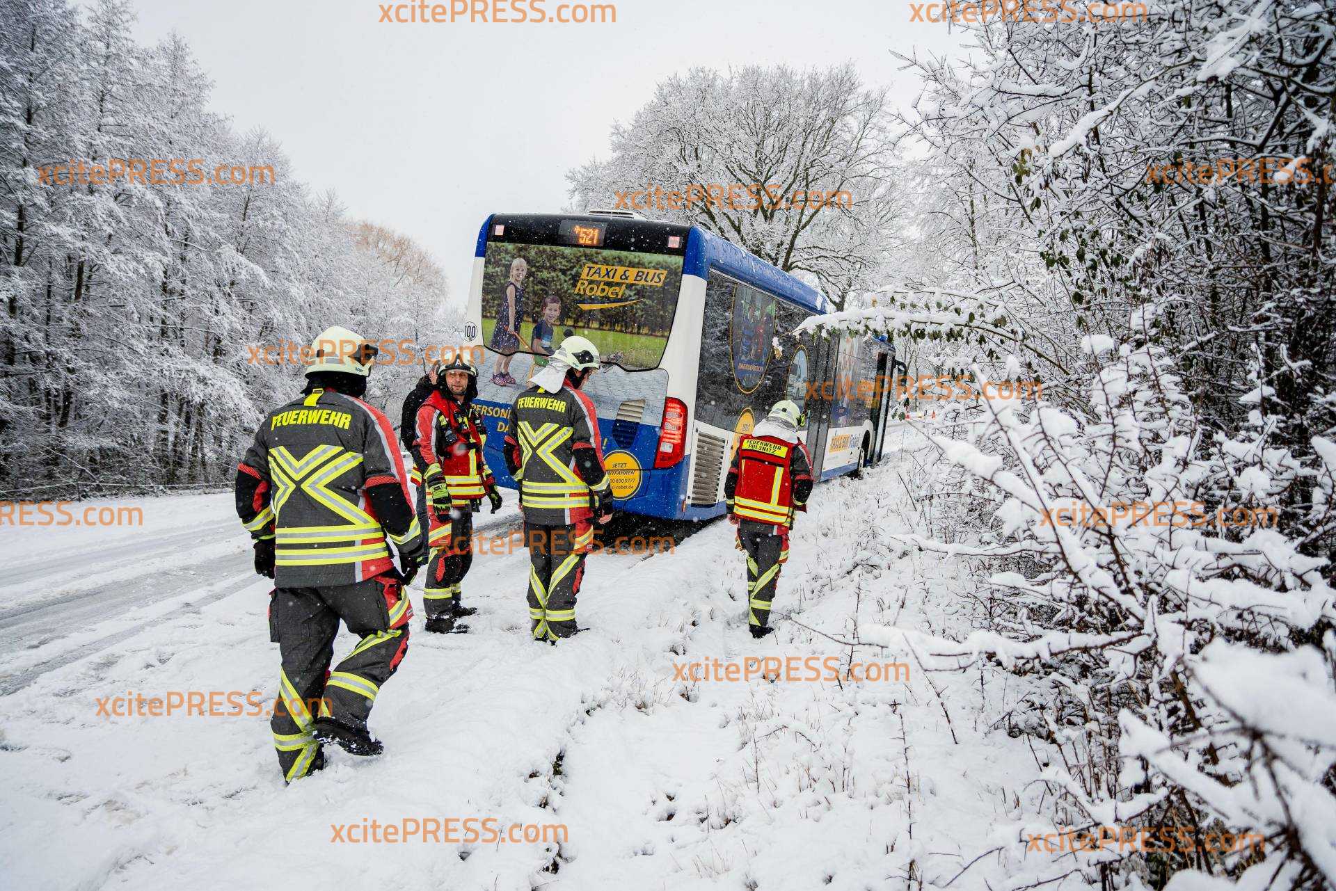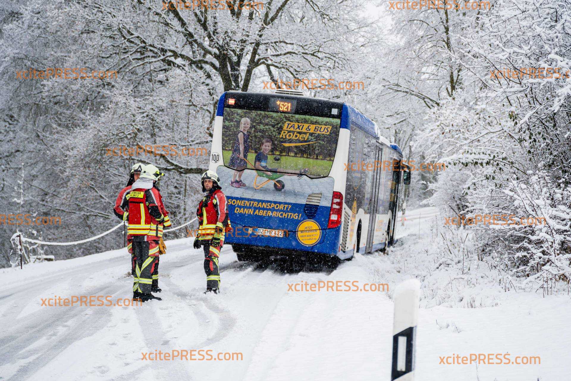 Linienbus kommt von Straße ab und rutscht in den Graben - Feuerwehr muss anrücken