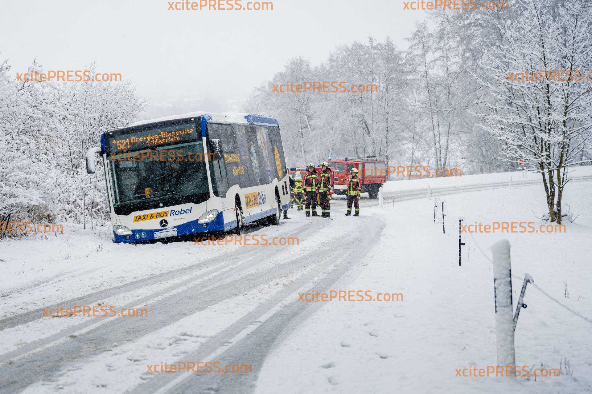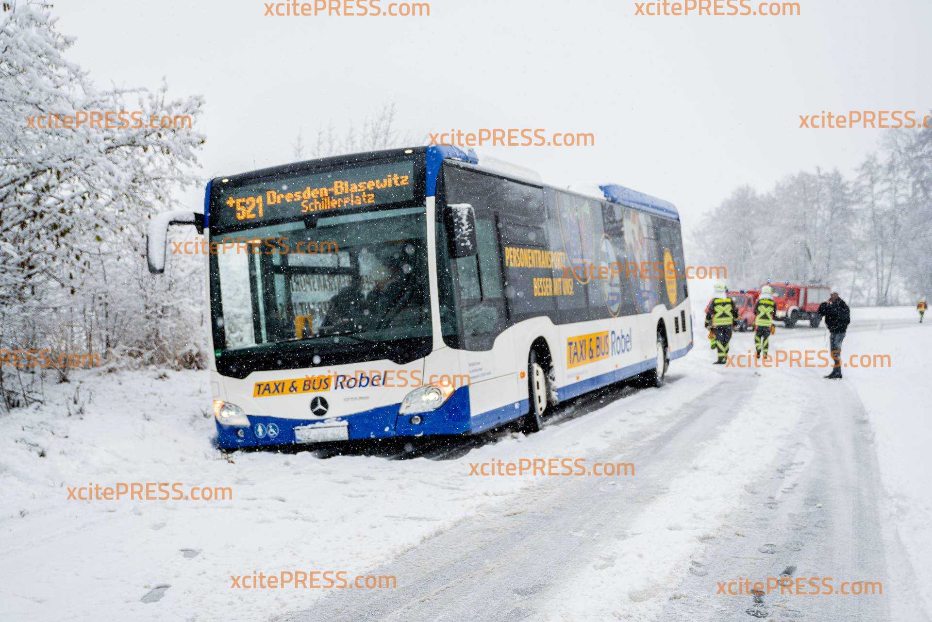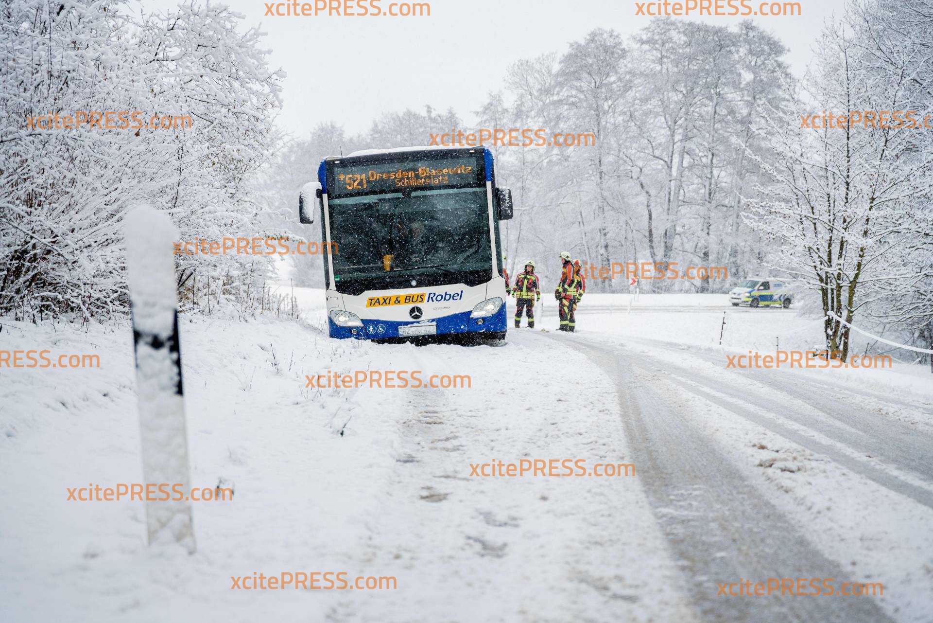 Die massiven Schneefälle am Tag vor Heiligabend haben vor allem östlich der Elbe in der sächsischen Lausitz für Probleme im Straßenverkehr gesorgt. In der Kleinstadt Pulsnitz zum Beispiel war ein Linienbus auf der extrem glatten Fahrbahn in einen Straßengraben gerutscht. Der Bus versuchte noch selbst aus der Lage herauszukommen, neigte sich dabei aber immer mehr und drohte zeitweise weiter zu kippen. Die Feuerwehr rückte an und sicherte den Unfallort ab. Ein Bergungsunternehmen wurde hinzugezogen, um den Bus zu befreien. Die Feuerwehr evakuierte die Fahrgäste und brachte sie zu einem Ersatzbus. Die Straße blieb für zwei Stunden gesperrt.