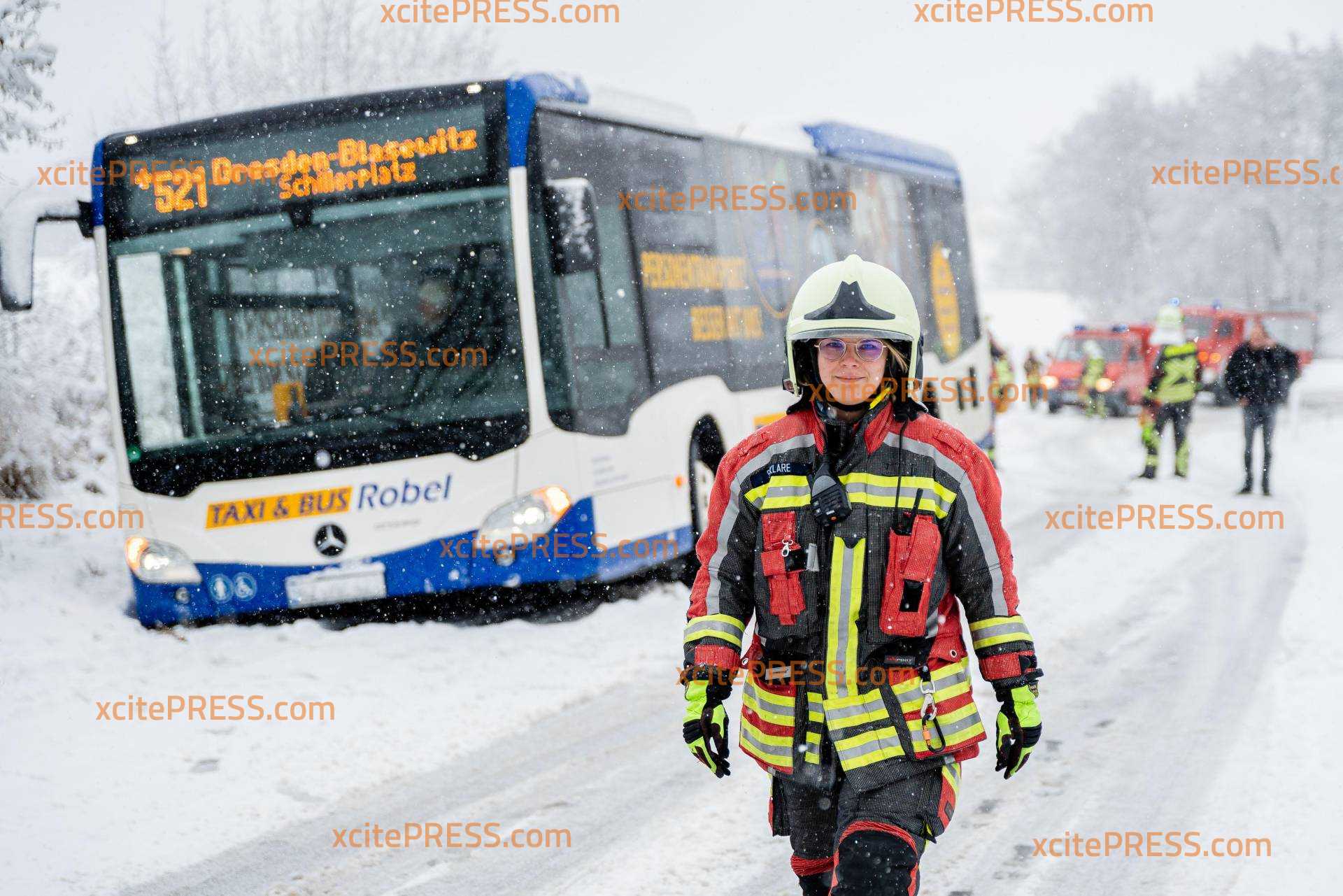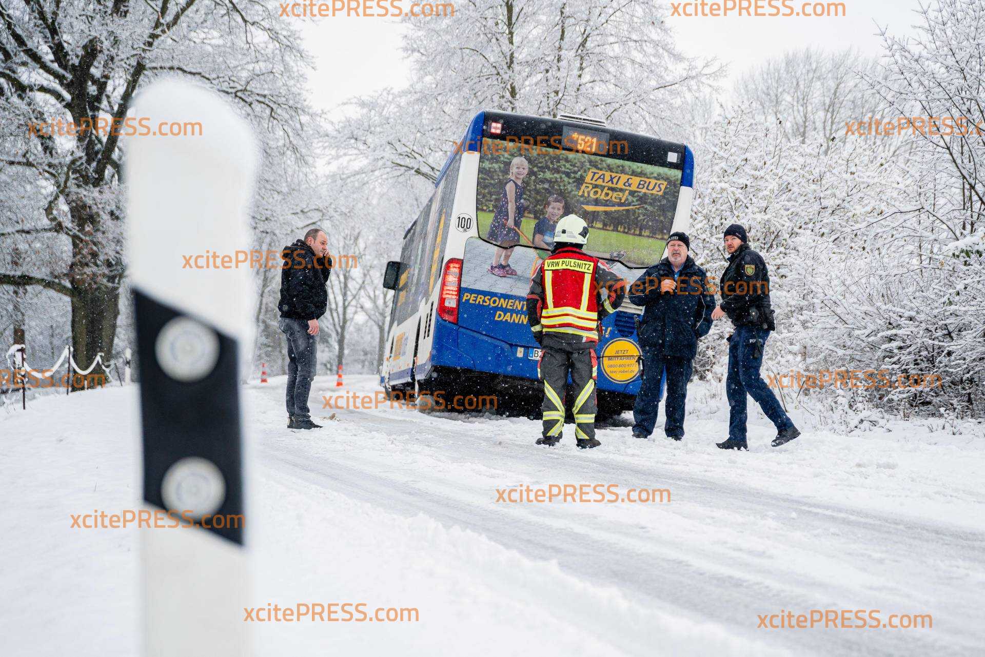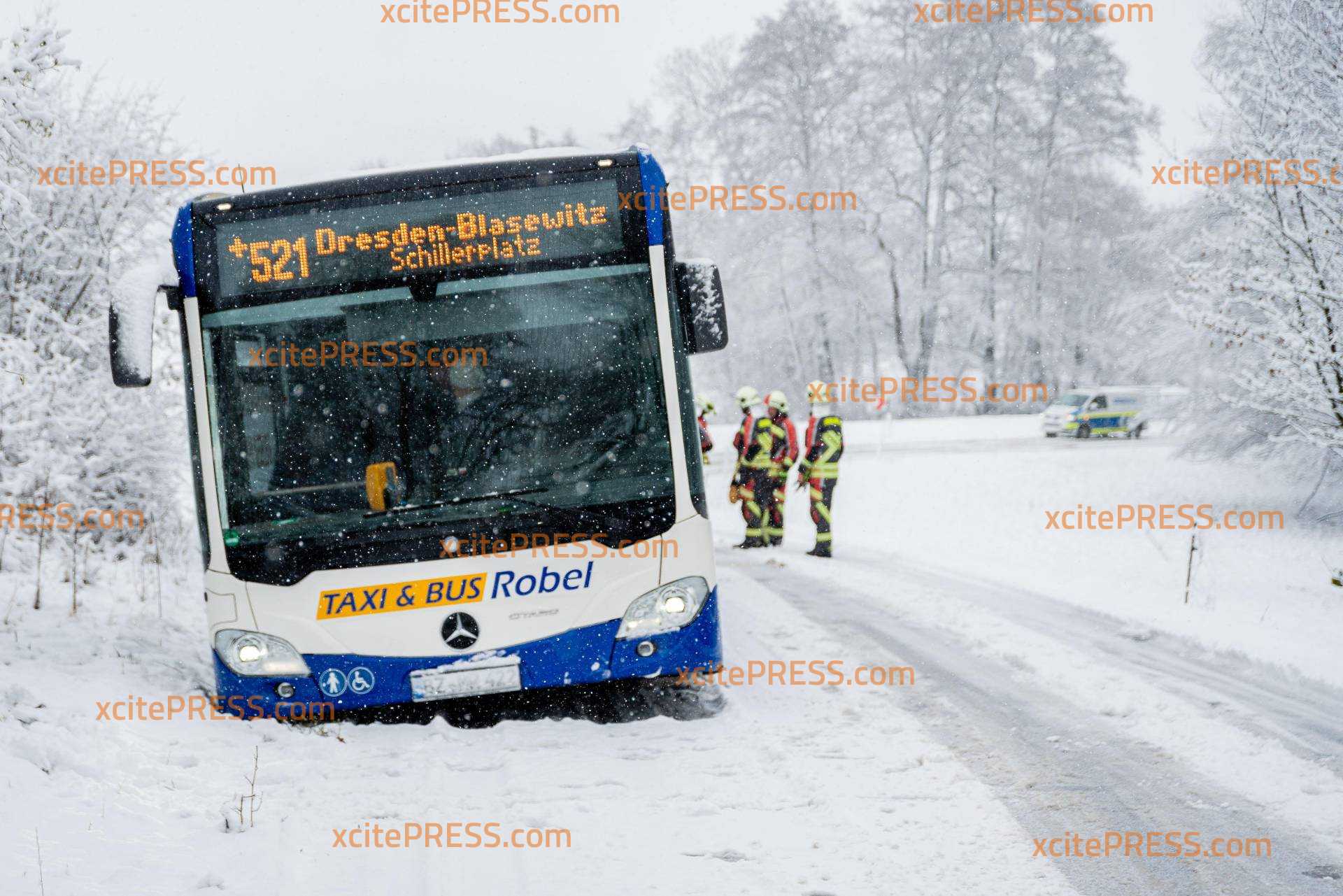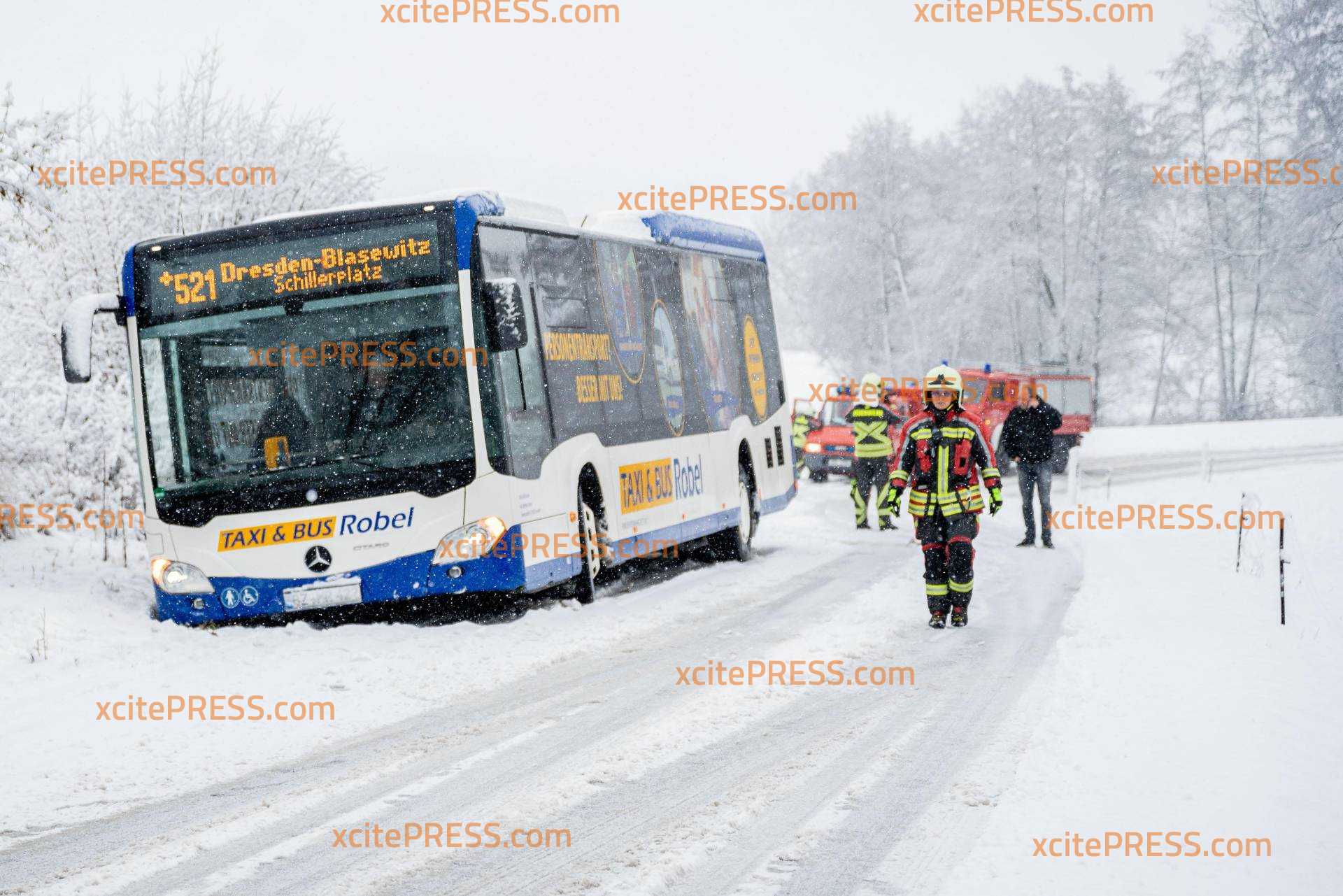 Die massiven Schneefälle am Tag vor Heiligabend haben vor allem östlich der Elbe in der sächsischen Lausitz für Probleme im Straßenverkehr gesorgt. In der Kleinstadt Pulsnitz zum Beispiel war ein Linienbus auf der extrem glatten Fahrbahn in einen Straßengraben gerutscht. Der Bus versuchte noch selbst aus der Lage herauszukommen, neigte sich dabei aber immer mehr und drohte zeitweise weiter zu kippen. Die Feuerwehr rückte an und sicherte den Unfallort ab. Ein Bergungsunternehmen wurde hinzugezogen, um den Bus zu befreien. Die Feuerwehr evakuierte die Fahrgäste und brachte sie zu einem Ersatzbus. Die Straße blieb für zwei Stunden gesperrt.