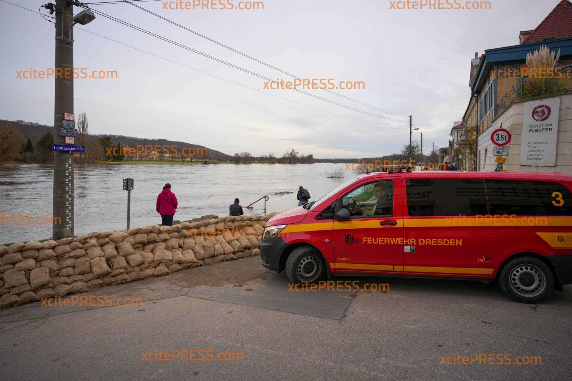 Das Elbe-Hochwasser wird zum gefährlichen Hingucker, Feuerwehr kontrolliert Hochwasser-Lage