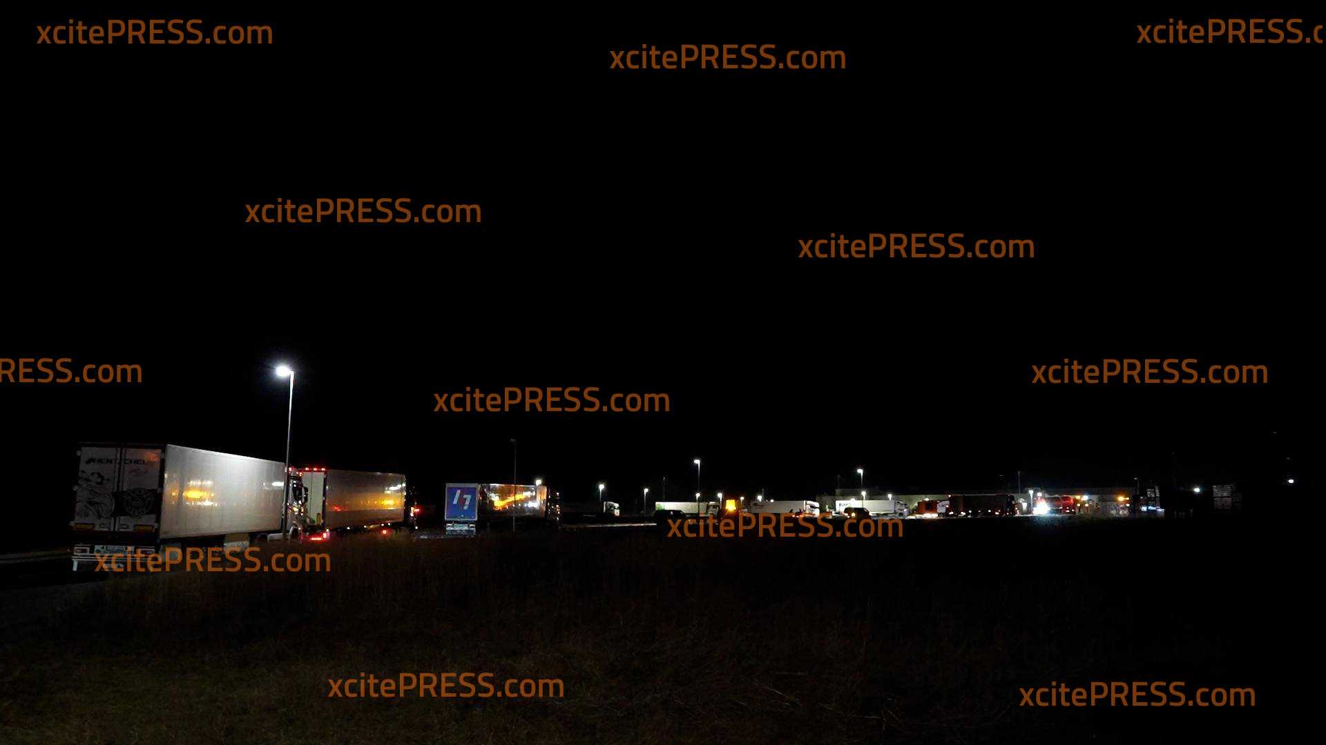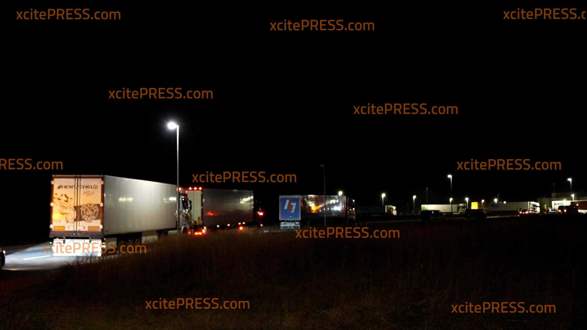 - LKW stehen im Stau