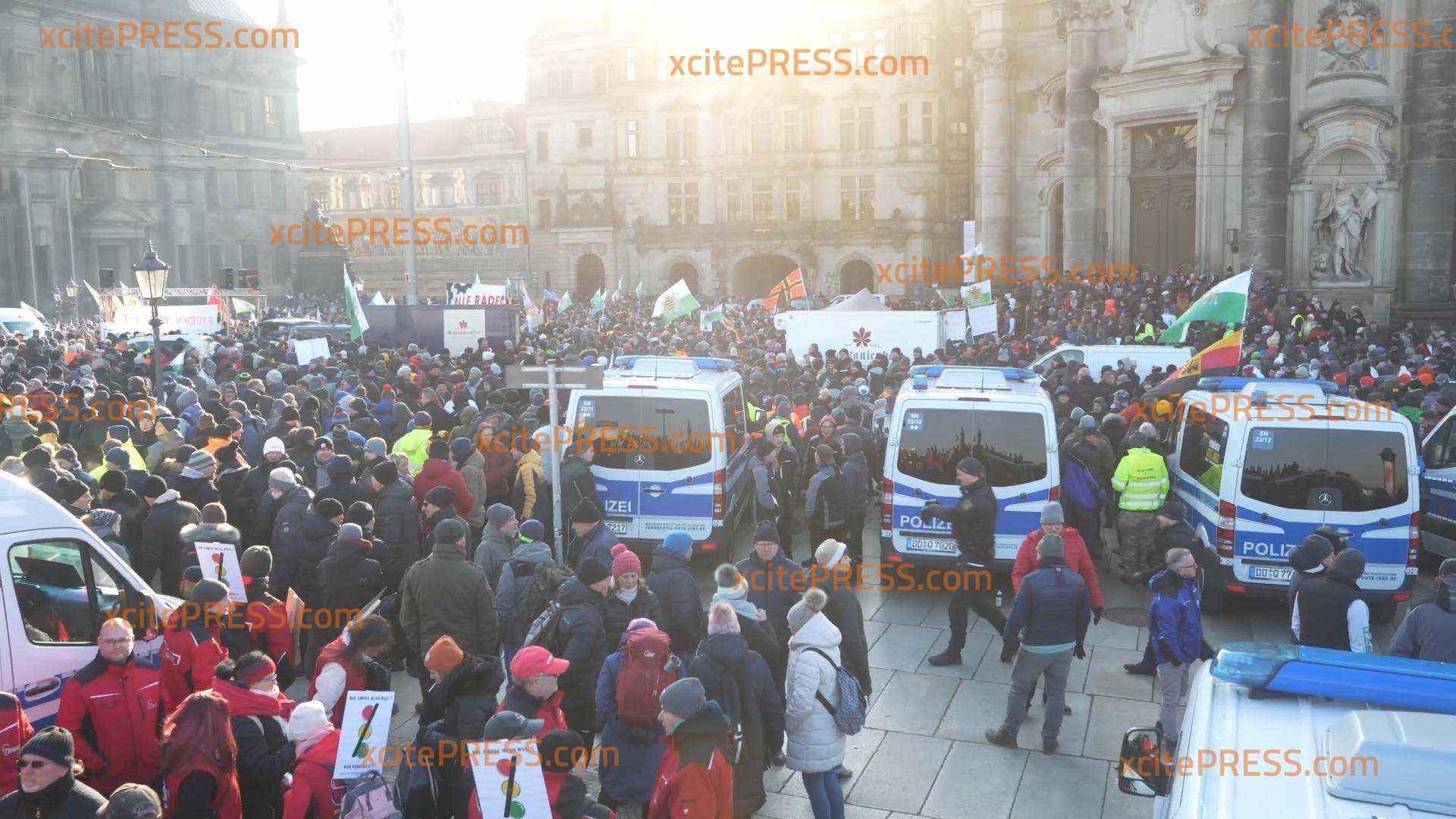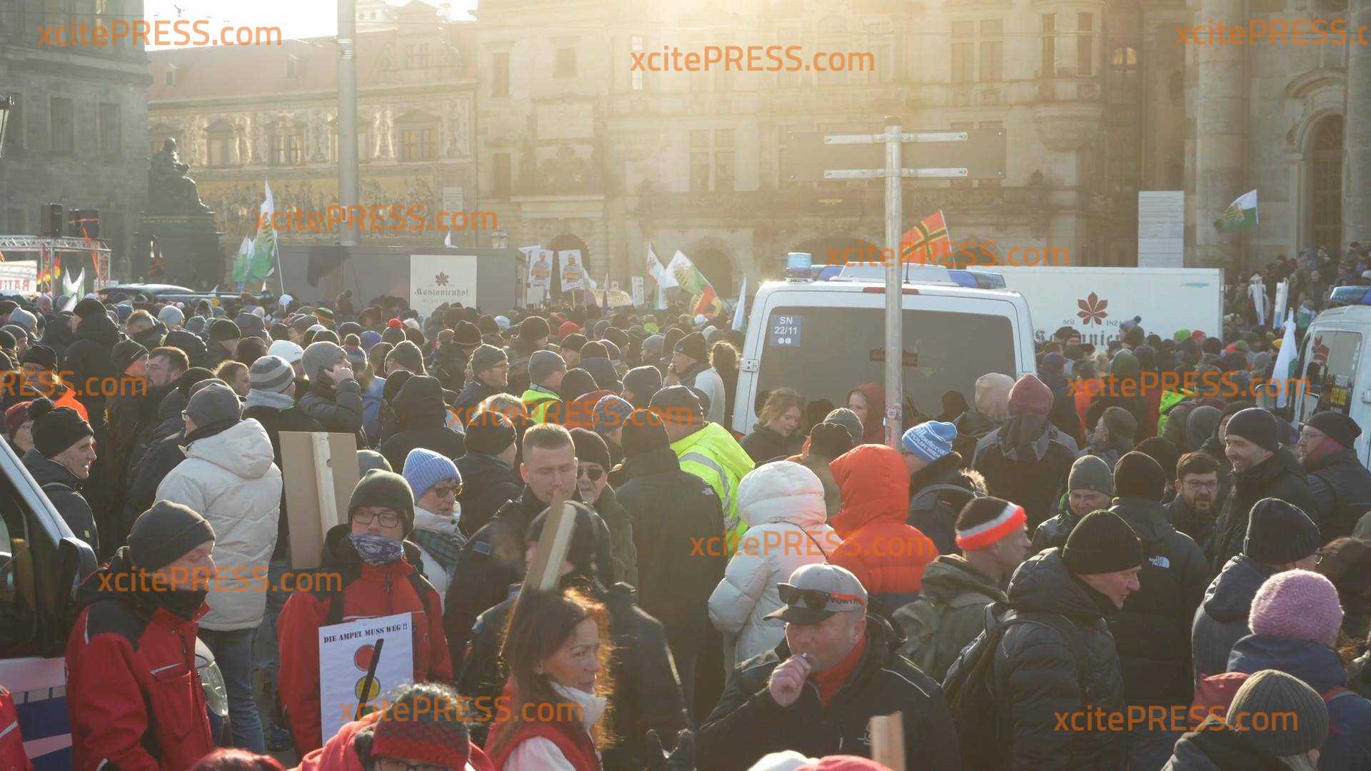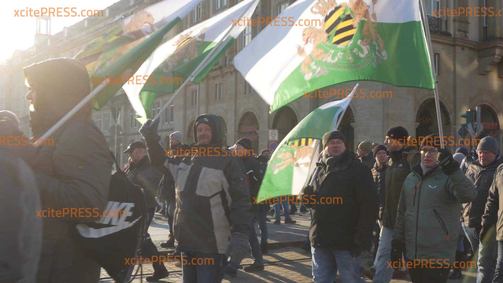 Die als rechtsextrem eingestuften Freien Sachsen haben eine Versammlung am Theaterplatz in Dresden organisiert. Aktuell (seit 12 Uhr) befinden sich Tausende Menschen vor Ort, mindestens 5000, so unser Reporter. Ob die Freien Sachsen die Bauern-Proteste so für ihre Zwecke nutzen wollen?! Der Bauernverband hat sich im Vorfeld deutlich von diesen Gruppierungen distanziert. Unser Reporter berichtet von Fahnen der Freien Sachsen sowie Reichsfahnen.