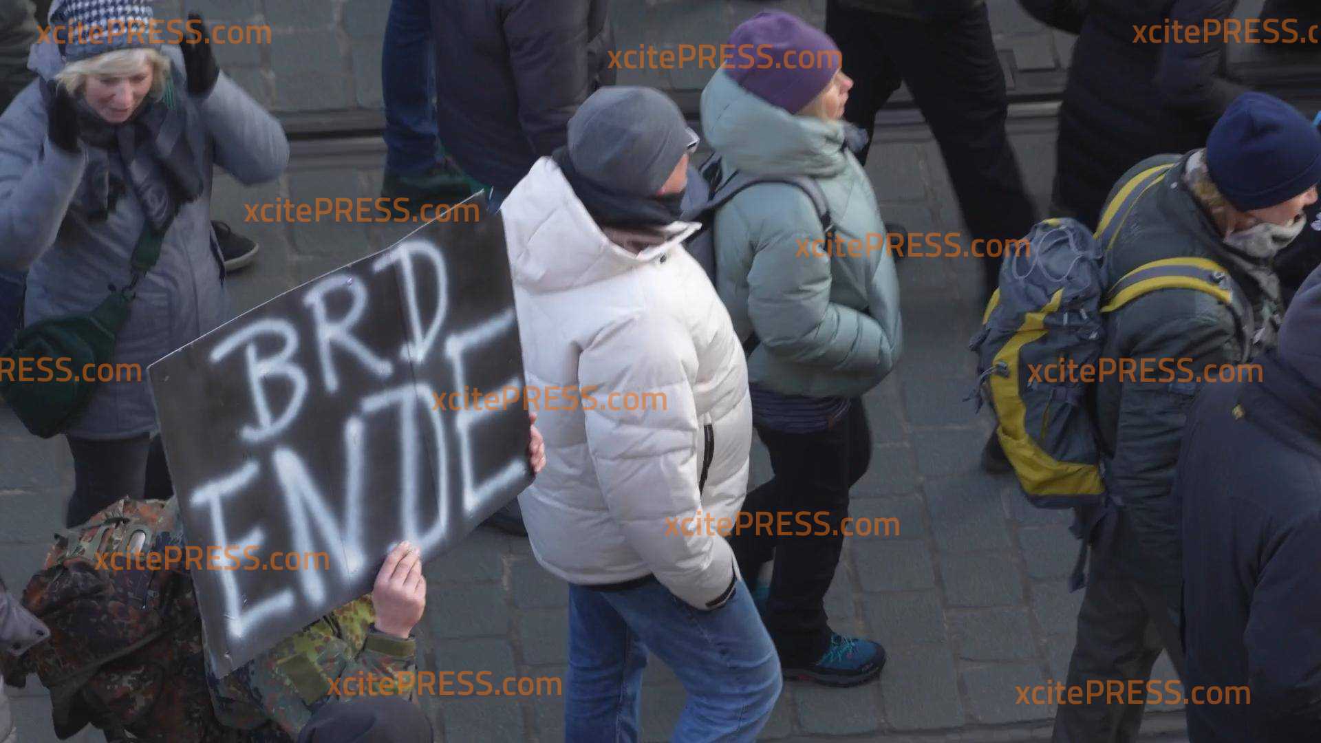 Andere Redner kritisieren die Corona-Politik, hetzen gegen Asylbewerber, loben die AfD. Auch rechte Souvenirs werden verkauft. Auf Aufklebern ist zu lesen: „Grüne an die Ostfront“.