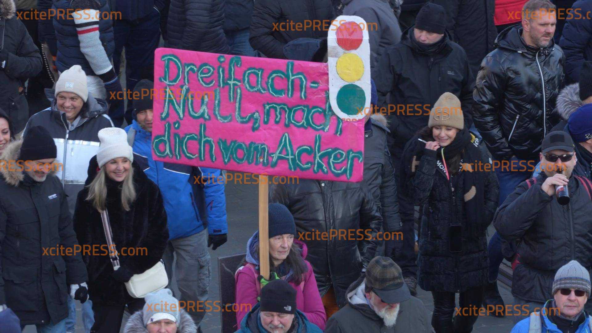 Vor der Staatskanzlei fanden mehrere Redebeiträge statt. Um die Bauernproteste ging es bei den Rednern jedoch kaum, eher wurde das gesamte System infrage gestellt, gegen Minderheiten, Politiker und Polizisten gehetzt. Ein großer Autokorso mit Traktoren, LKW und PKW zog an der Demonstration vorbei - mehrere Fahrzeuge hatten symbolisch die Ampelregierung am Galgen aufgehangen, doch Widerspruch erhielt diese Art des Protests keinen.