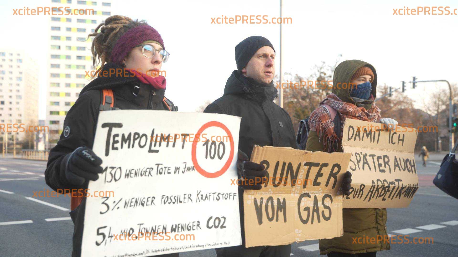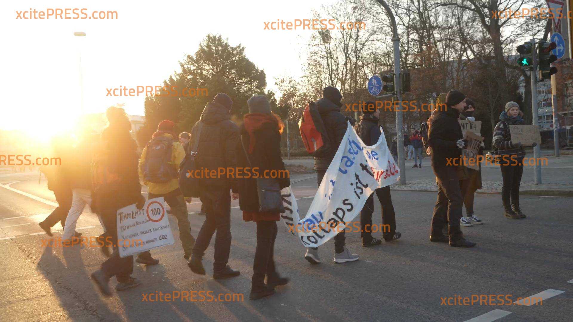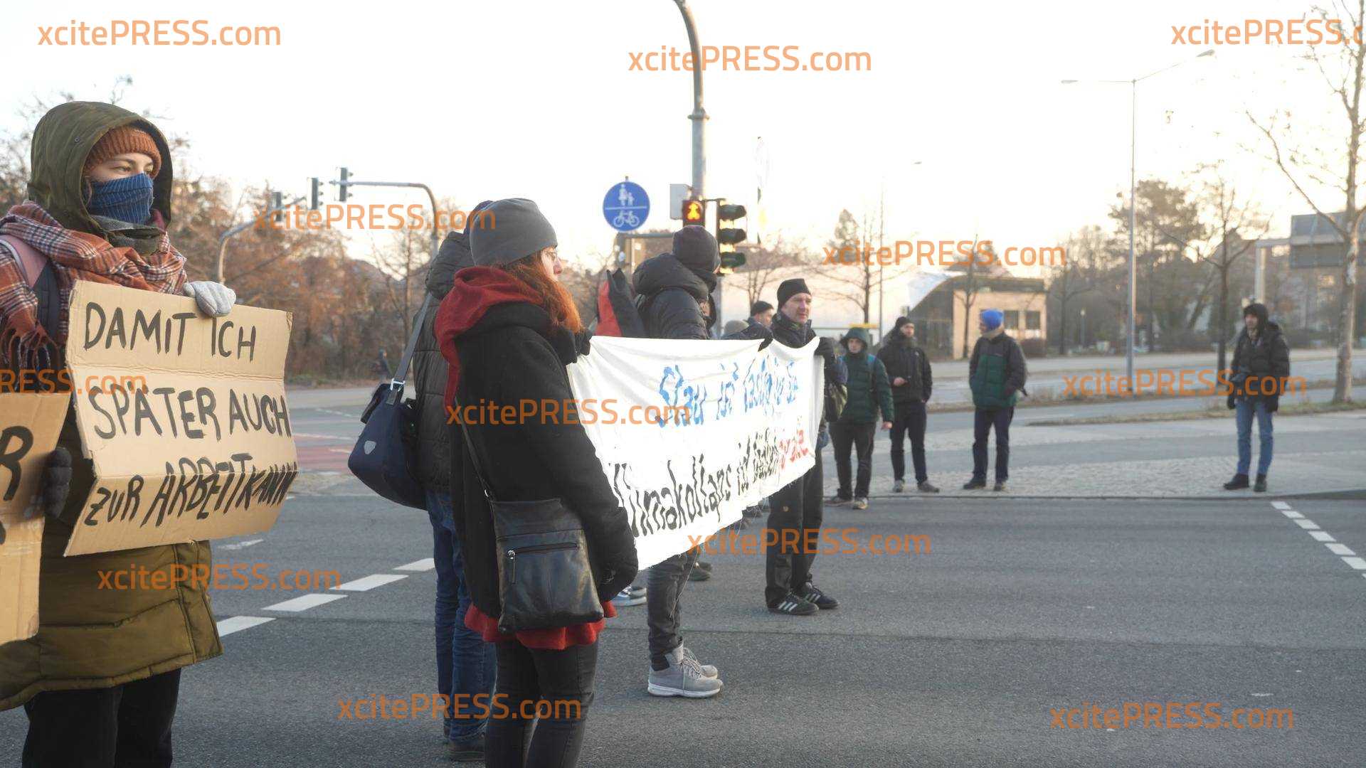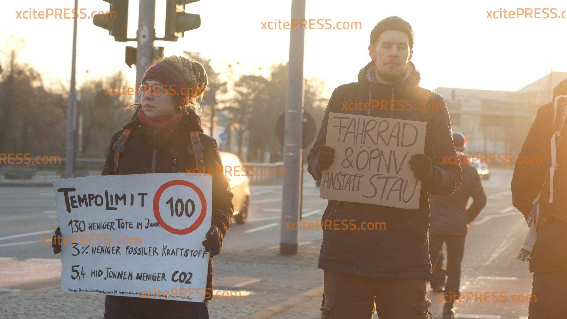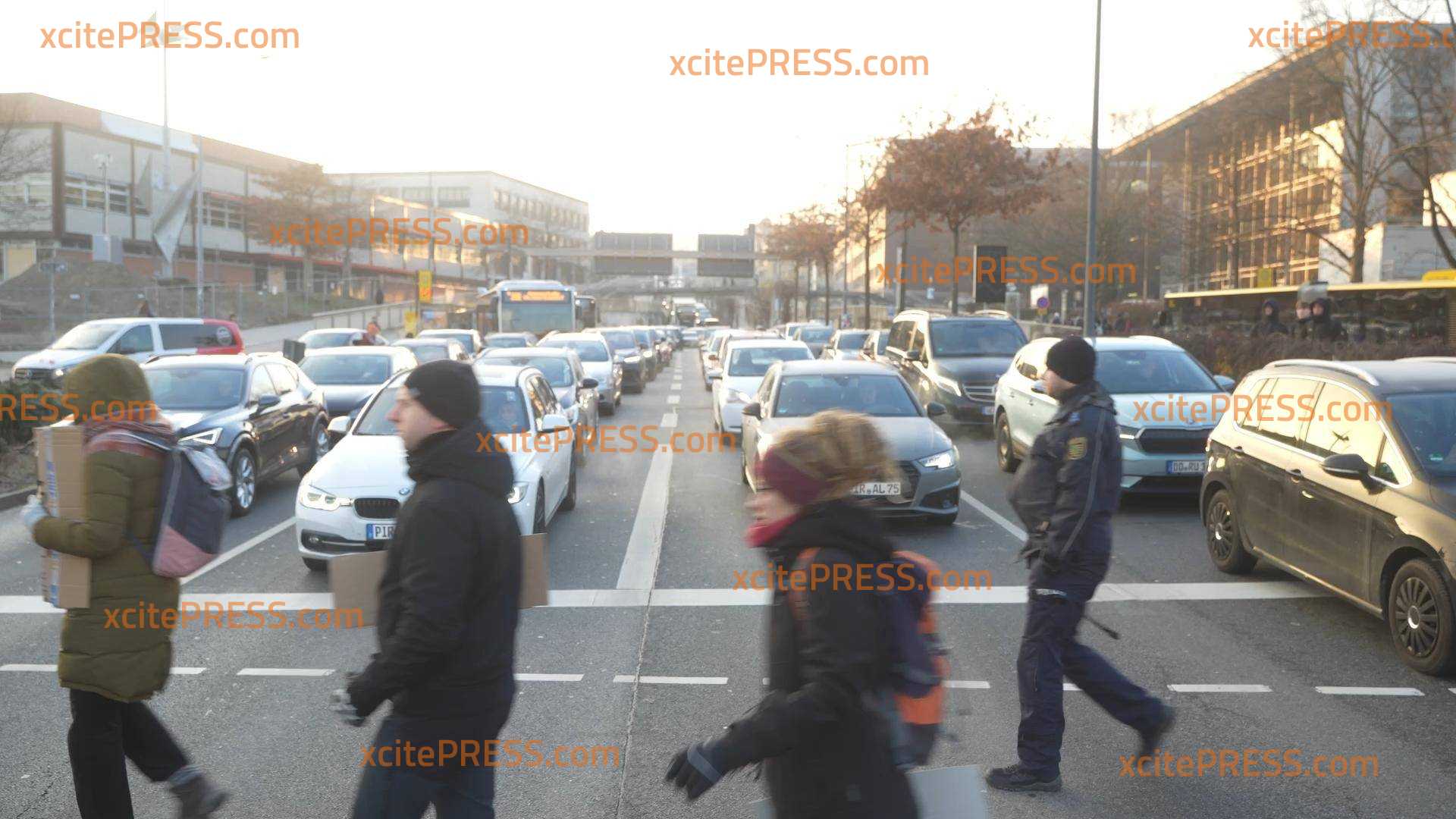 Gemeinsamer Protest von BAUERN und KLIMA-KLEBERN? Landesbauernverband nicht abgeneigt - Klebe-Aktivisten solidarisieren sich mit Bauern-Protesten, Blockade-Protestaktion am Dienstagfrüh im Berufsverkehr, bei enormer Kälte (-11 Grad!) stellen sich über 20 Aktivisten auf vielbefahrene Kreuzung in Sachsens Landeshauptstadt