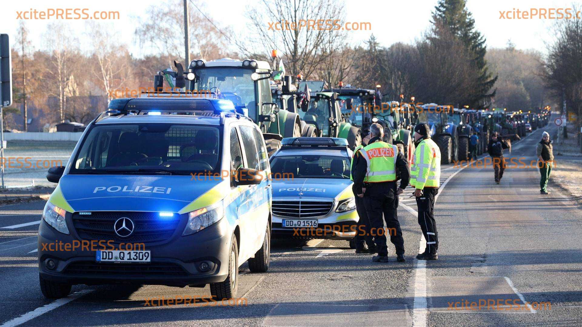 Seit Sonntagnachmittag protestieren in ganz Sachsen Bauern gegen die geplanten Kürzungen von Subventionen durch die Bundesregierung. Am Mittwoch mobilisieren die Landwirte zu einer Großdemo in Dresden - mehrere Sternfahrten wie auf der Bundesstraße 6 in Richtung Landeshauptstadt wurden organisiert. Dabei gibt es teils mehrere kilometerlange Schlangen von landwirtschaftlichen Maschinen. Gegen 11.00 Uhr ist der Beginn der Großkundgebung geplant.