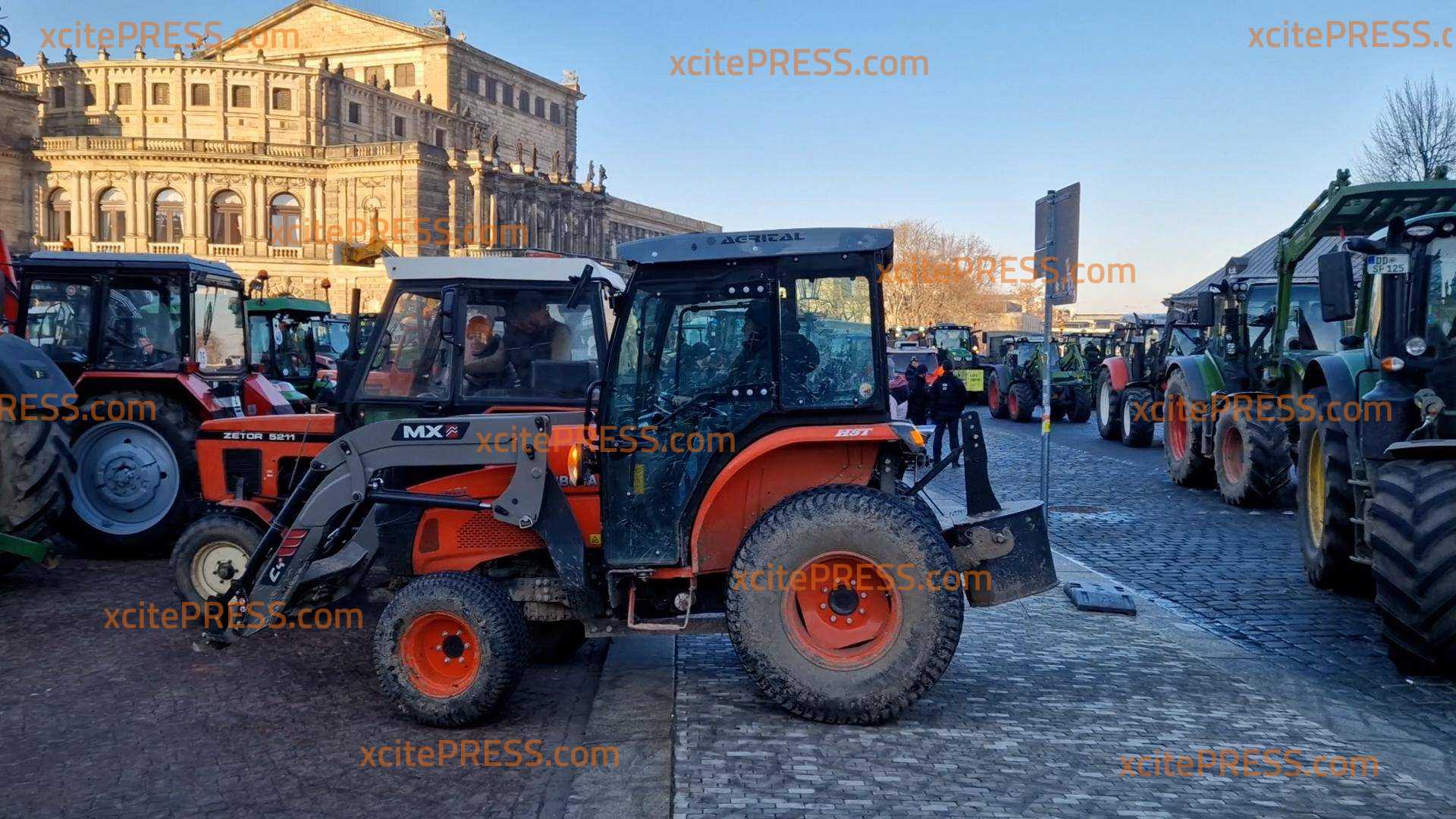 Der Theaterplatz ist gefüllt mit hunderten Traktoren, tausende Menschen sind auf dem Platz. Der Protest richtet sich eindeutig gegen die Ampel-Politik. Ministerpräsident Michael Kretschmer (CDU) ist am Vormittag als Redner erwartet.