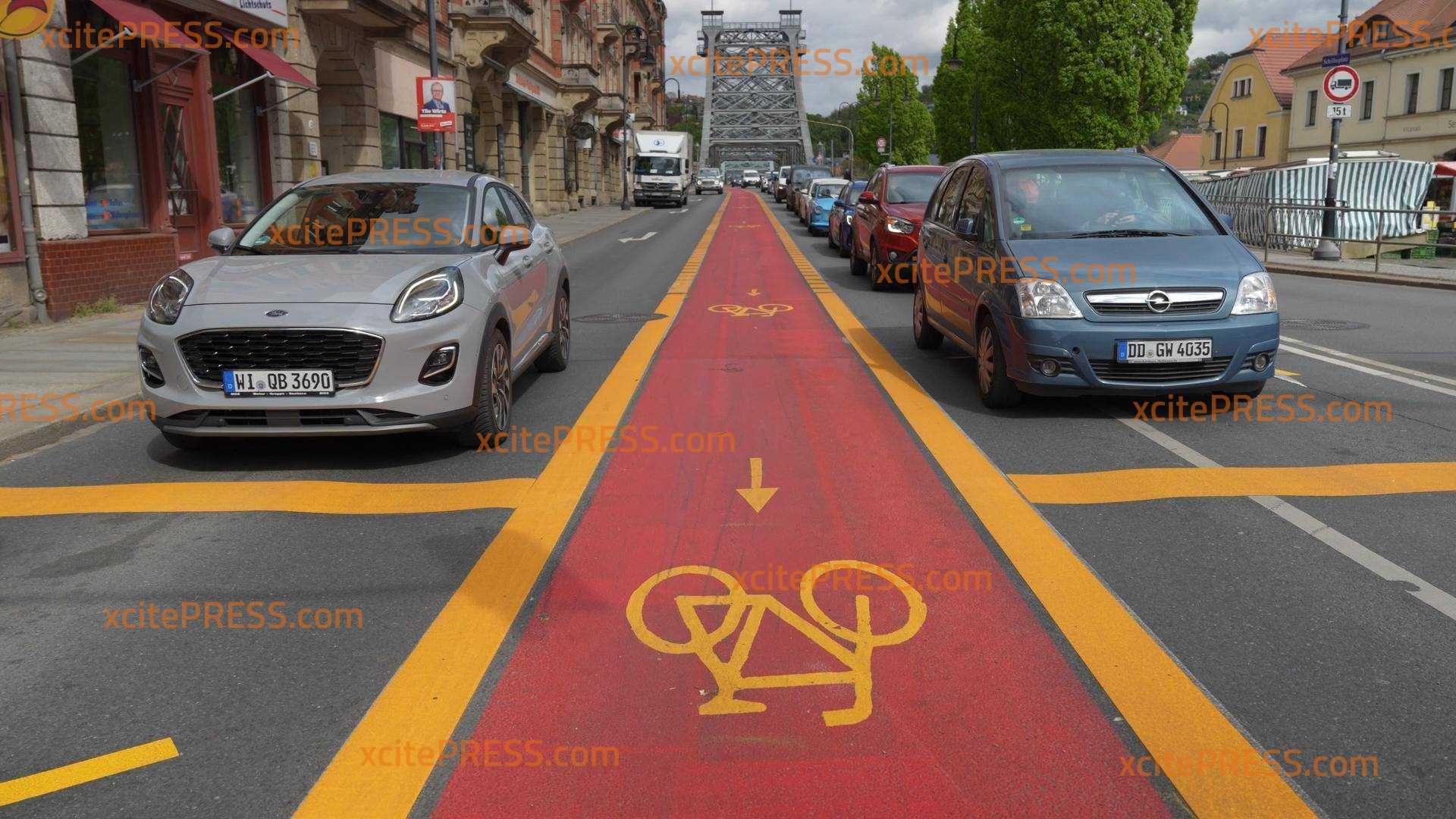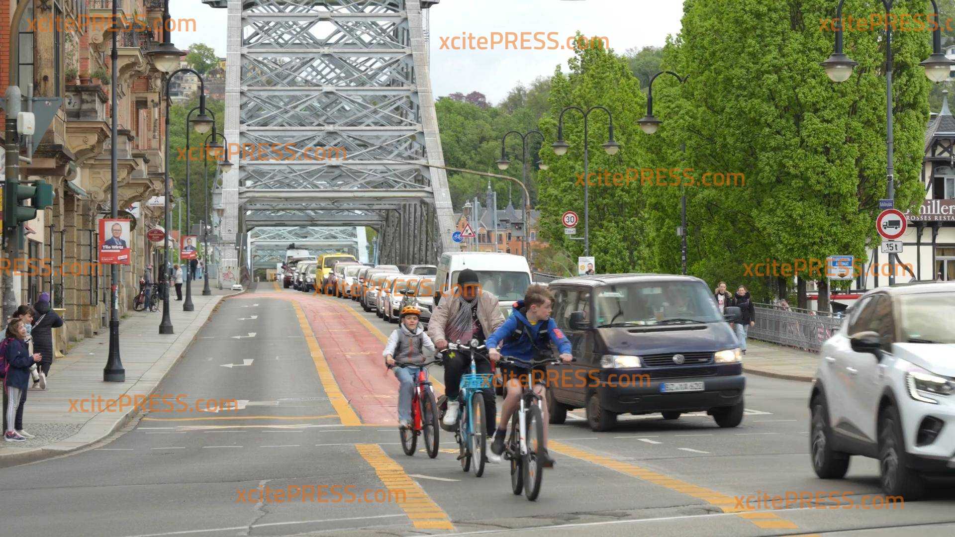 UPDATE: CDU begrüßt vorzeitigen Abbruch "Das war absolutes Chaos" - Skandal-Verkehrsversuch am Blauen Wunder beendet: 70.000 Euro-Radweg kommt nach nur einer Woche weg: Vox-Pops: "Das ist der Wahnsinn! Ich bin aus dem Bus ausgestiegen, damit ich schneller bin!"