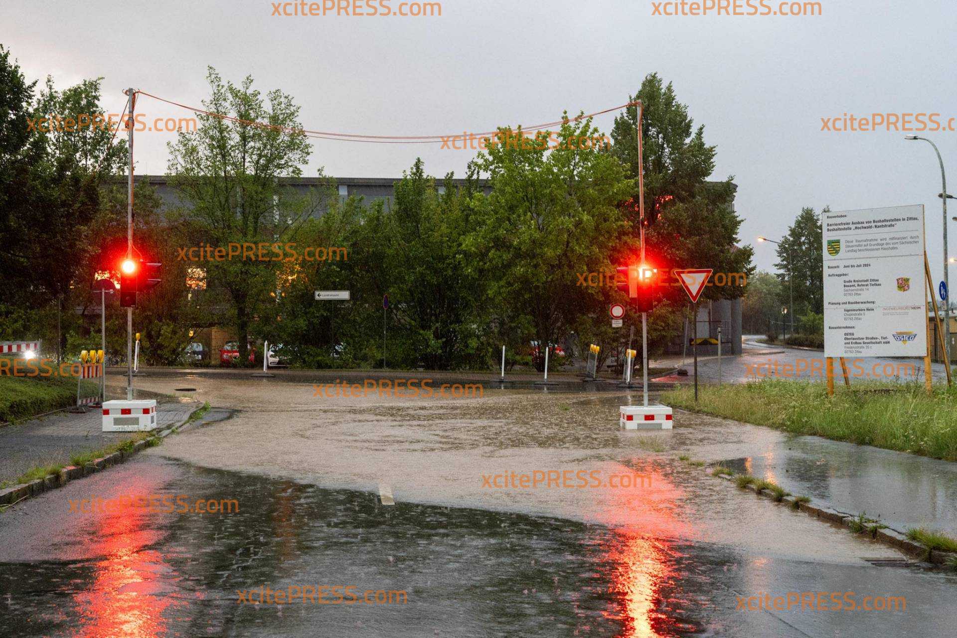 Zittau - Unwetter sorgt für überflutete Straße und umgeknickte Bäume
