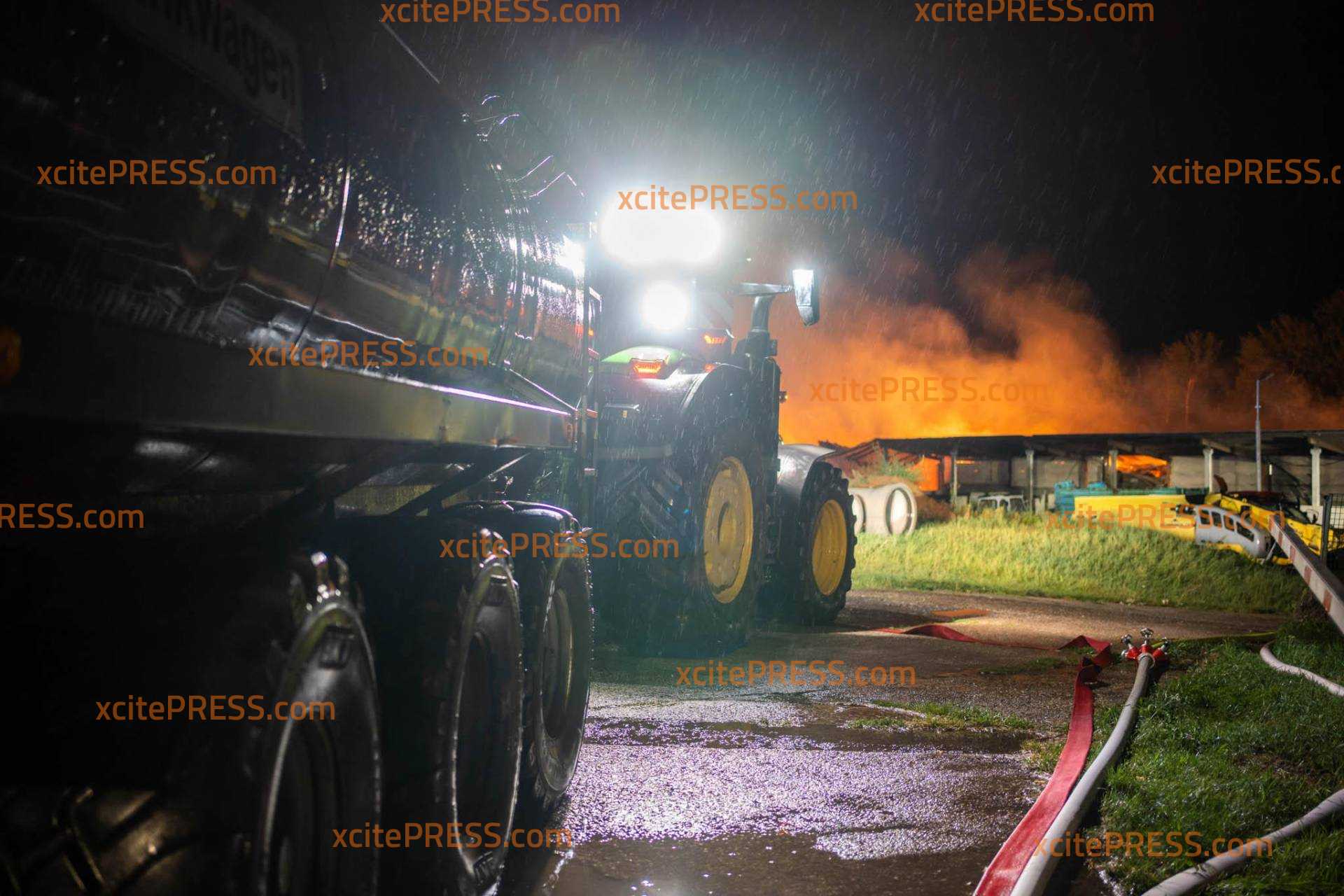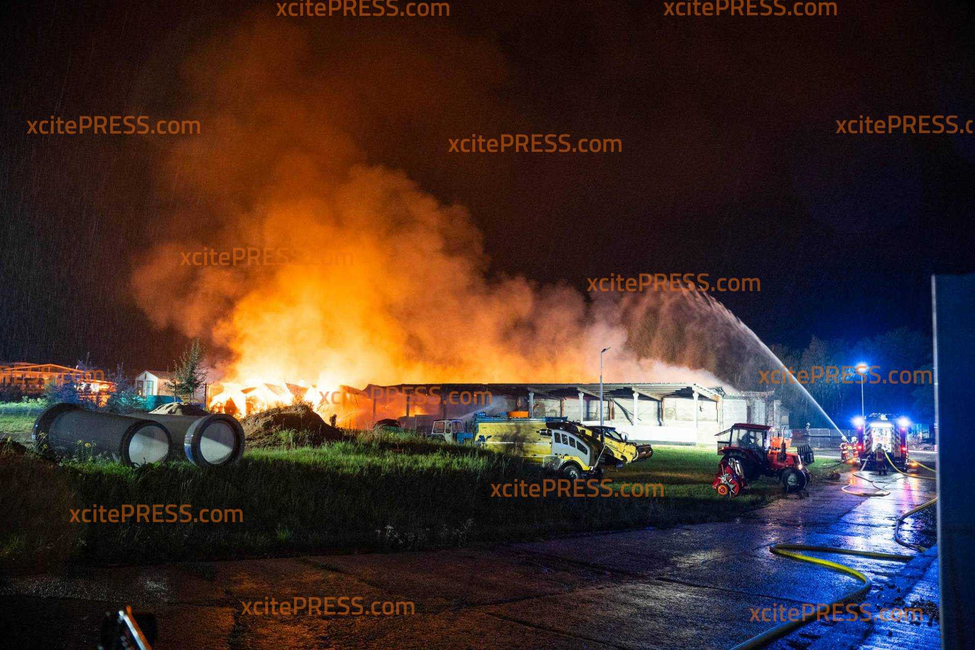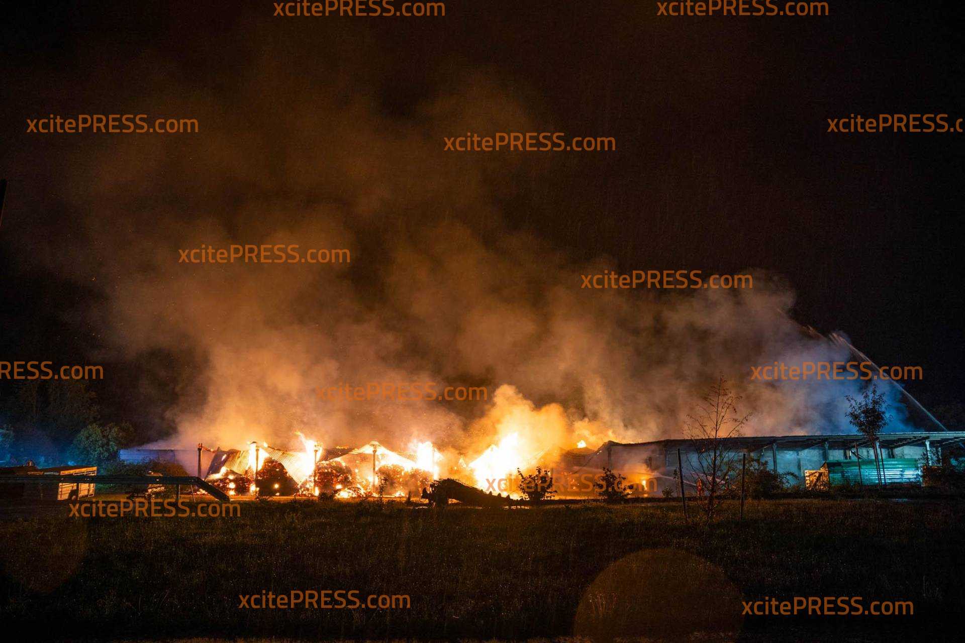 (NEUE INFOS) Schwein gehabt: hunderte Rinder und Schweine bei dramatischen Großbrand (2600 Quadratmeter) gerettet: Kripo ermittelt - betroffener Bürgermeister steht vor Flammenmeer (O-Ton): Schwieriger Einsatz für die Retter: Wassernetz-Zusammenbruch, schweres Unwetter ("Das hat uns stark getroffen"), Kräftemangel, freilaufende Tiere