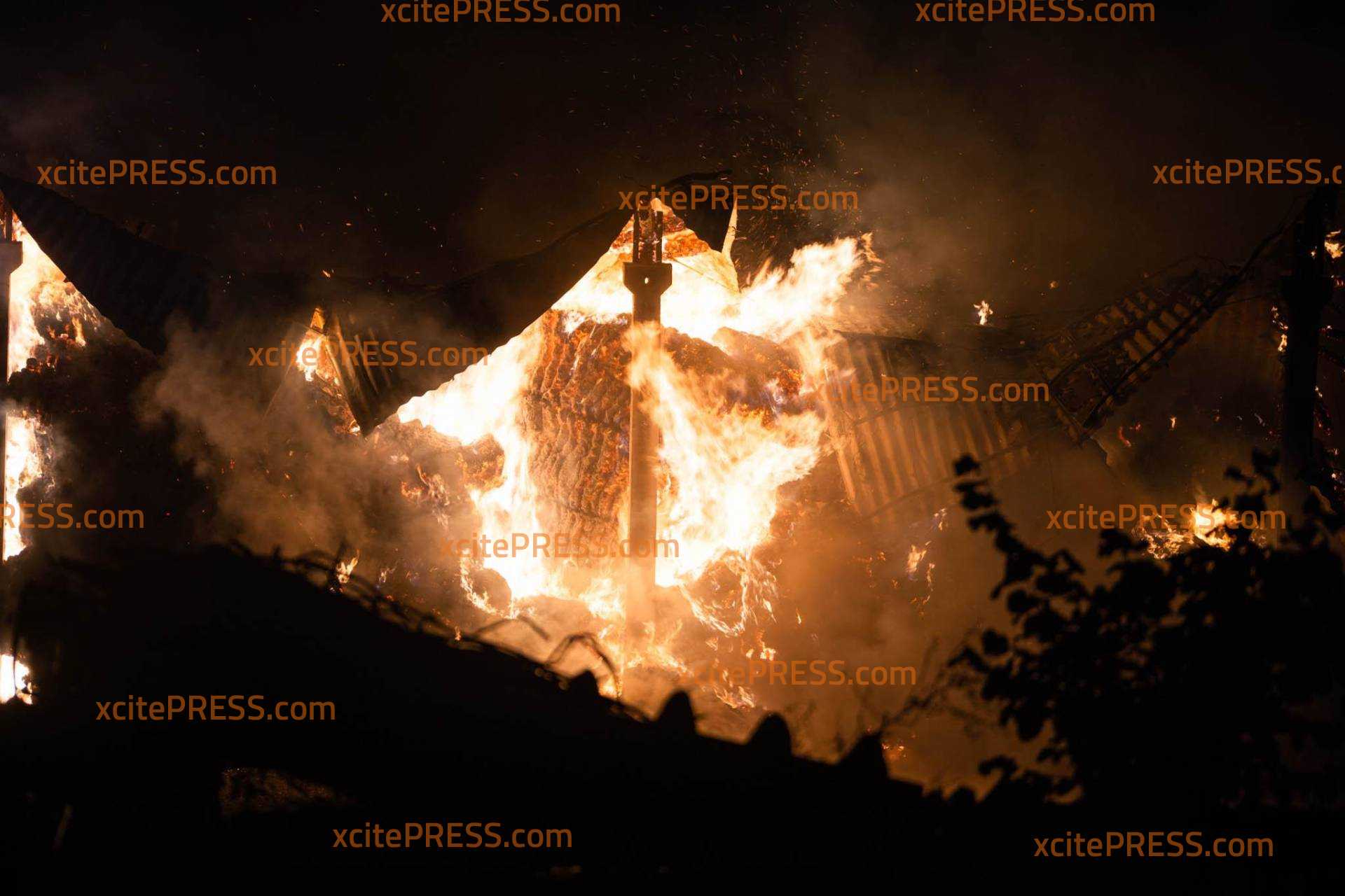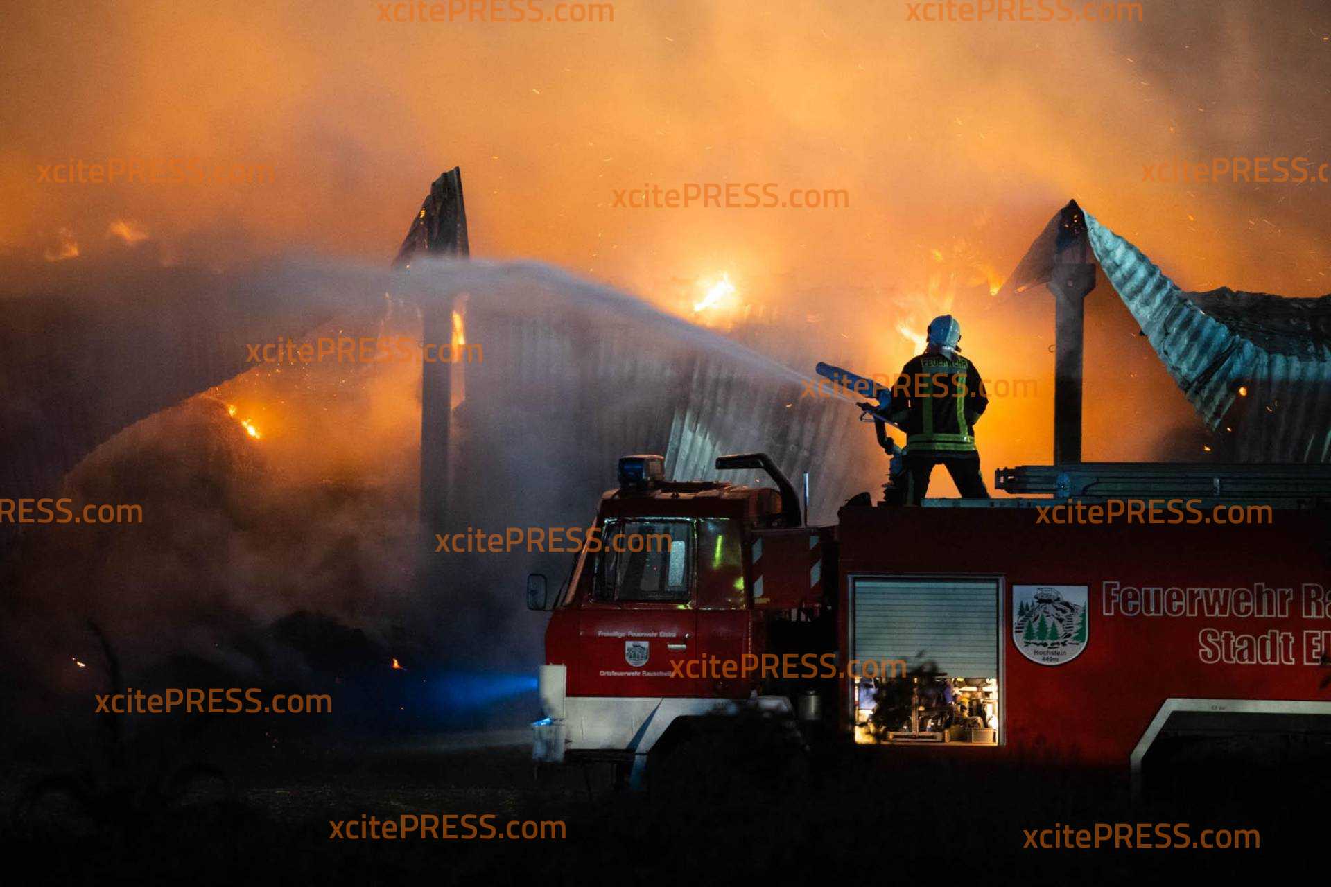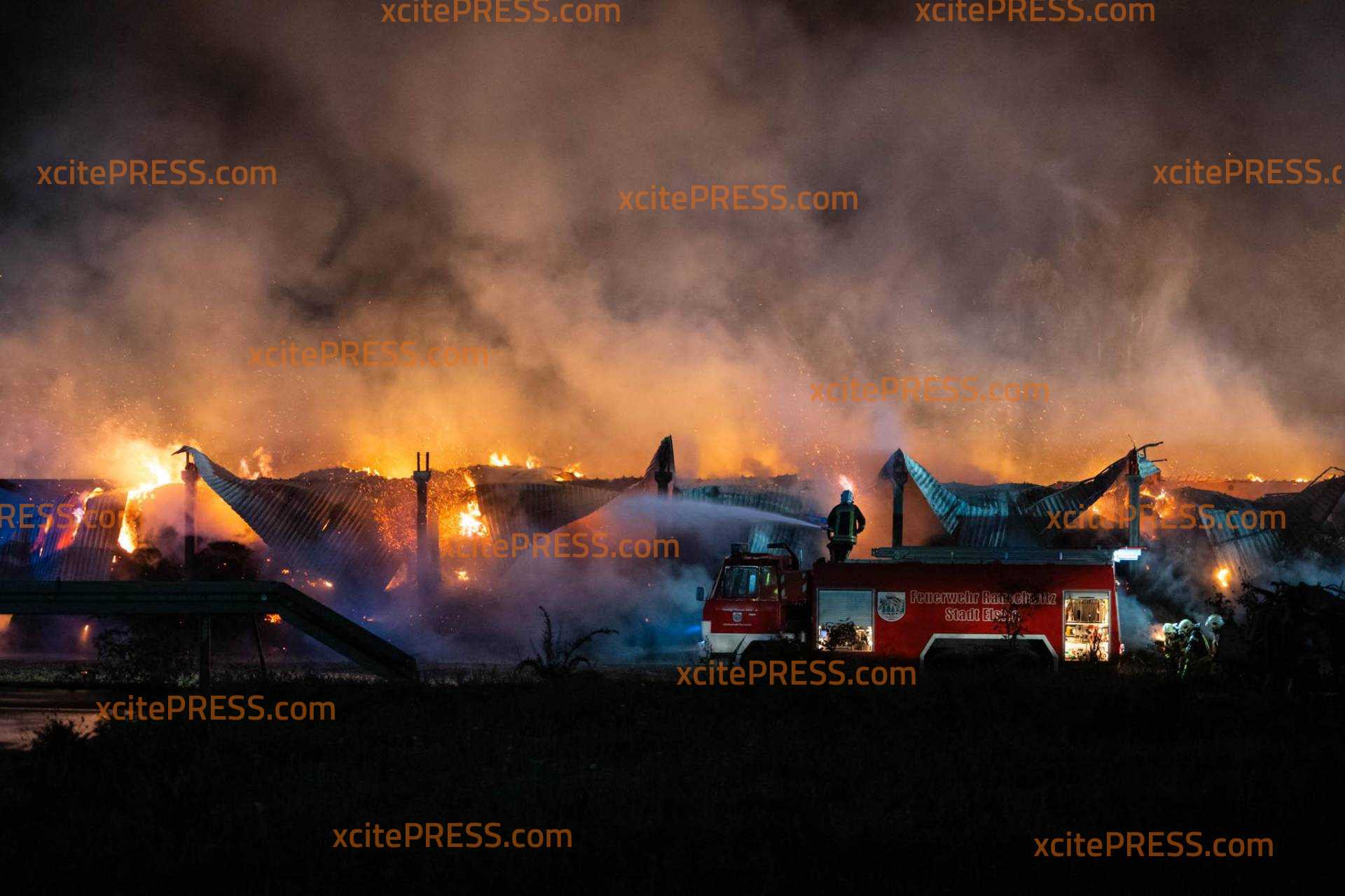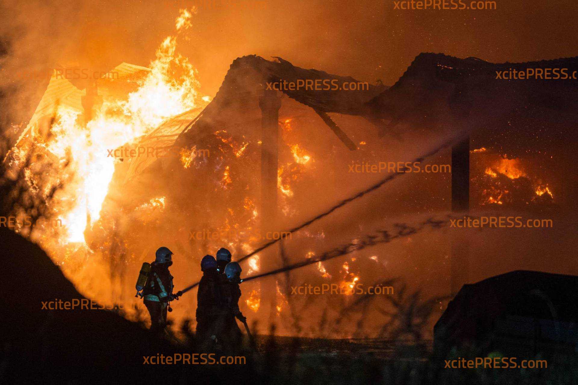 (NEUE INFOS) Schwein gehabt: hunderte Rinder und Schweine bei dramatischen Großbrand (2600 Quadratmeter) gerettet: Kripo ermittelt - betroffener Bürgermeister steht vor Flammenmeer (O-Ton): Schwieriger Einsatz für die Retter: Wassernetz-Zusammenbruch, schweres Unwetter ("Das hat uns stark getroffen"), Kräftemangel, freilaufende Tiere