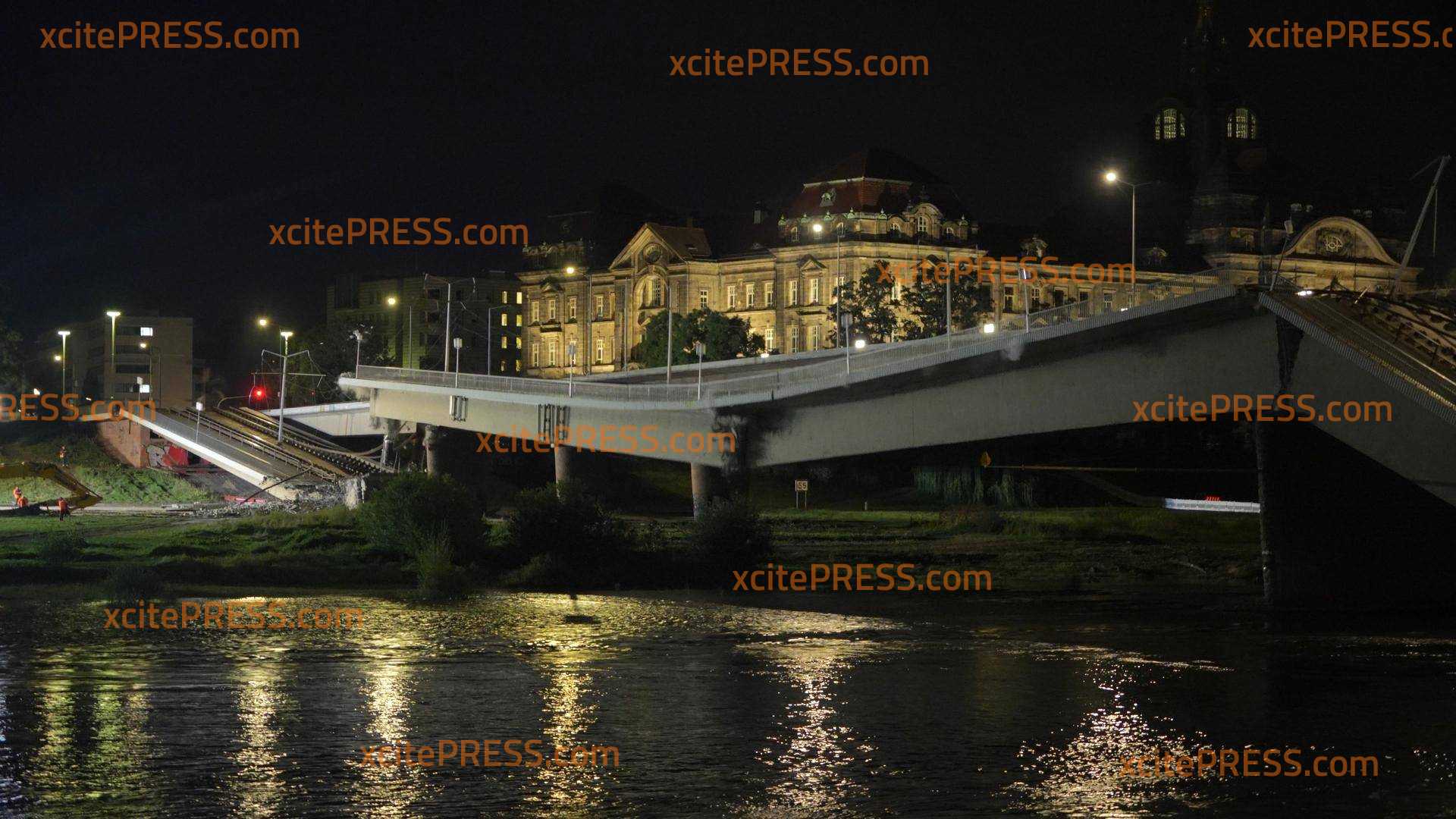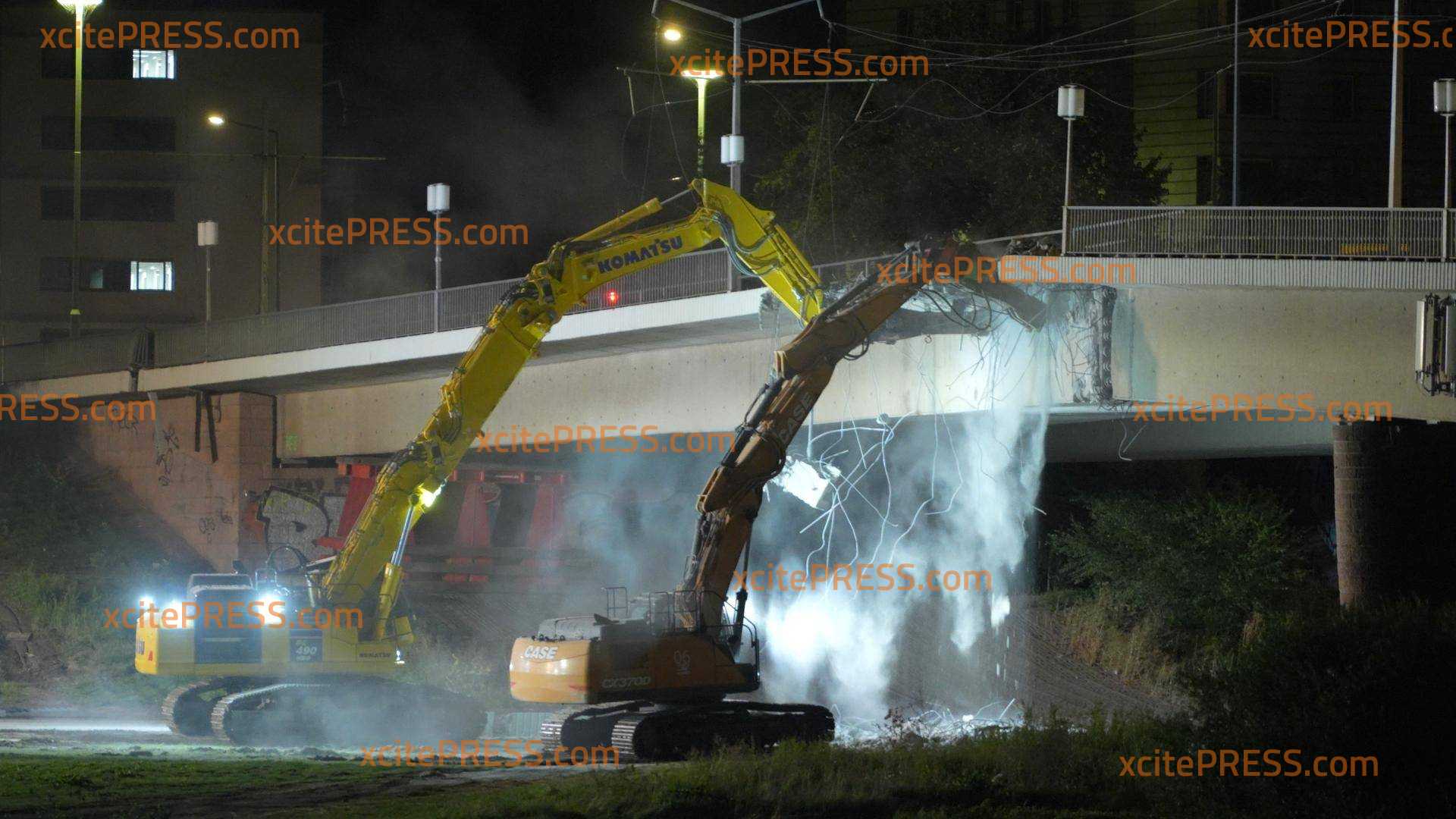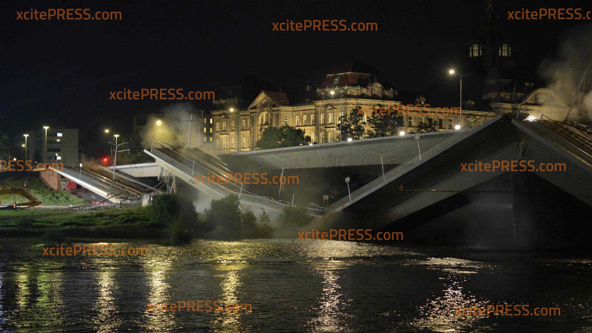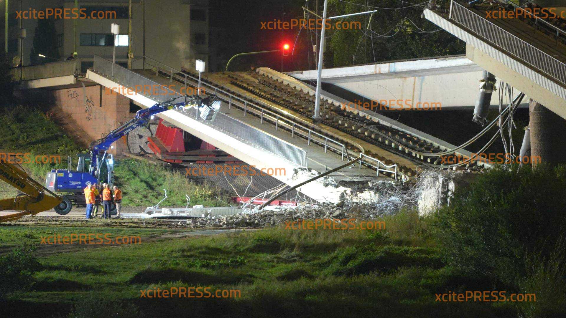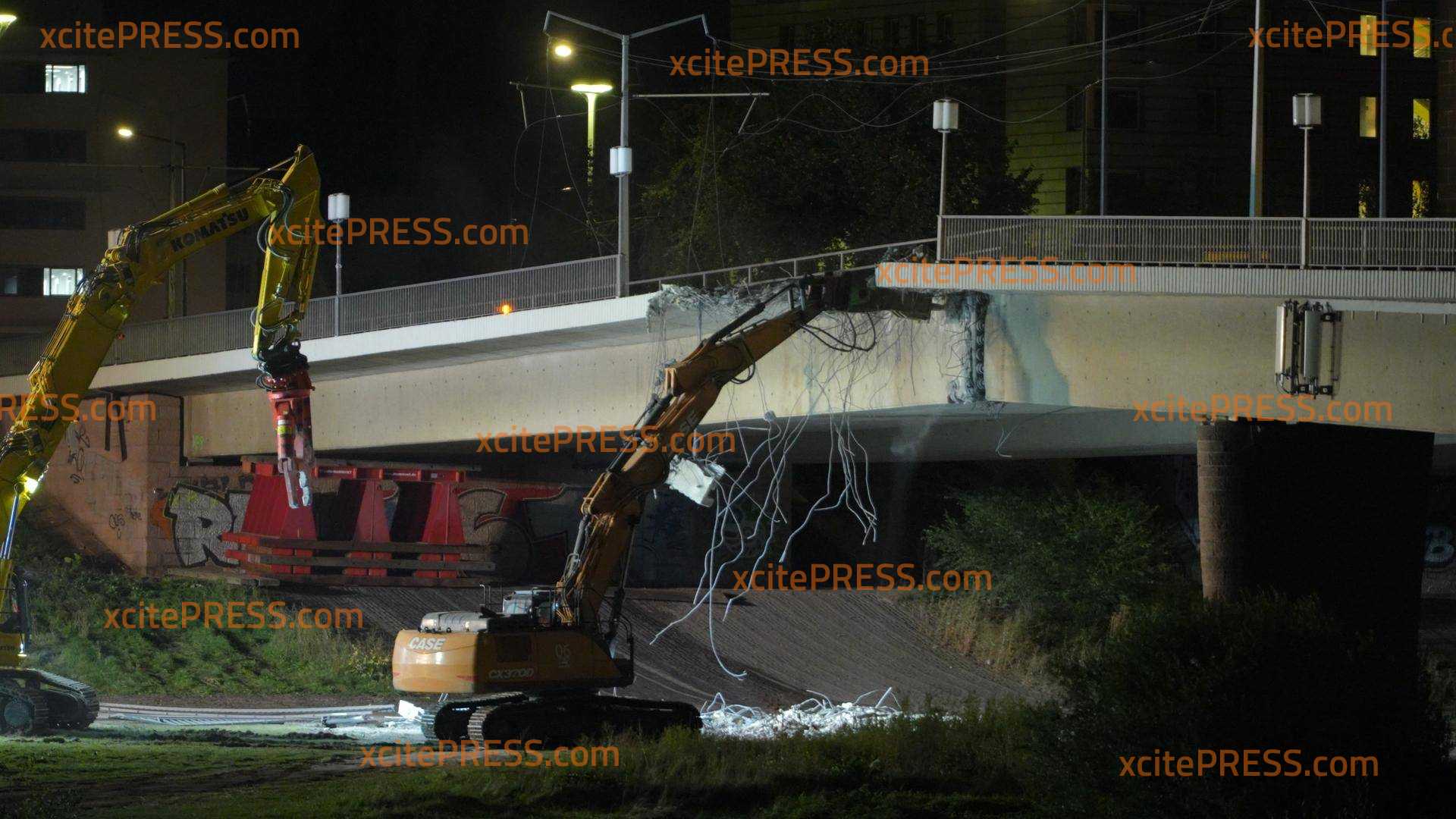 Fast auf die Minute, zwei Tage nach dem Teileinsturz der Dresdner Carolabrücke, stürzte nun der Großteil der Fußgänger, Radfahrer und Straßenbahnbrücke ein. Nun stehen nur noch die beiden Autostreifen. Nachdem am gestrigen Abend zwei Sprengungen mit enormer Wucht nötig waren, um die Versorgungsleitungen zu trennen, machten sich Abrissexperten an die Arbeit. Über Stunden versuchten mehrere Bagger die Brücke auf der Neustädter Seite zu durchtrennen.