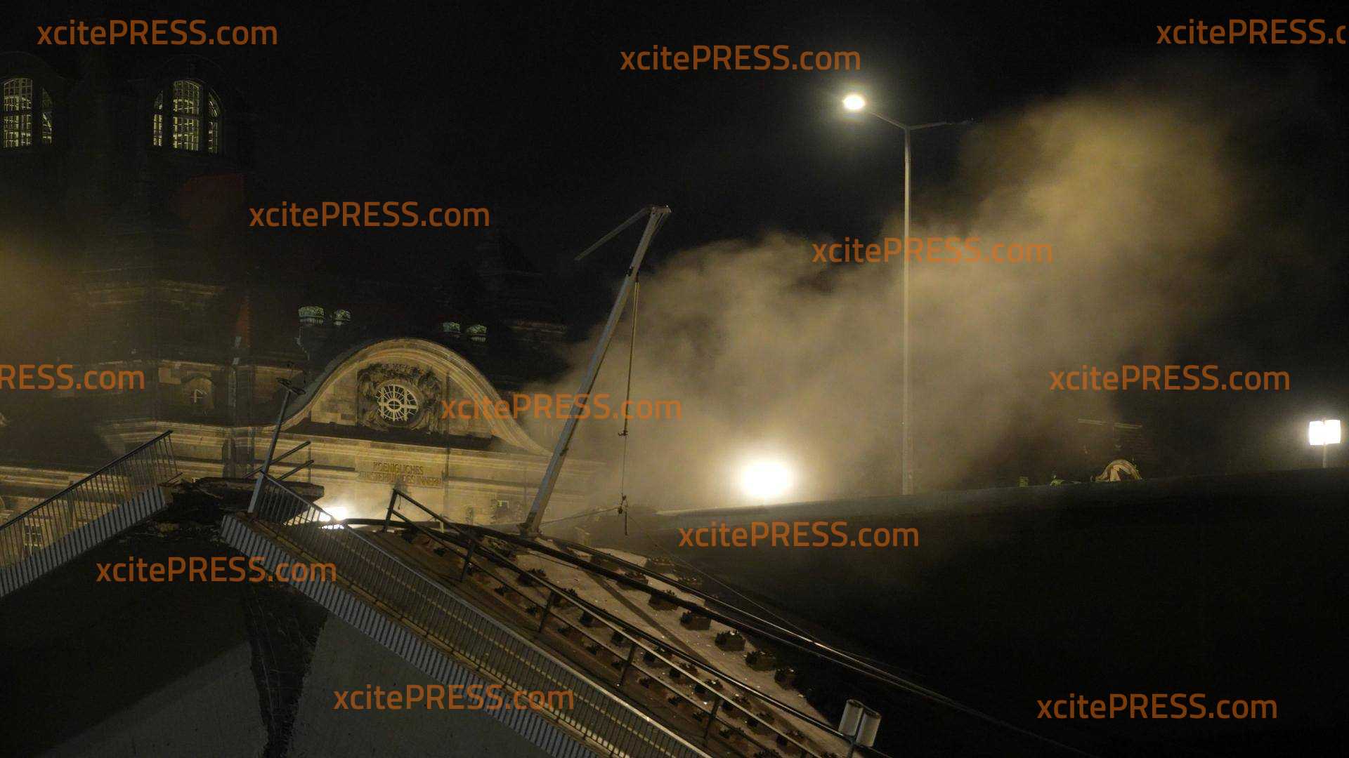 Carolabrücke stürzt mit großem Knall ein (VIDEO EXKLUSIV) - Funken fliegen, Kabel reißen - genau 48h nach dem ersten Einsturz; zwei Sprengungen und lange, schwierige Abrissarbeiten bis in den frühen Morgen
