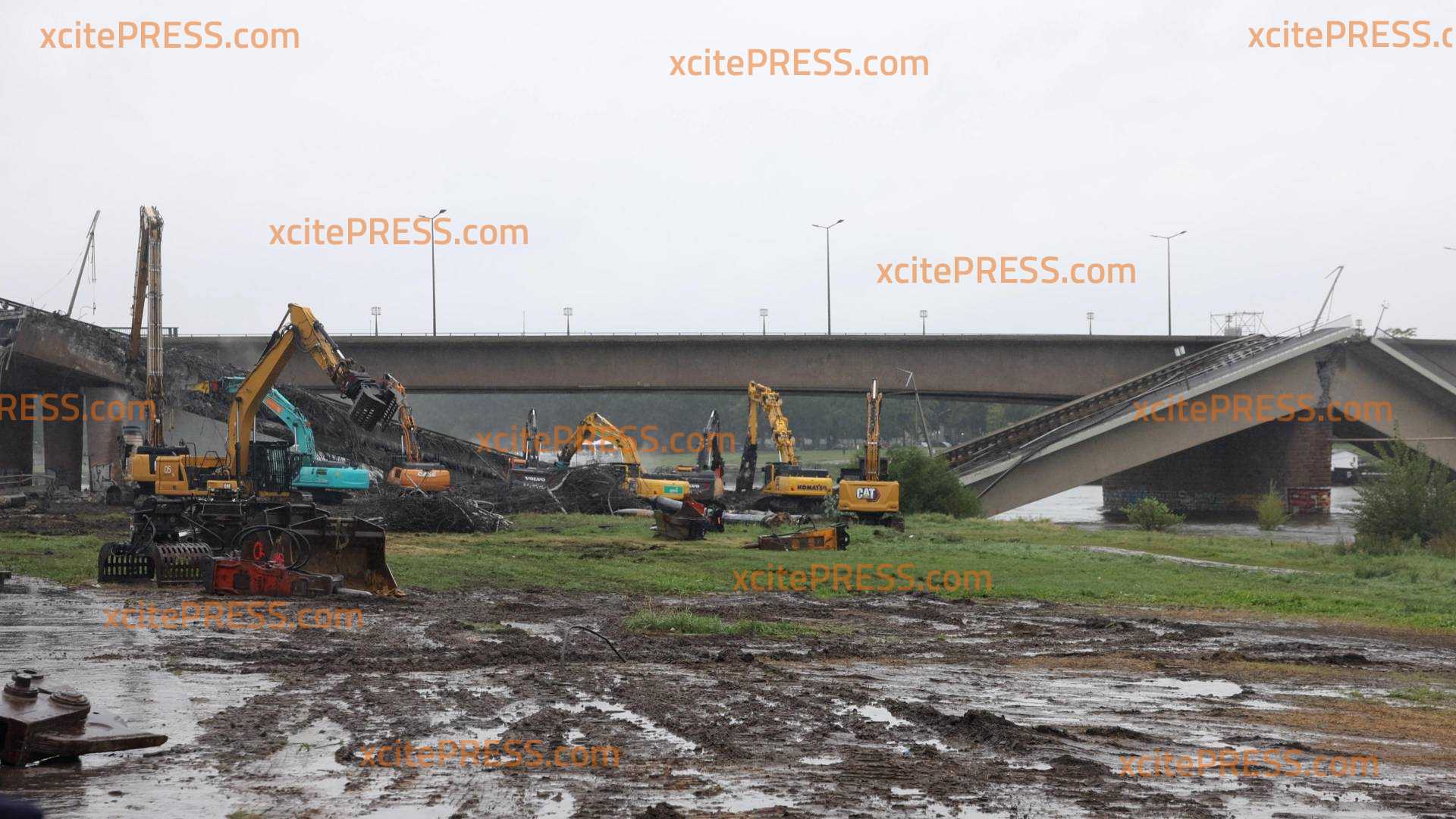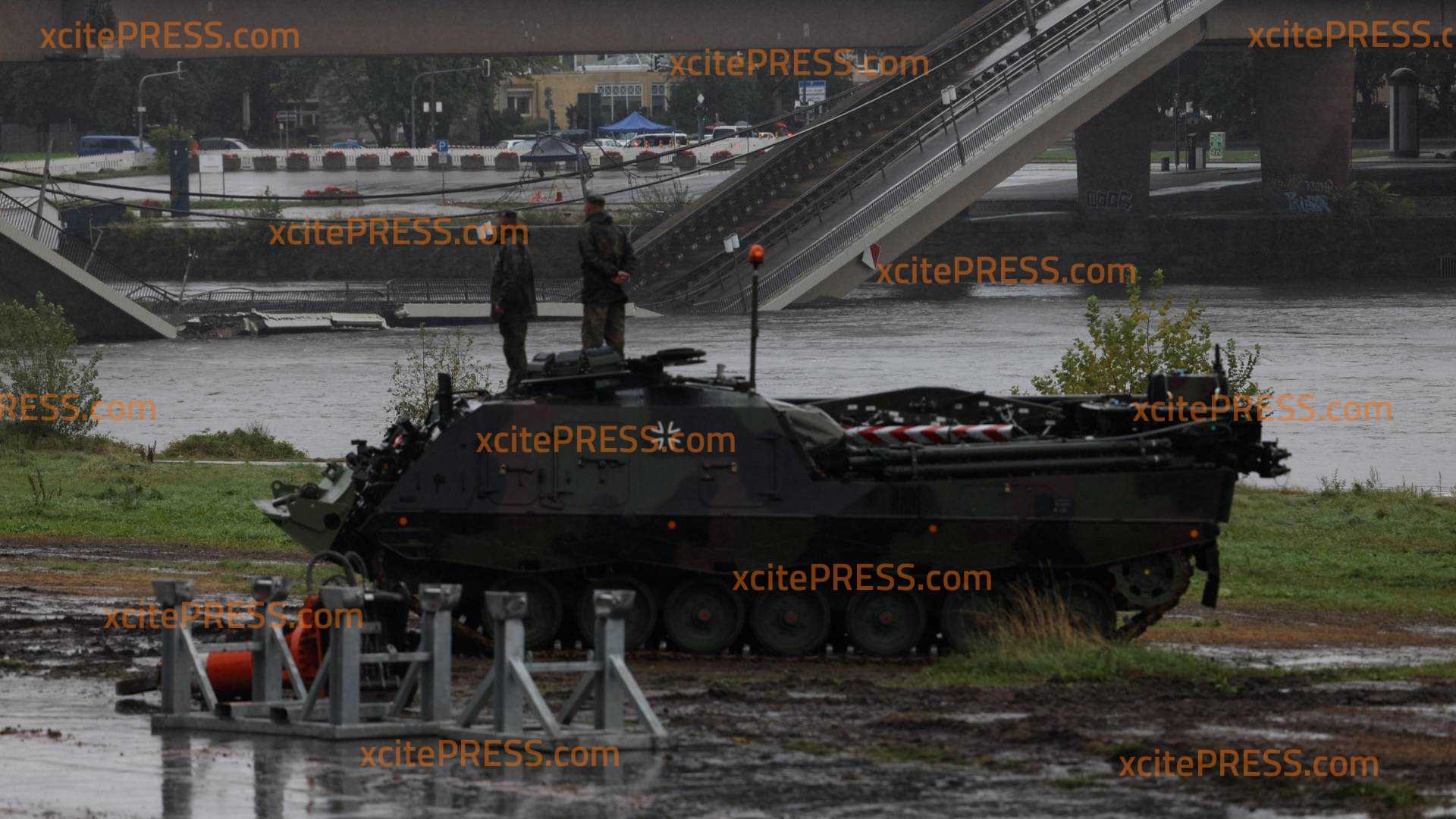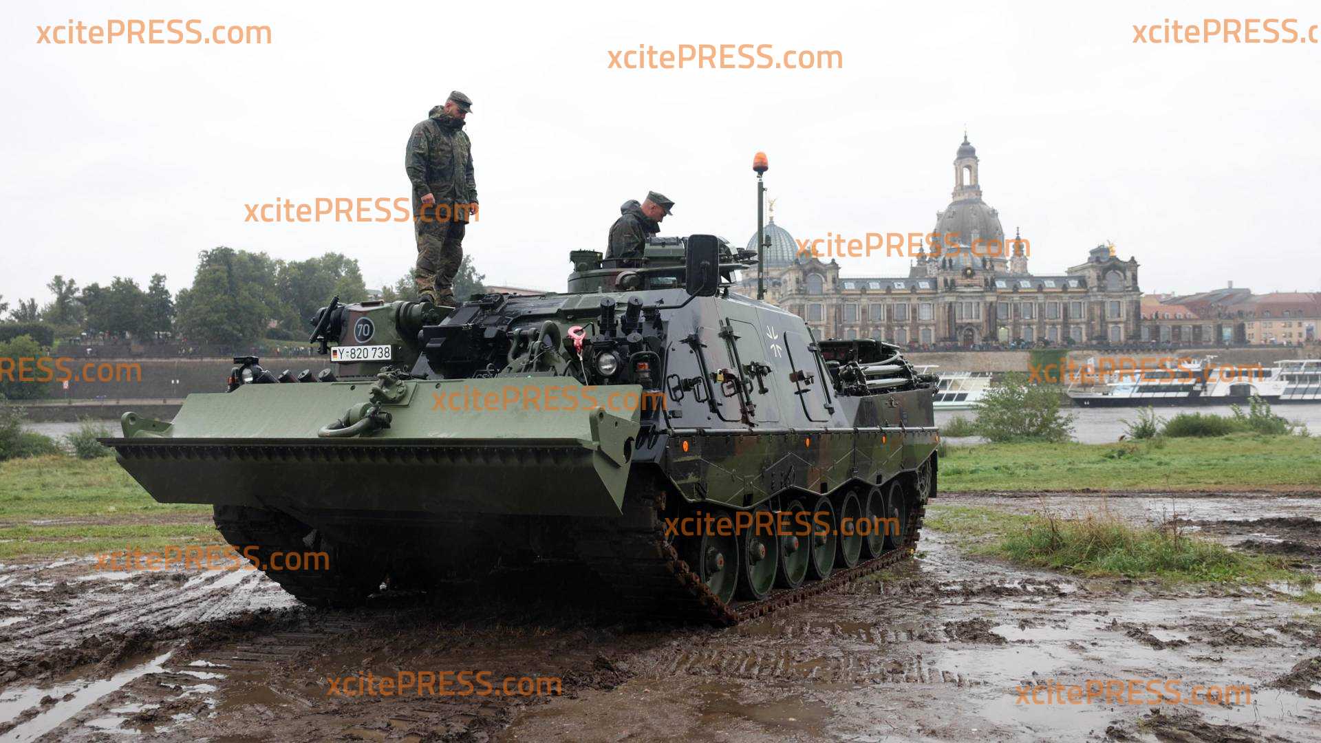 Um Punkt 17:15 Uhr rollte der vorerst erste Panzer der Bundeswehr an der Elbe vor. Das sorgte für viele staunende Blicke. Die Soldaten unterstützen jetzt die Abriss-Experten an der Carolabrücke. Insbesondere wenn die Bagger feststecken oder sich festgefahren haben sollten, können die Panzer von großer Hilfe sein. Mindestens ein weiterer Panzer soll sich auf dem Weg befinden. Auch über die Panzerbesatzung hinaus, helfen weitere Soldaten vor Ort aktuell mit. Die Abrissarbeiten stehen unter großem Zeitdruck. Hochwasser ab Sonntag könnte die Brücke mitreißen, sollten noch große Teile auf den Elbwiesen liegen.