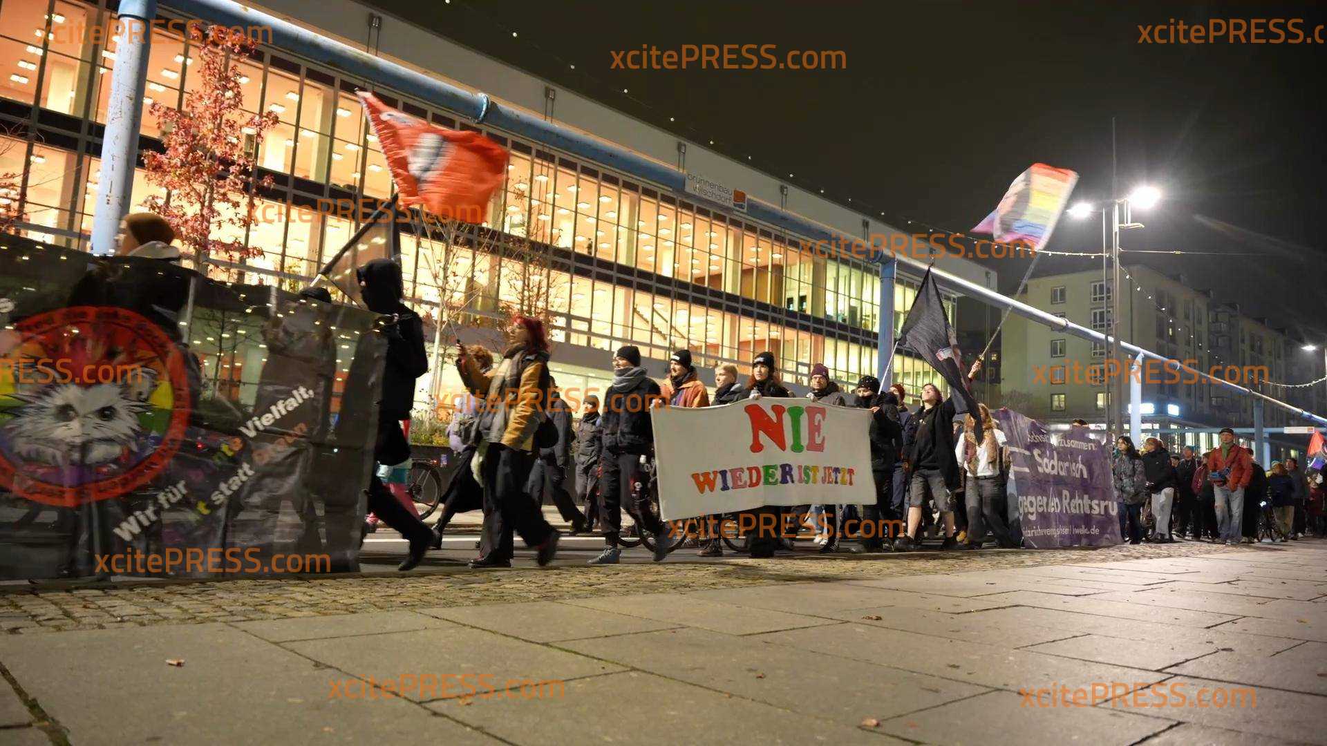 US-Wahl, AfD-Gesrpäche und Rechtsterrorbande: Demonstranten ziehen durch die Innenstadt zur Staatskanzlei - sie haben Sorge vor einer AfD-Regierung