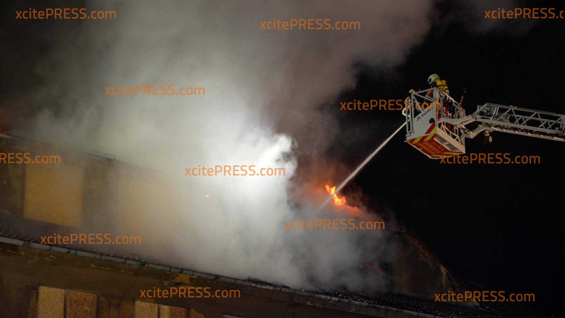 Die Löscharbeiten gestalteten sich aufwendig, da sich das Feuer schnell im Dachstuhlbereich ausbreitete. Zeitweise schlugen Flammen aus Fenster und auch aus dem Dach selbst. Verletzt wurde glücklicherweise niemand, da sich in dem Gebäude keine Personen aufhielten. Es waren aber etliche Feuerwehrleute am und auch im Gebäude im Einsatz. Rettungskräfte sind vor Ort, falls es bei den gefährlichen Löscharbeiten zu Zwischenfällen kommt.