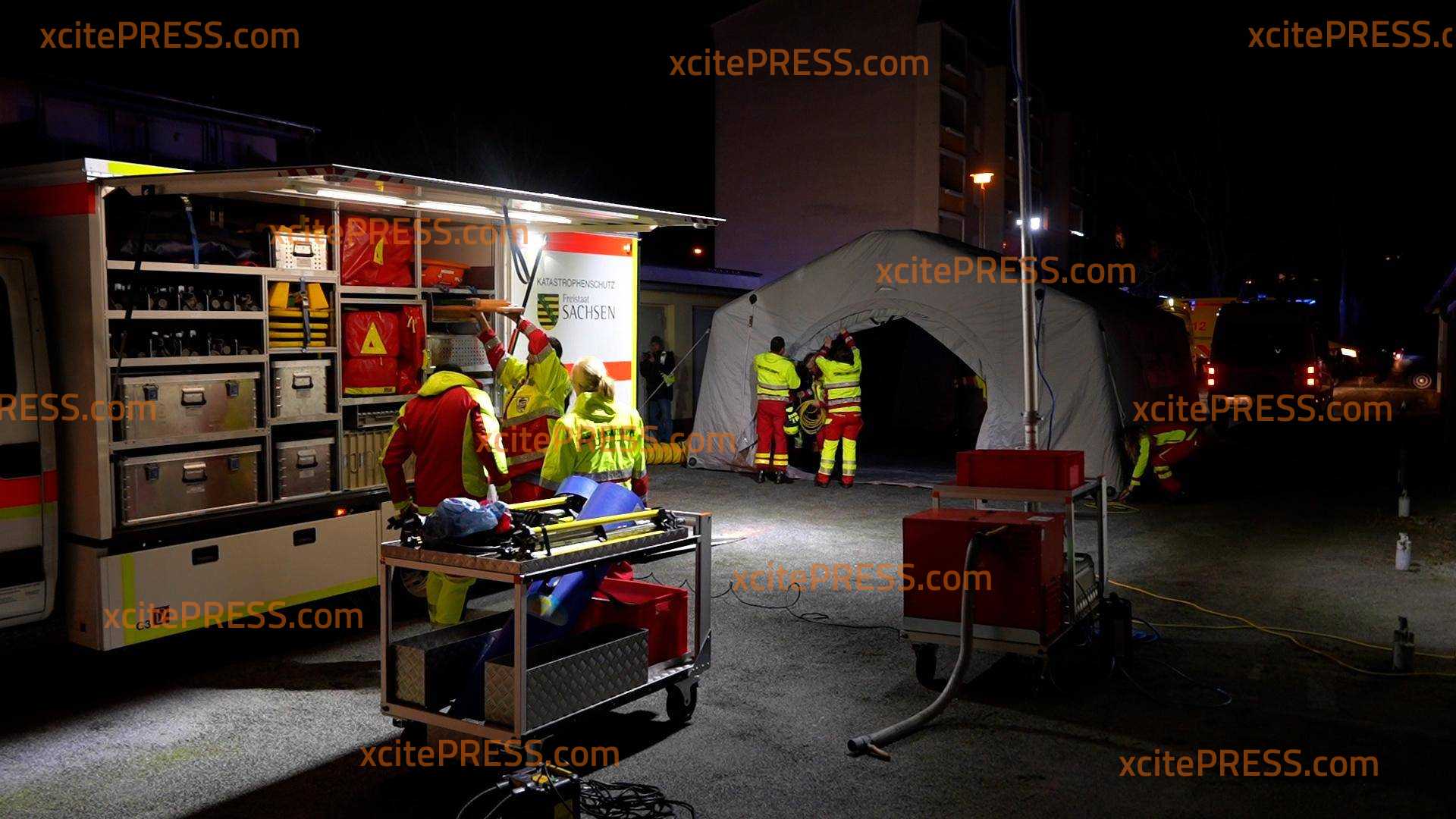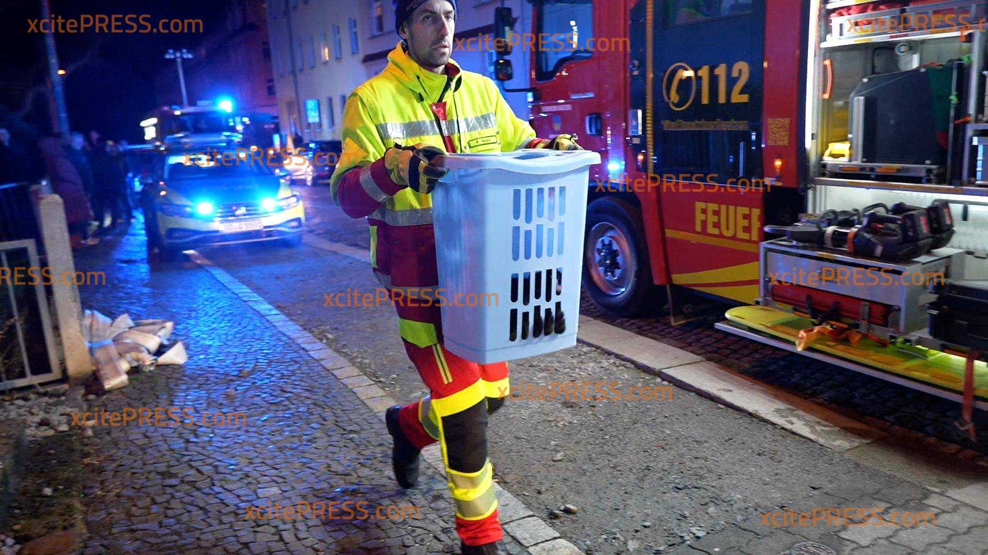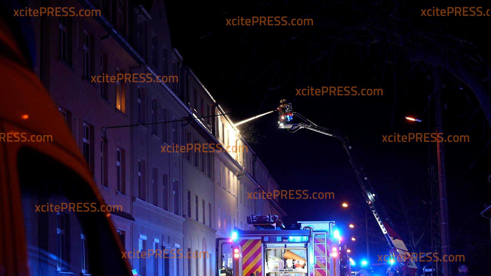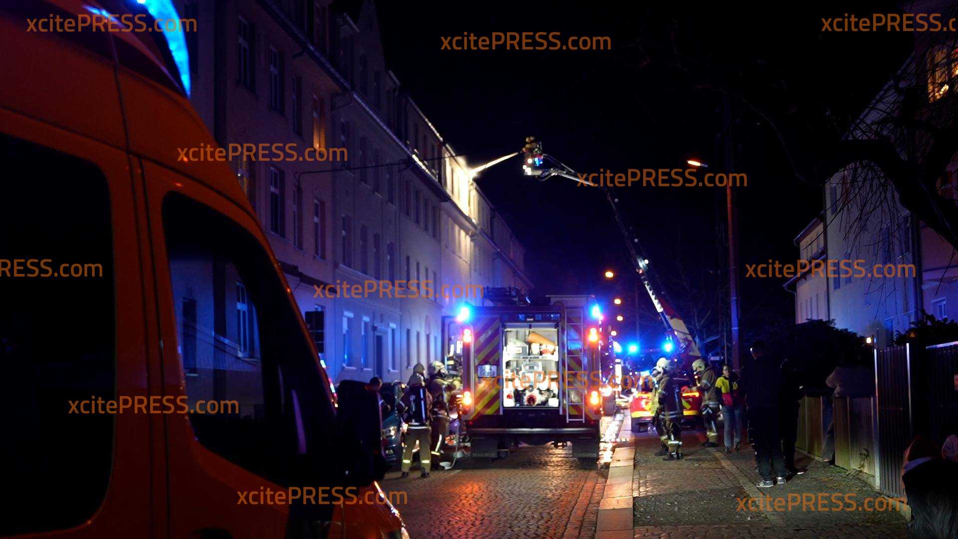 Ein Dachstuhlbrand hat in der Nacht zu Dienstag ein Wohnhaus auf der Bautzener Kantstraße zerstört. Das Feuer war gegen 21:45 Uhr ausgebrochen und hatte sich durch den starken Wind rasend schnell auf das gesamte Dach des Mehrfamilienhauses ausgebreitet. Als die Feuerwehr eintraf brannte das Dach des Hauses lichterloh. Sofort begann man damit, die Bewohner zu evakuieren und Löschmaßnahmen einzuleiten. Außerdem wurde das Alarmstichwort erhöht, sodass weitere Feuerwehren hinzugezogen wurden. Unter dem Stichwort "Großbrand" waren über 80 Einsatzkräfte von Feuerwehr, Rettungsdienst und Polizei im Einsatz, um den Brand zu löschen und angrenzende Häuser zu schützen. Dank des schnellen Einsatzes der Feuerwehrleute konnten die beiden angrenzenden Häuser gehalten werden, das Feuer griff nicht über. Jedoch ist das Haus, in welchem der Brand ausbrach, vorerst unbewohnbar. Die Bewohner wurden vorrübergehend in einem Zelt der Schnelleinsatzgruppe des ASB Bautzen untergebracht, während man mit Hotels Ersatzunterkünfte abklärte. In der Zwischenzeit hatten Feuerwehrleute zudem mehrere Katzen aus der Brandwohnung gerettet. Sie wurden in einem Wäschekorb ins Freie gebracht und anschließend den überglücklichen Eigentümern übergeben. Warum der Brand ausbrach, ist noch nicht bekannt. Die Polizei ermittelt.