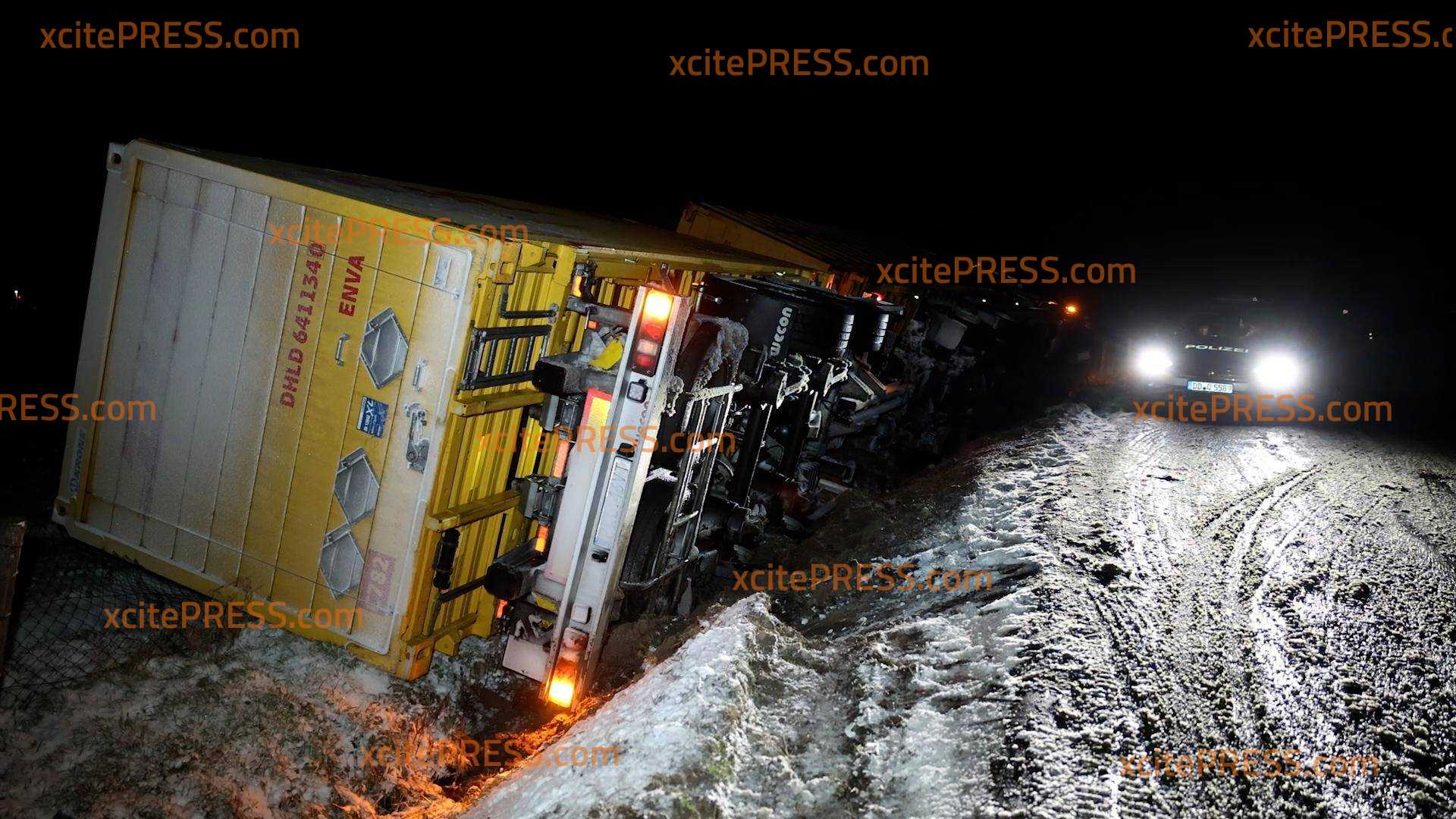 LKW schliddert im Graben