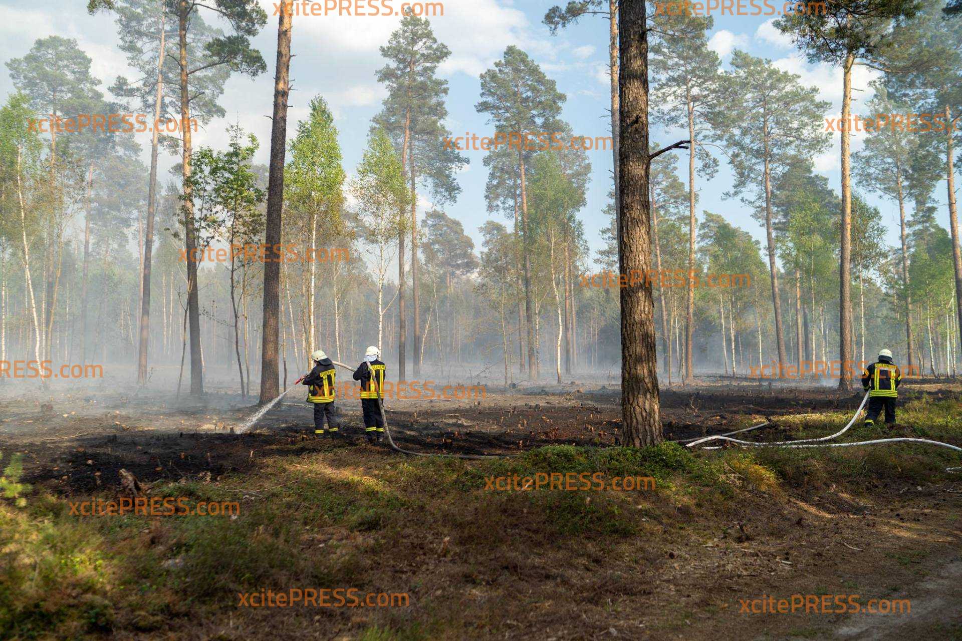 Noch auf dem Weg zum Einsatzort wurden zusätzliche Kräfte aus Brandenburg und Sachsen nachalarmiert. Beim Eintreffen der Einsatzkräfte bestätigte sich der Verdacht: Mehrere Hektar Wildpflanzen und Waldboden standen bereits in Flammen. Der Brand breitete sich aufgrund der trockenen Vegetation rasch aus.