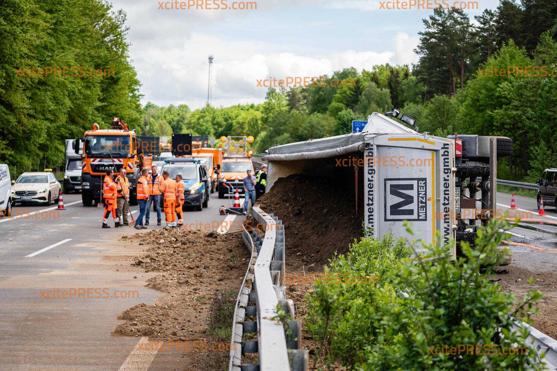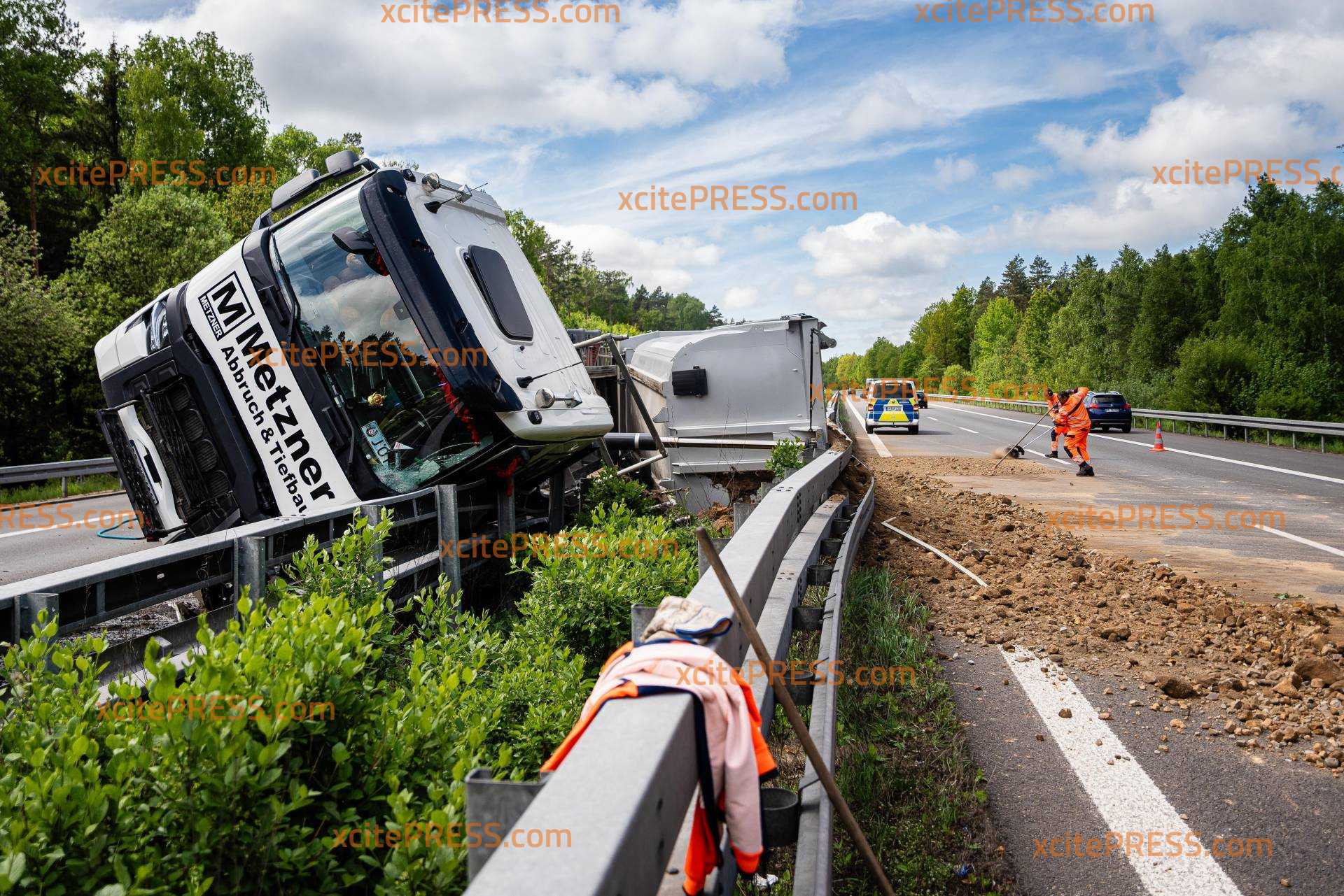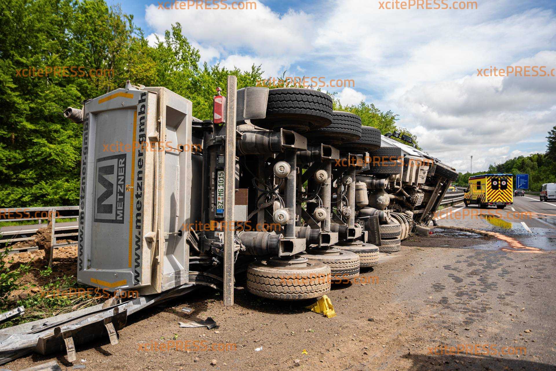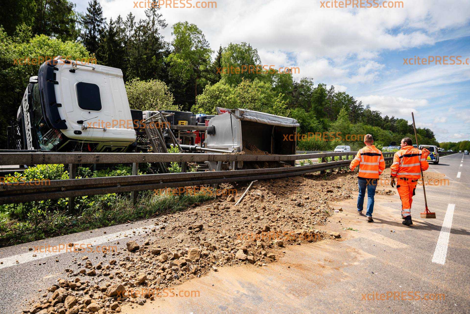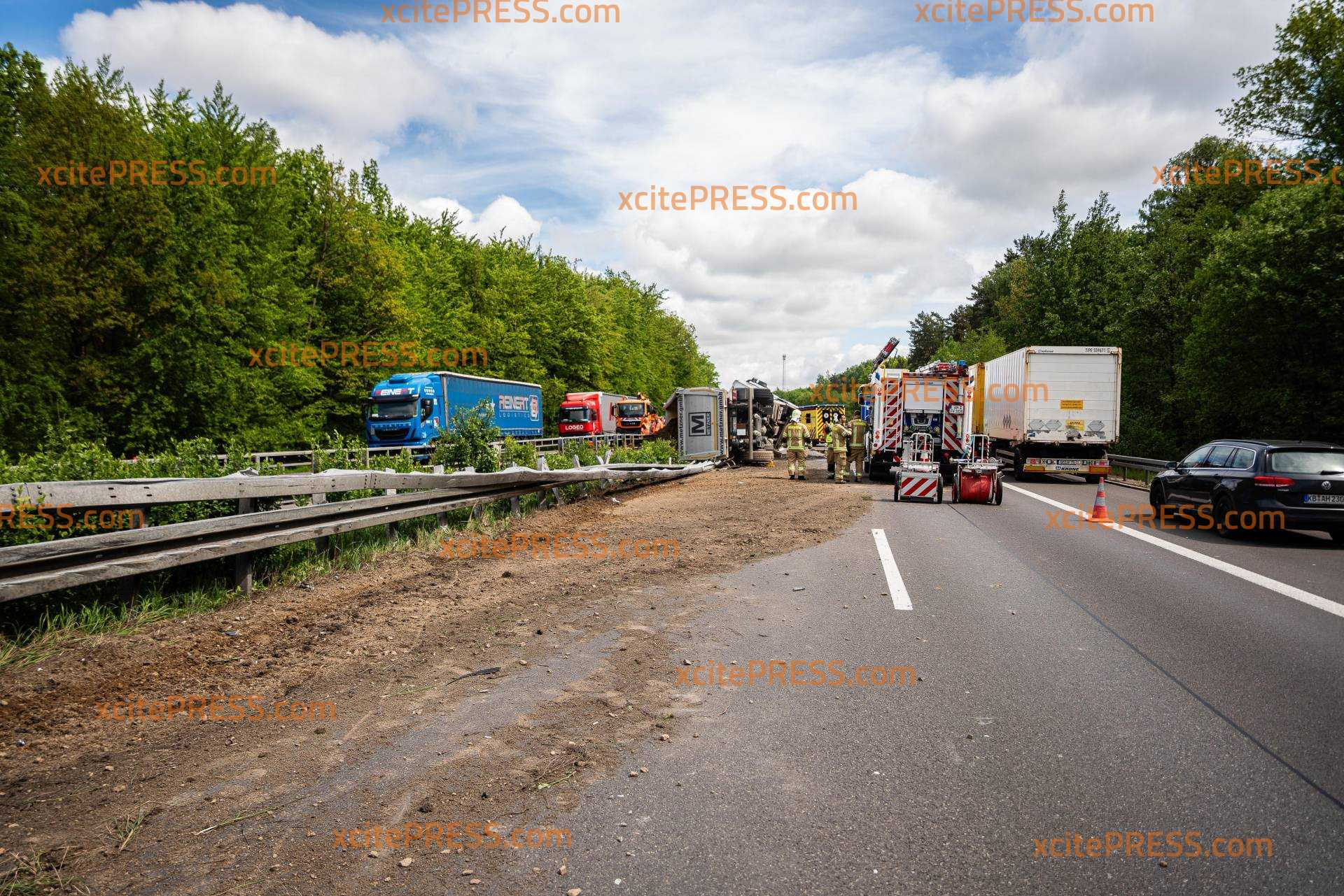 LKW kippt auf A4 auf Mittelschutzplanke - beide Richtungen betroffen!