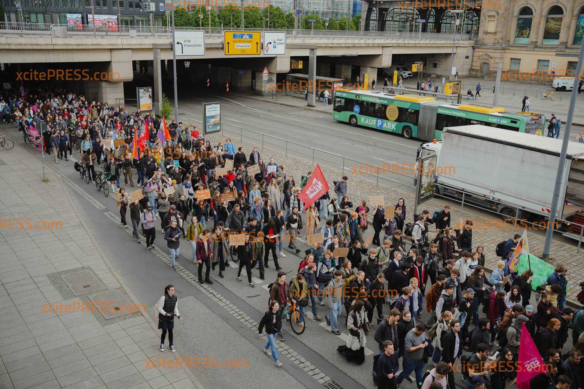 Die Demonstration startete um 12 Uhr am Fritz-Förster-Platz (Uni-Campus) und zieht über den Hauptbahnhof zum sächsischen Landtag.