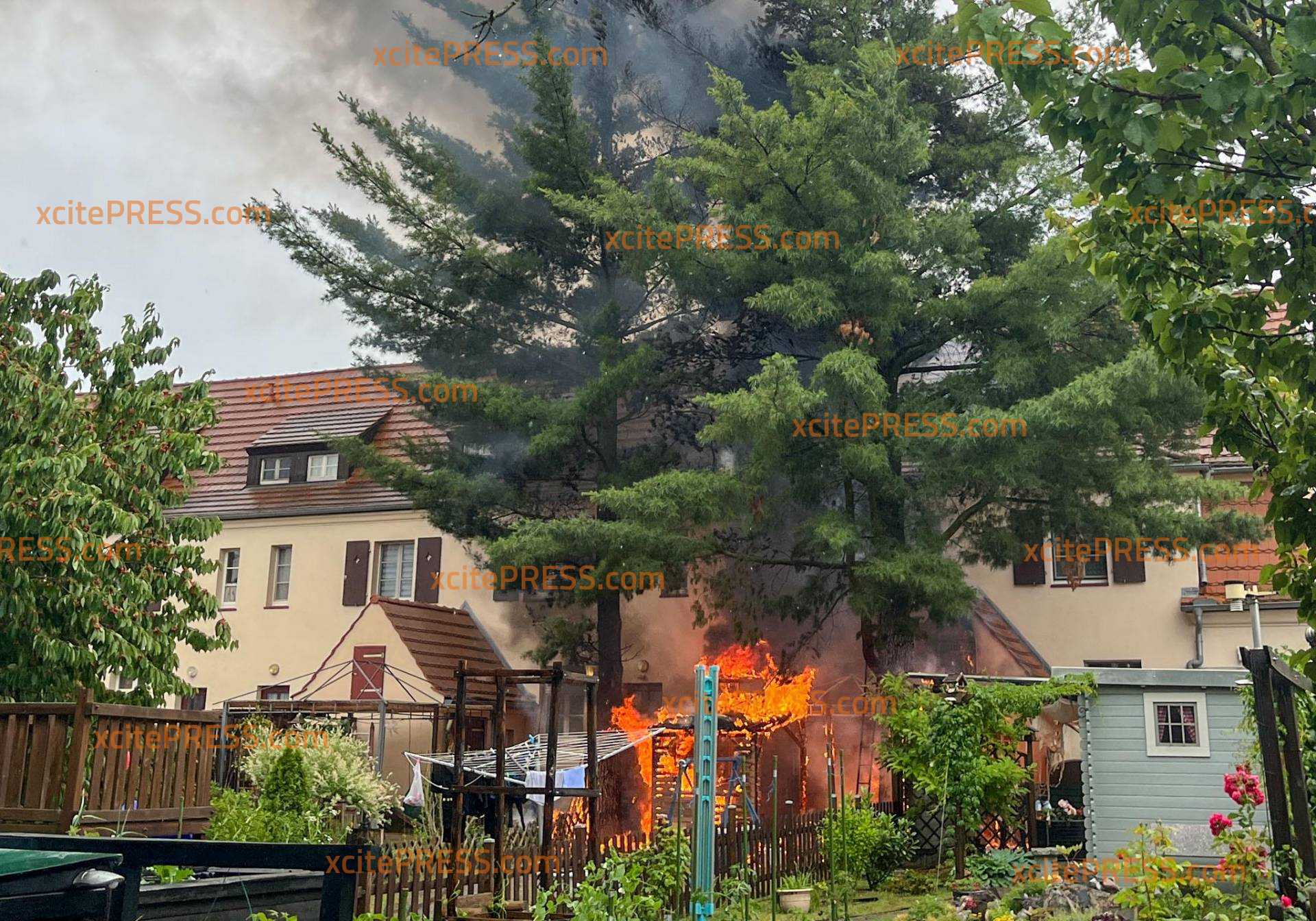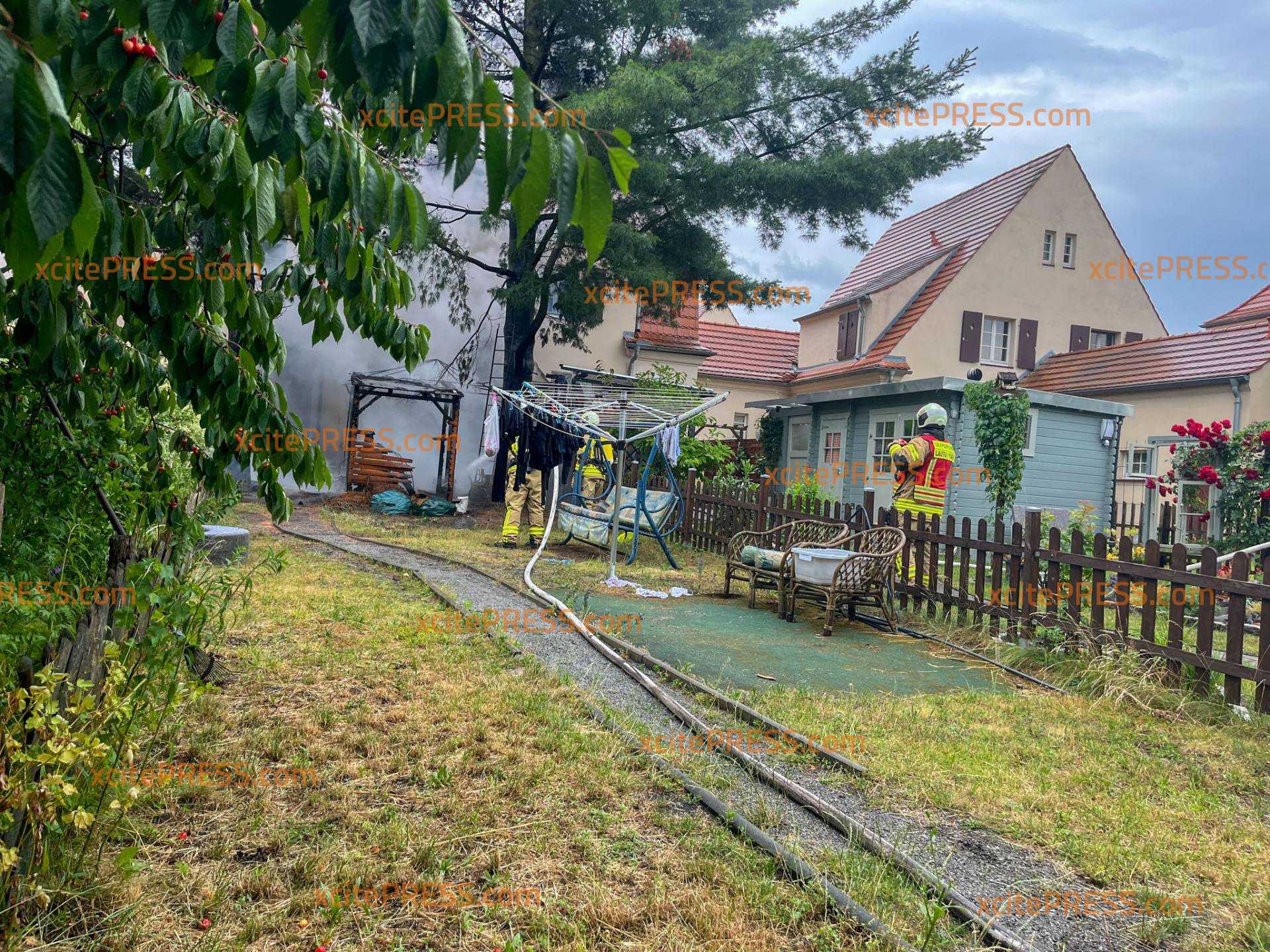 Nach Blitzeinschlag in Lauta – Gartenlaube und Schuppen in Flammen