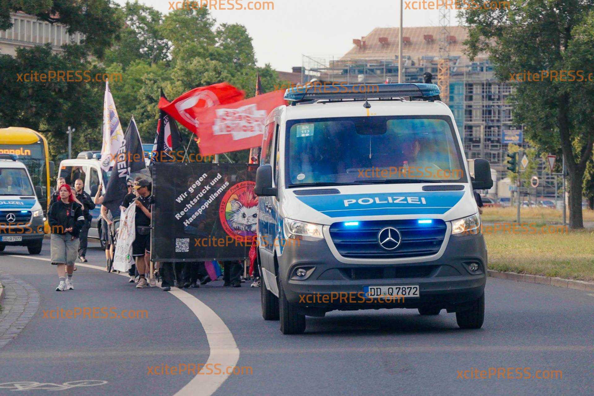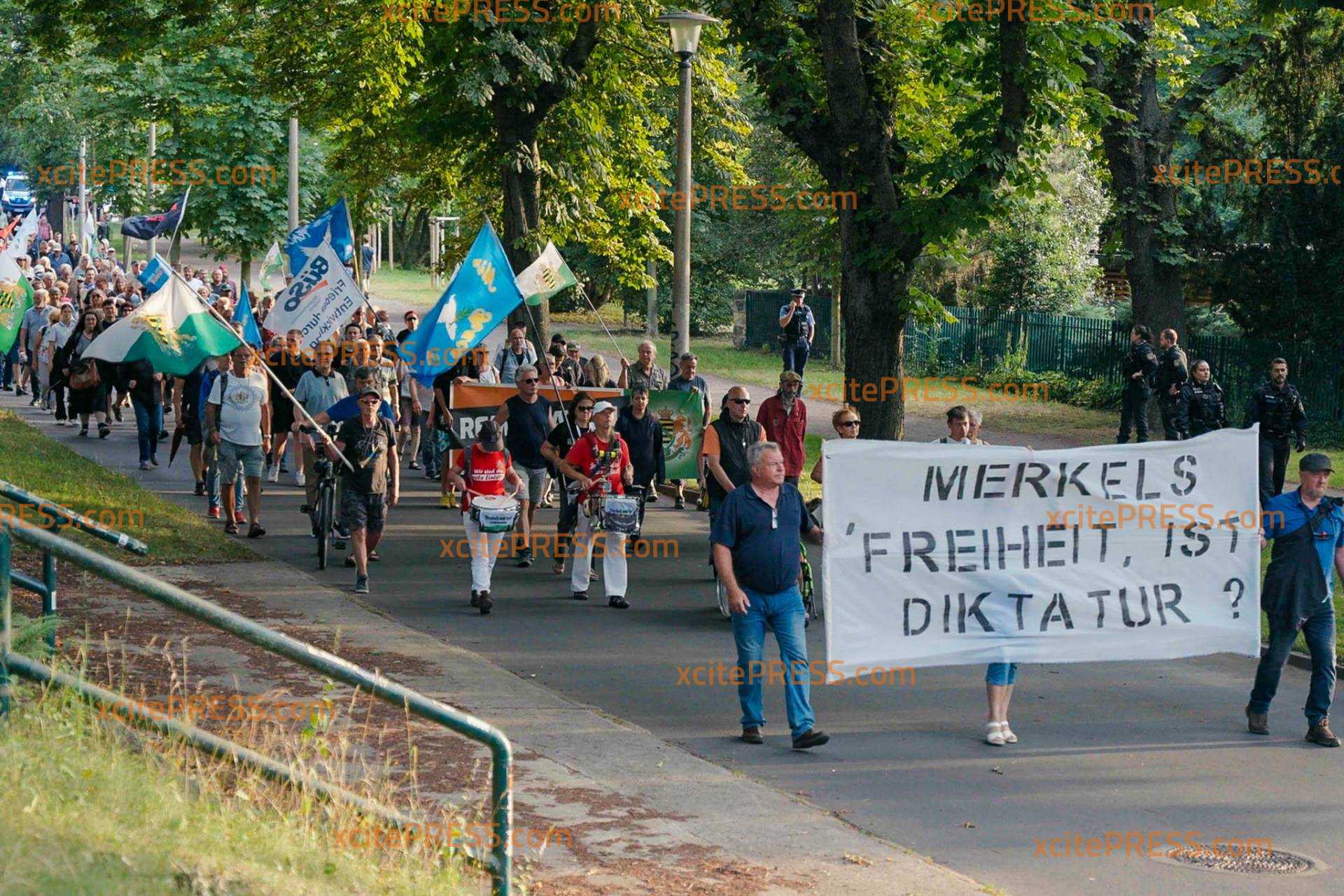 "Die hat alles in den Ruin getrieben!", in Dresden heißt es auch 2025 noch "Merkel muss weg": Antifa-Gegenprotest, Hitler-Tattoo und Polizeimaßnahmen