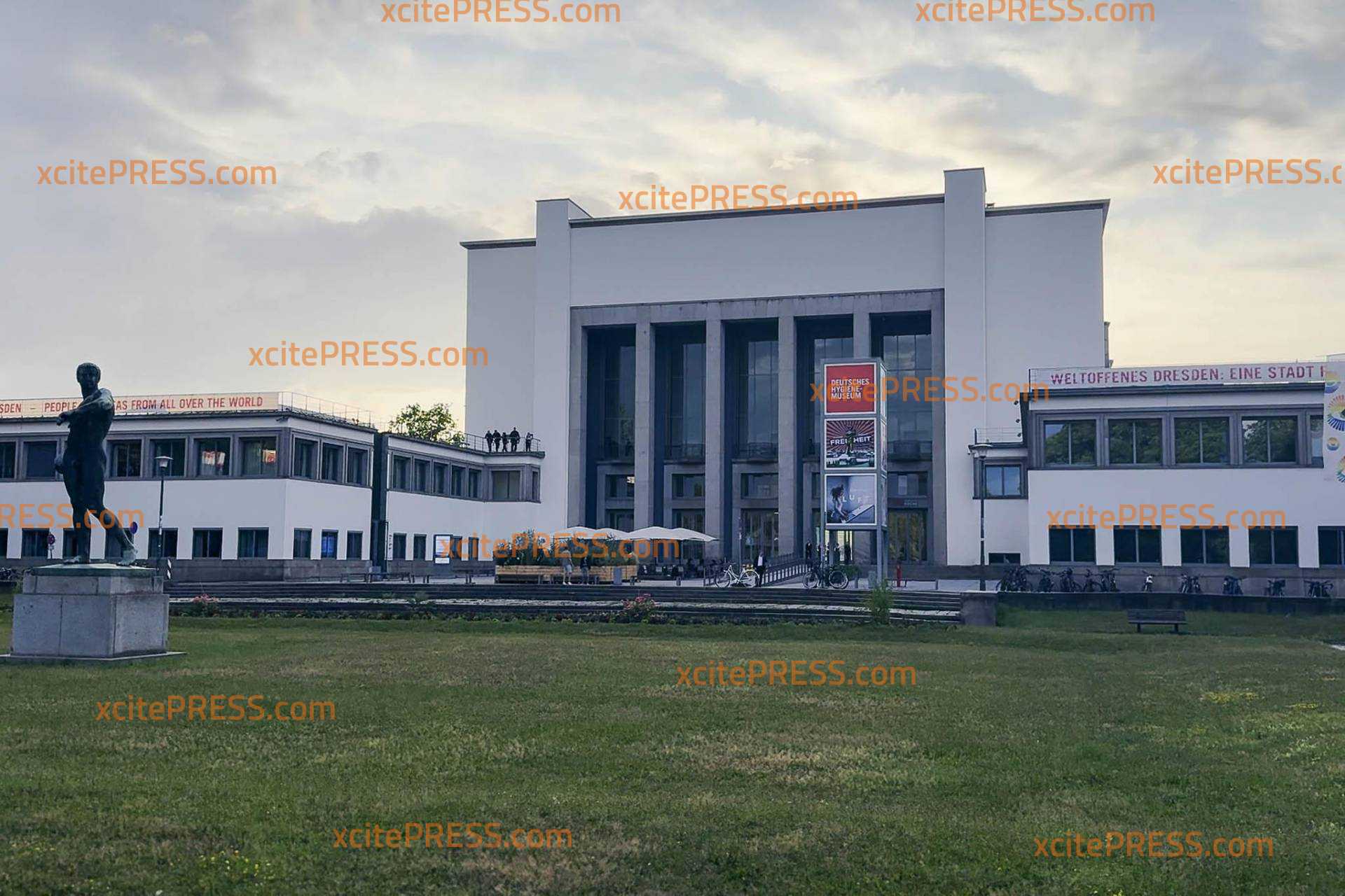 Vor dem Hygienemuseum (Ort der Lesung) empfangen zahlreiche Polizeikräfte den Protest. Auch der Ton wird rauer: "An ihren Händen klebt das Blut deutscher Opfer", brüllt ein Redner in Richtung Museum.