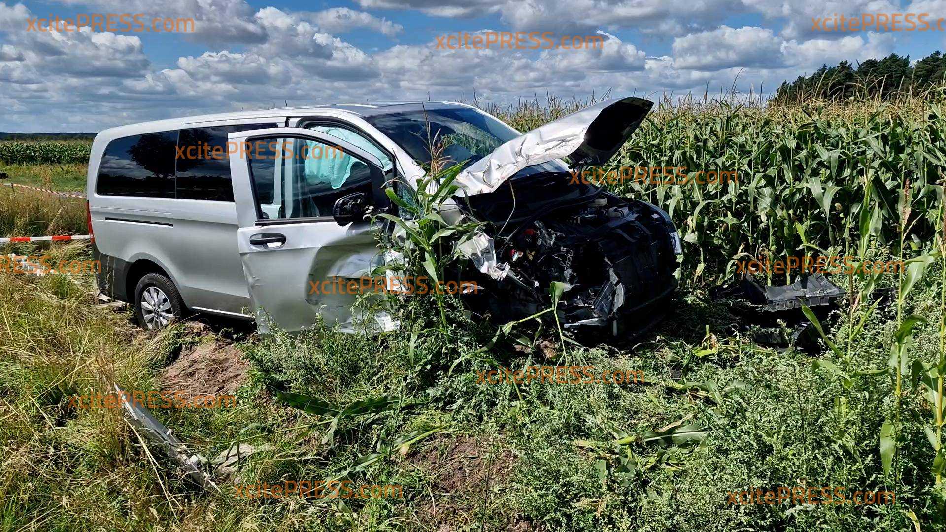 Der Mercedes Vito und der Fendt Traktor waren beide auf der Neusorger Straße von Hähnichen in Richtung Rothenburg unterwegs. Aus bislang ungeklärter Ursache stieß der Vito mit dem Traktor zusammen. Der Kleinbus geriet daraufhin nach links von der Fahrbahn ab, überfuhr einen Stromkasten und ein Verkehrsschild und touchierte einen Baum, bevor er in einem angrenzenden Maisfeld zum Stehen kam.
