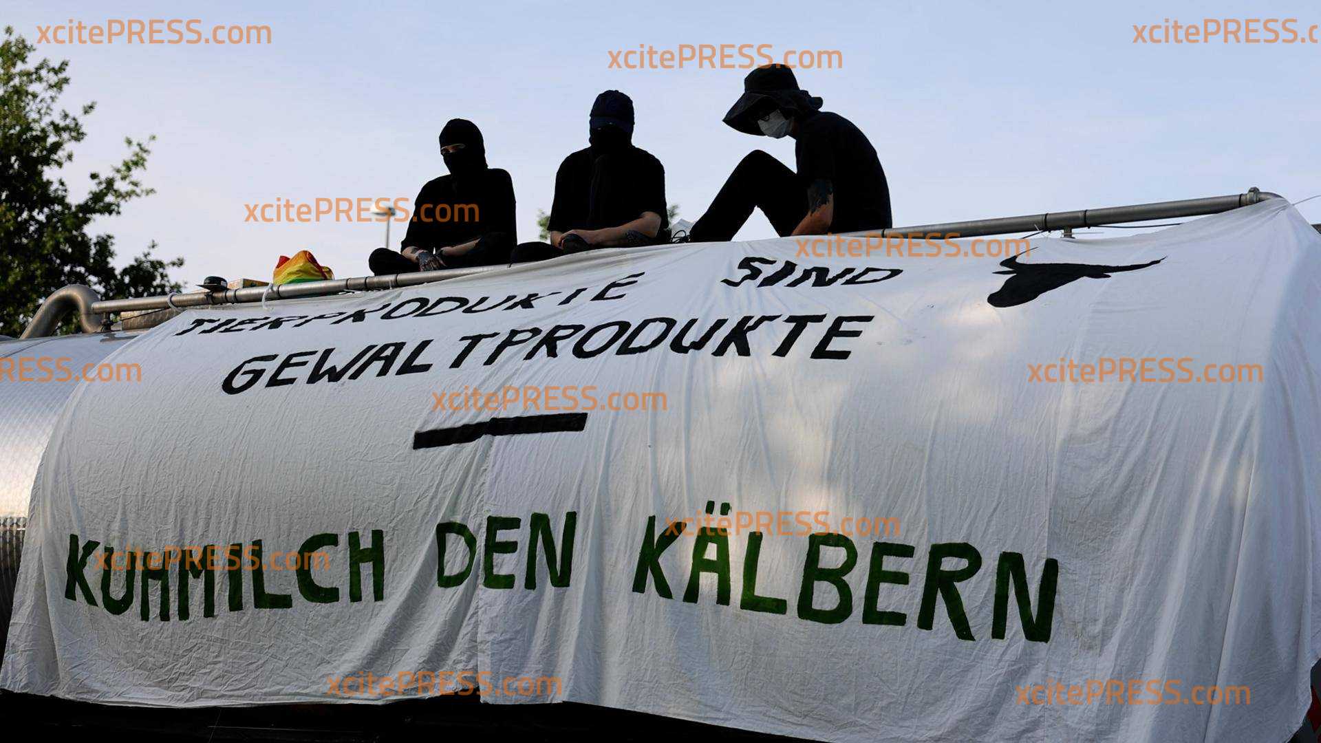 Aktivisten blockieren Zufahrt zu Müllermilch-Werk