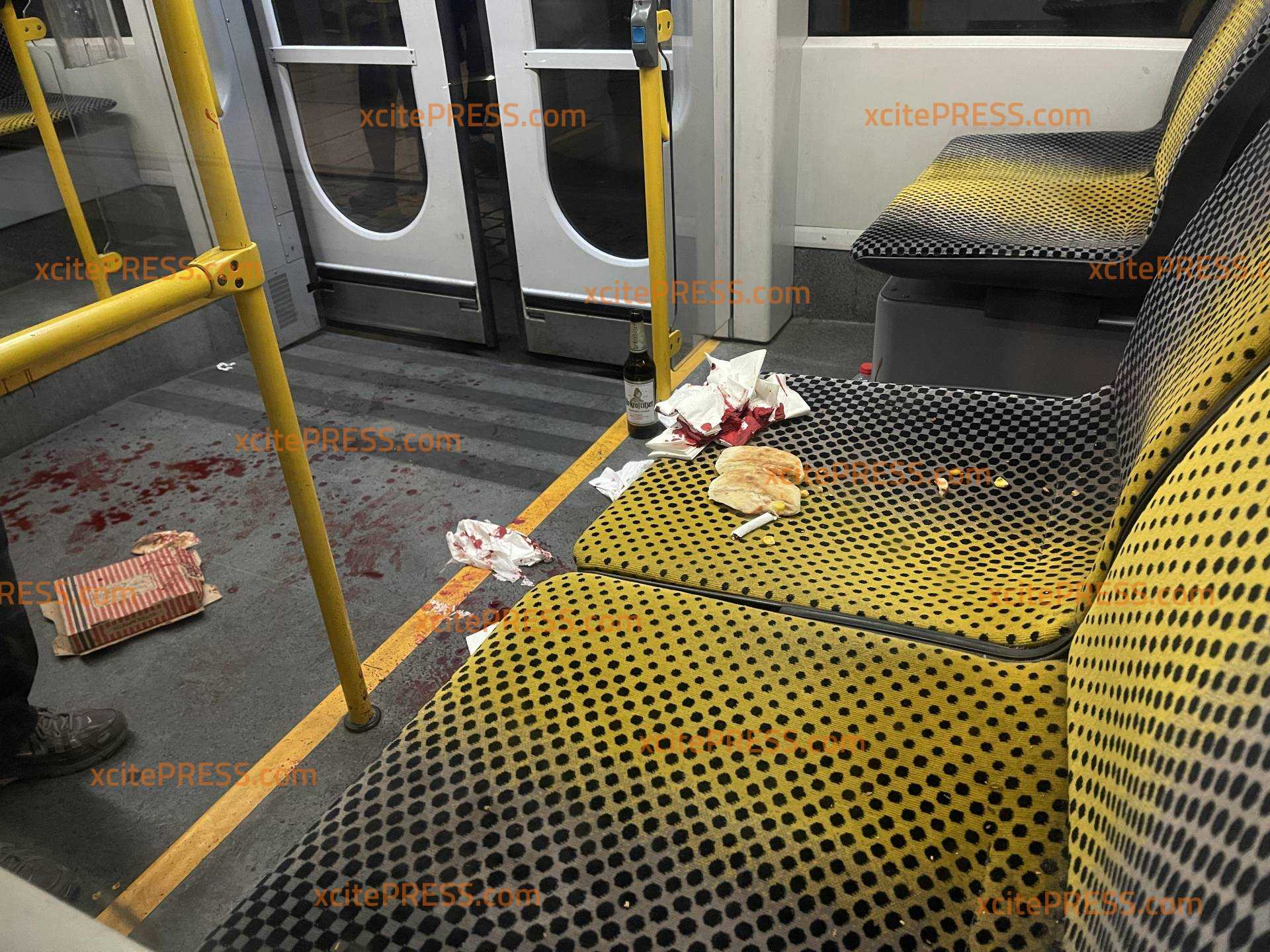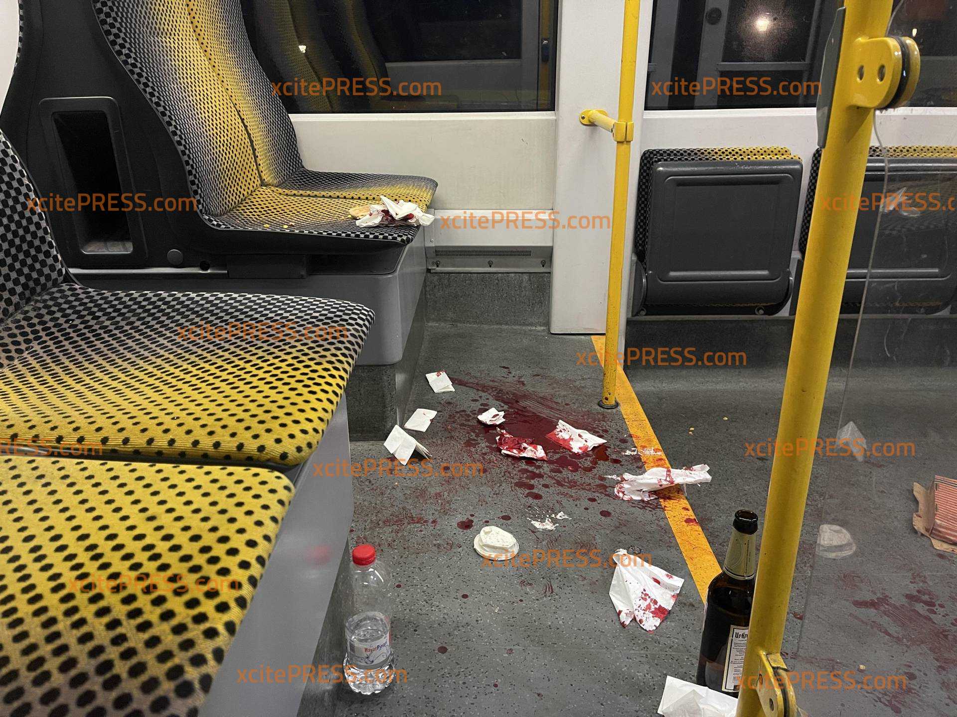 Fotos von der Tatnacht auf Anfrage (blutige Straßenbahn + Festnahme Täter)!