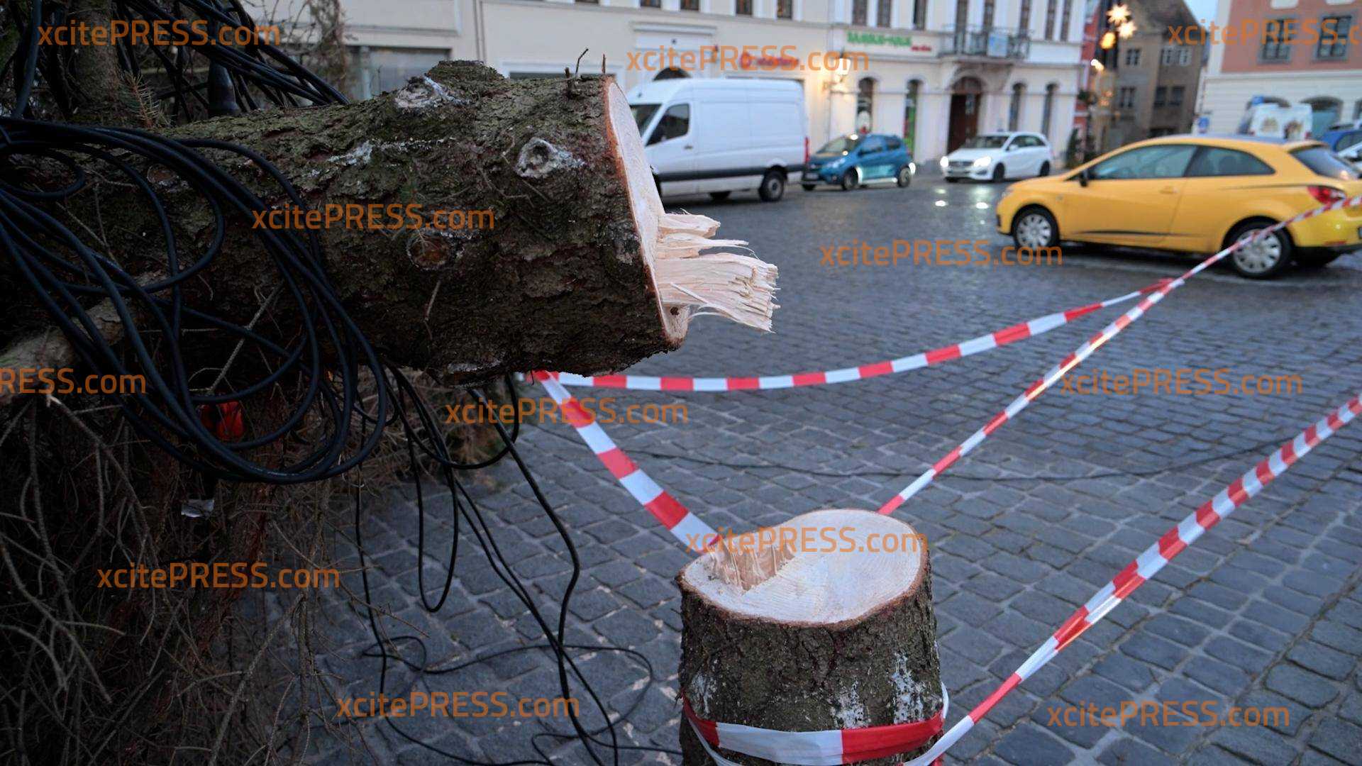 Über 10 Meter hoher Christbaum auf Altmarkt von Unbekannten nieder gesägt