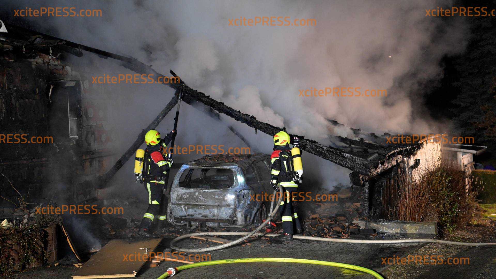 Der 77-jährige Hauseigentümer und seine 79-jährige Lebensgefährtin konnten das inzwischen in Vollbrand stehende Gebäude rechtzeitig und unverletzt verlassen. Trotz eines massiven Löschangriffs brannte das Wohnhaus vollständig aus. Neben dem Gebäude wurden auch der Carport sowie der Pkw zerstört. Der entstandene Gesamtsachschaden wird auf rund 230.000 Euro geschätzt.
