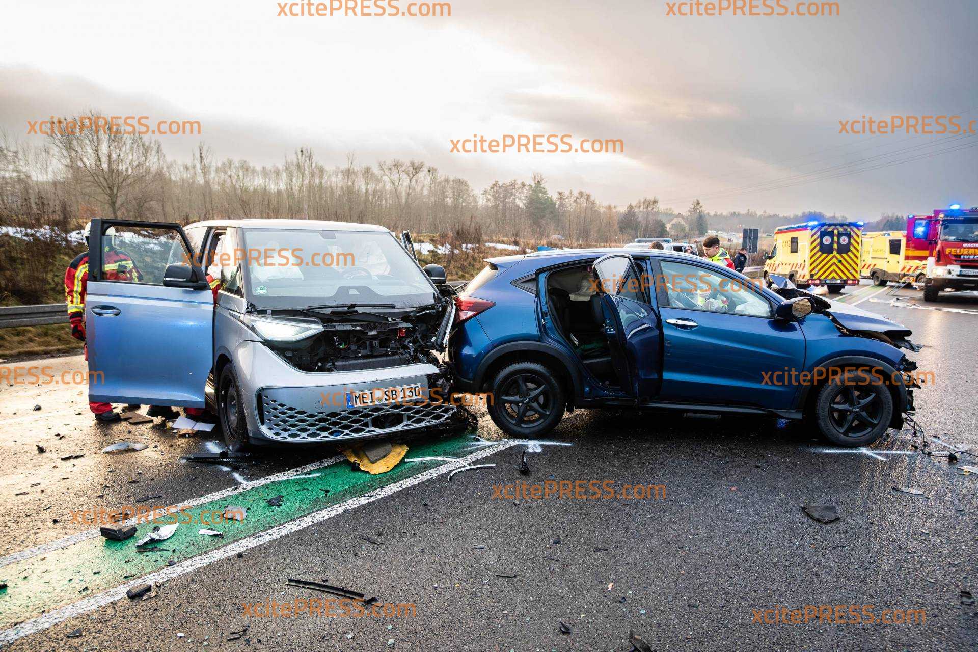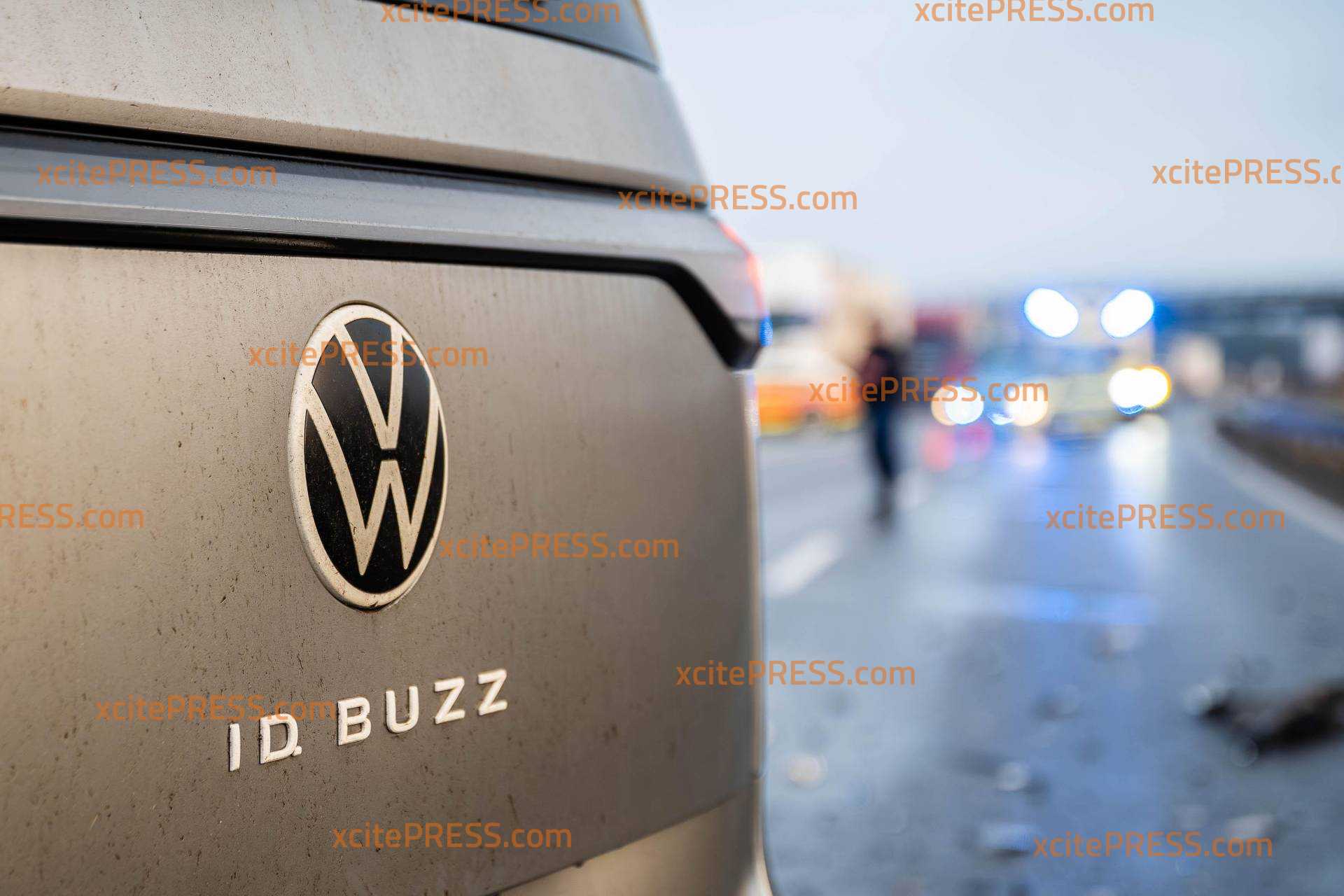 Elektro-Kleinbus stößt mit PKW zusammen, Feuerwehr muss Autofahrer befreien