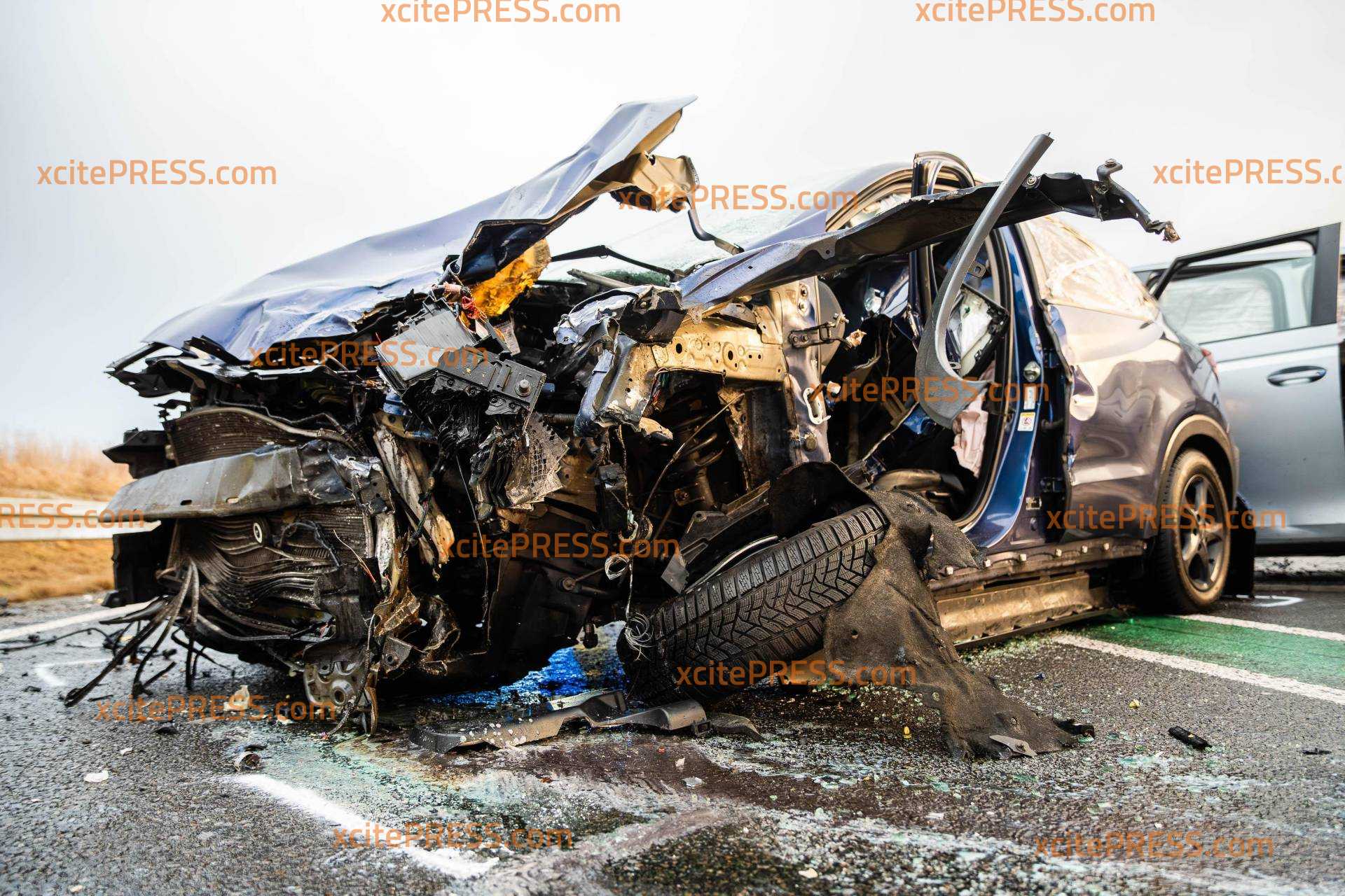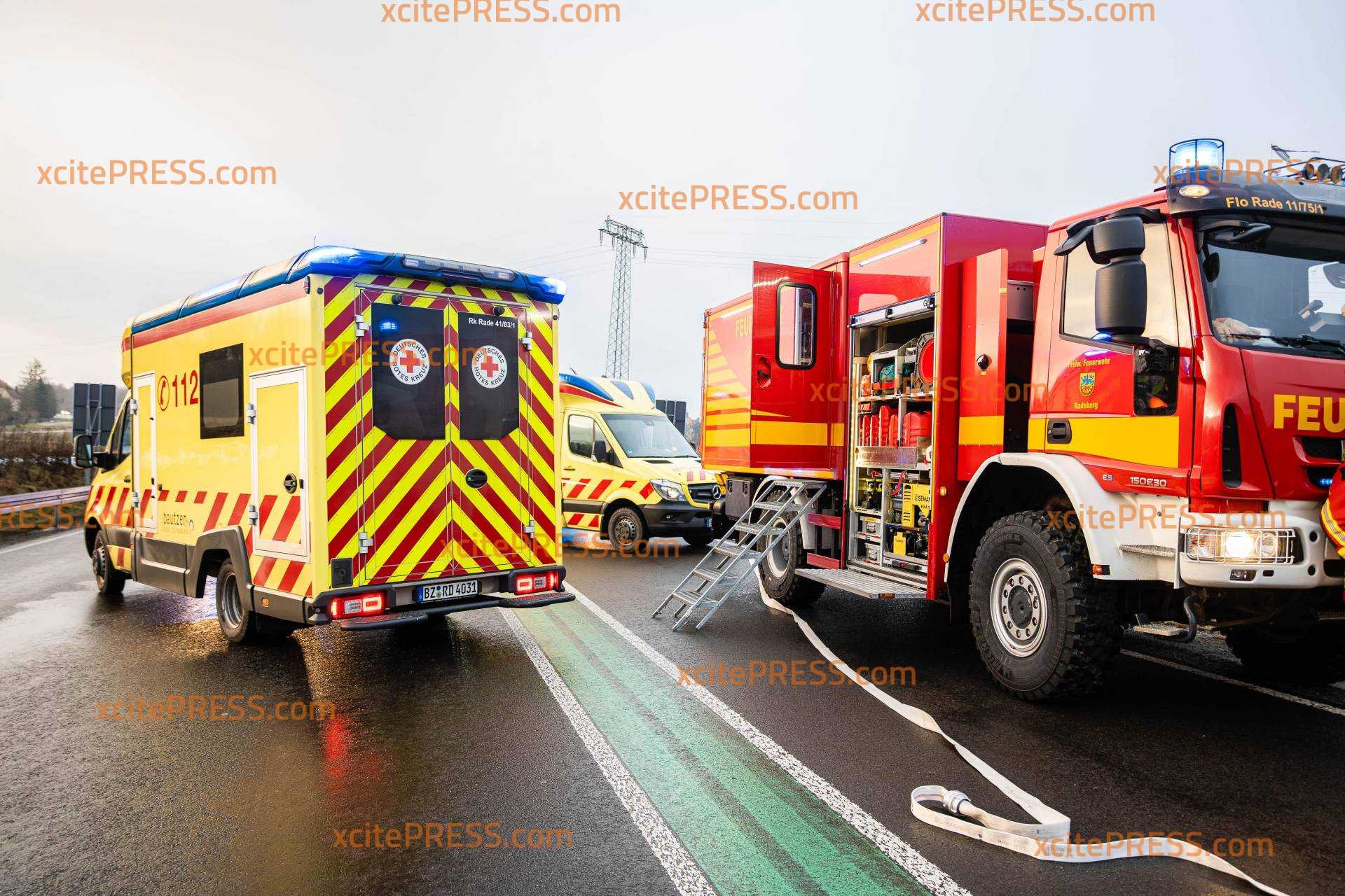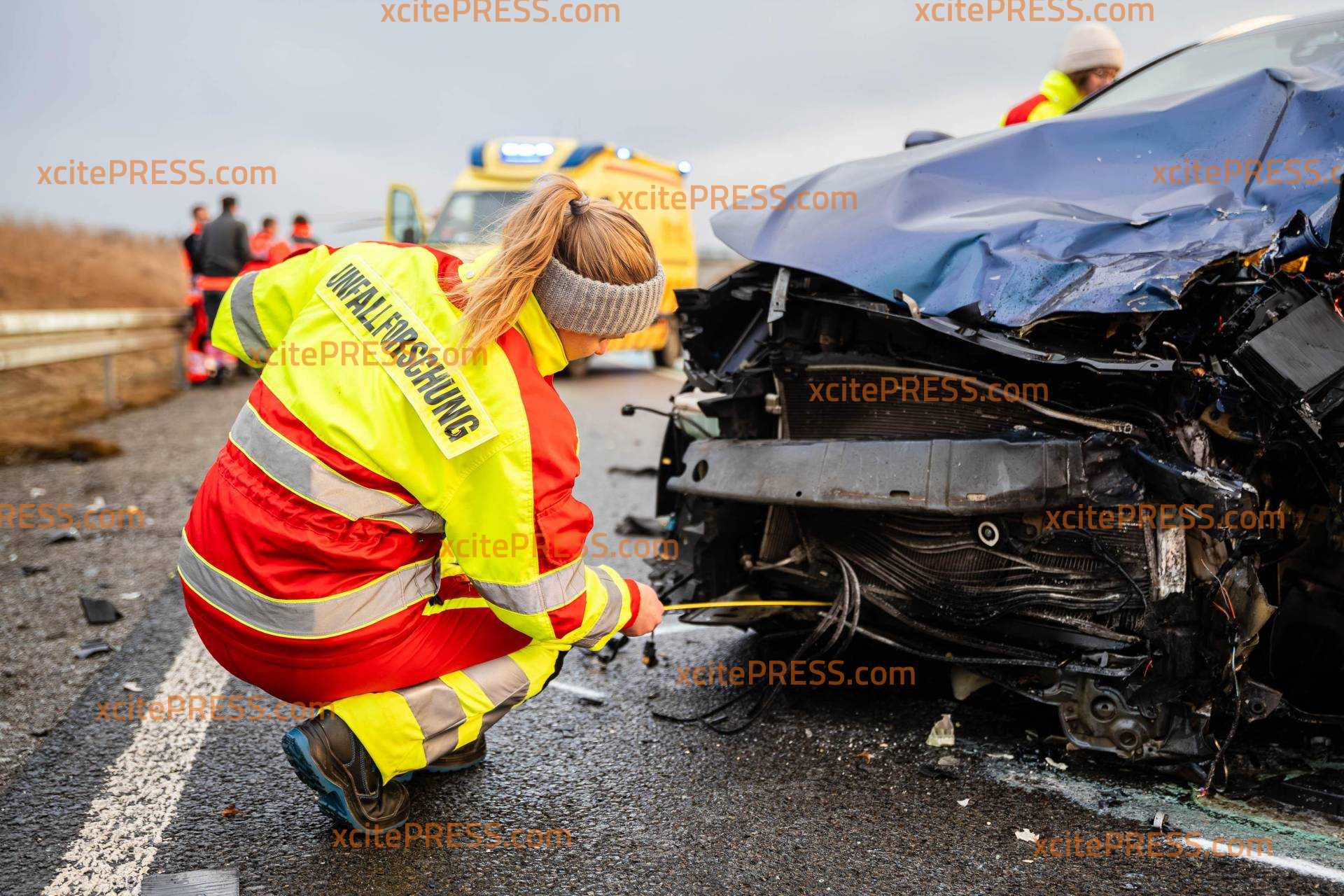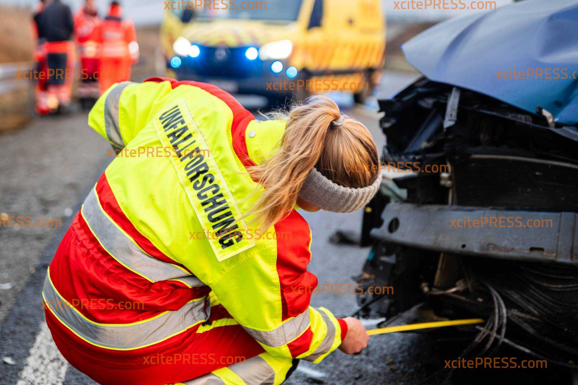 - Feuerwehr und Rettungsdienst arbeiten an Unfallfahrzeug