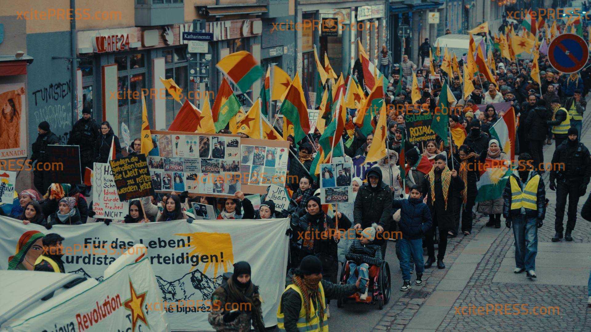 „Deshalb sind wir heute auf der Straße. Wir brauchen Unterstützung und Solidarität mit den Menschen in Rojava.“