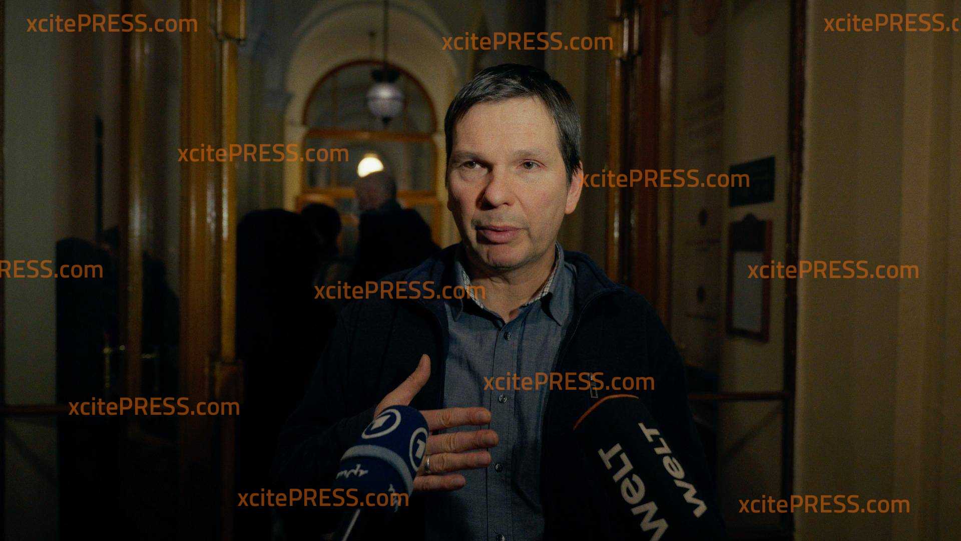 Nach dem Prozess wendet sich Majas Vater Wolfram an die Pressevertreter.