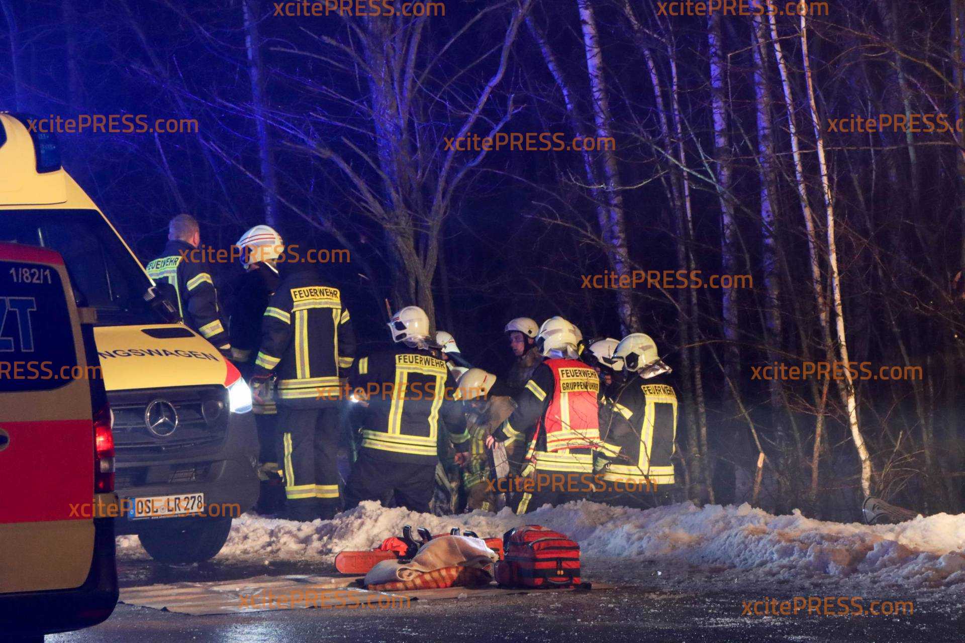 Feuerwehr, Rettungsdienst, Notärzte sowie die Polizei waren mit einem Großaufgebot im Einsatz. Teilweise mussten die Verletzten durch die Feuerwehr mit technischem Gerät aus dem stark beschädigten Fahrzeug befreit werden.
