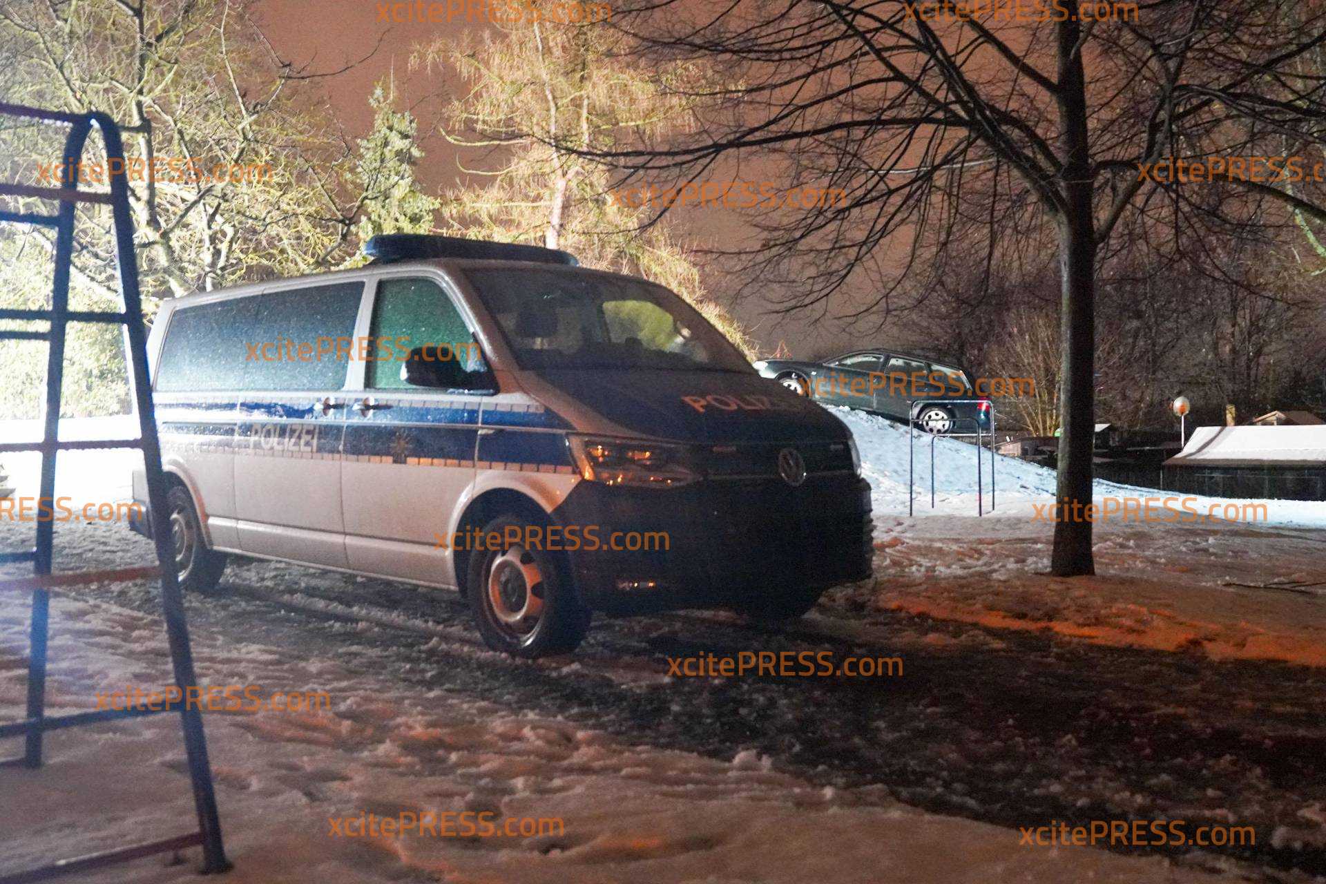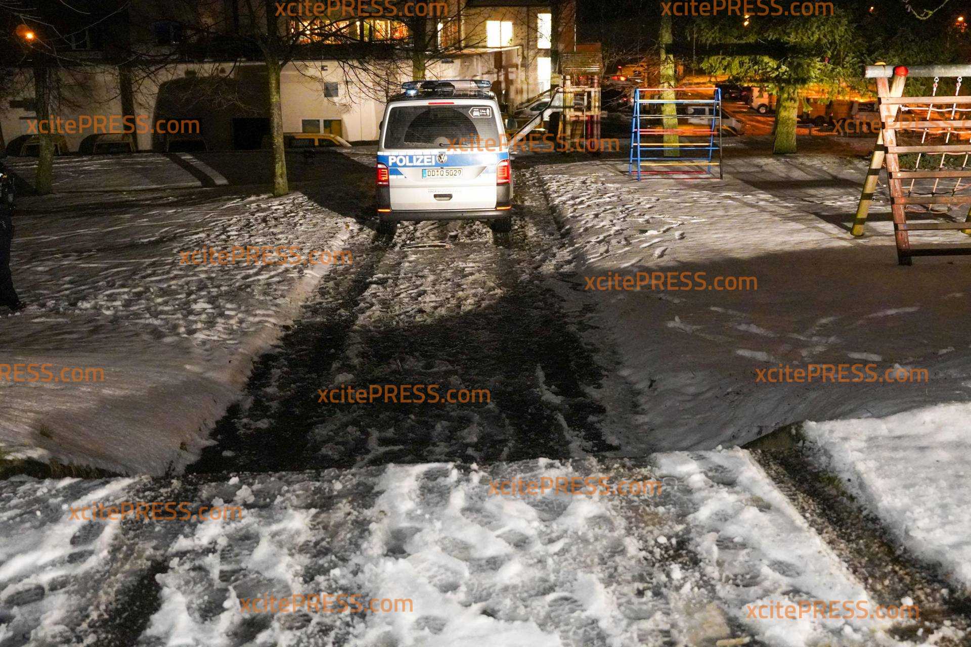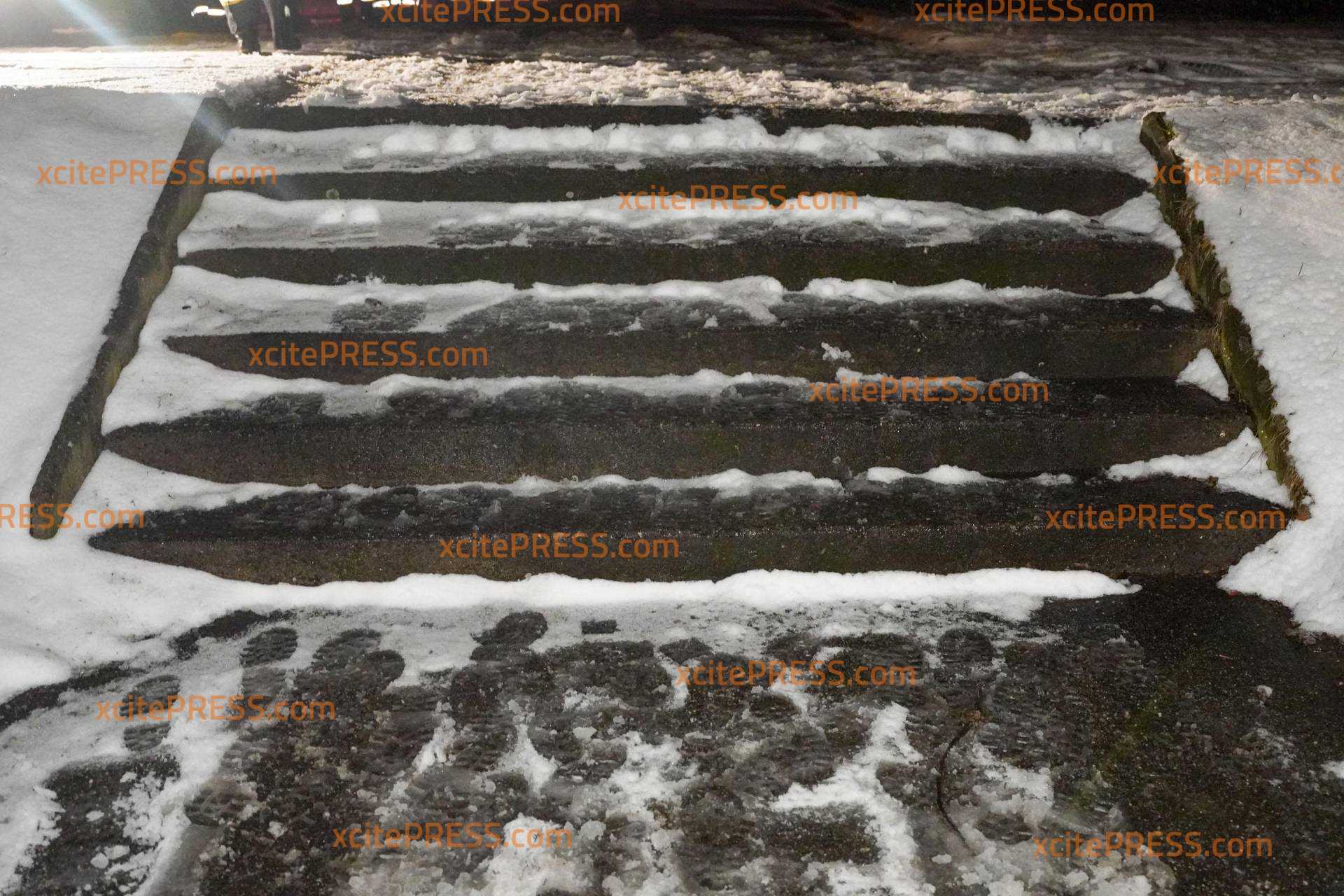 Die Flucht führte durch die Straßen der Stadt, ehe sie eine überraschende Wendung nahm: Der Audi bog auf einen eingezäunten öffentlichen Spielplatz ab. Der Boden war schneebedeckt, eine geschlossene weiße Fläche, die im abendlichen Licht schimmerte. Ohne zu zögern fuhr das Fahrzeug mehrere Treppenstufen hinunter. Das Auto der Polizei ist ebenfalls mehrere Treppenstufen heruntergefahren, wobei es zwischen zwei Treppen zum Stehen kam.