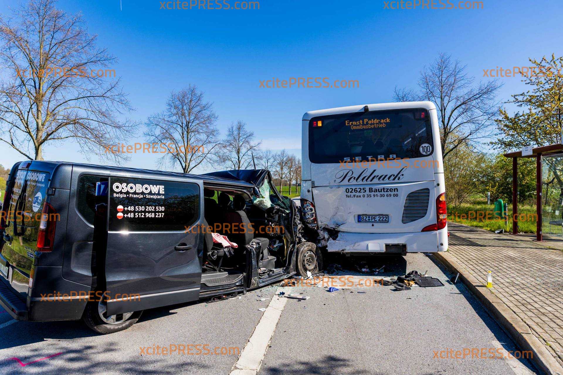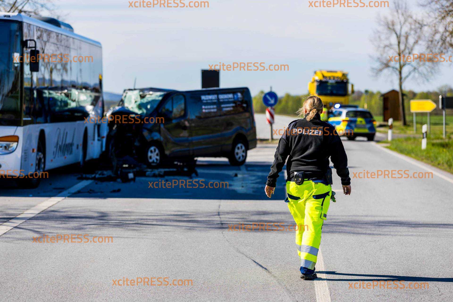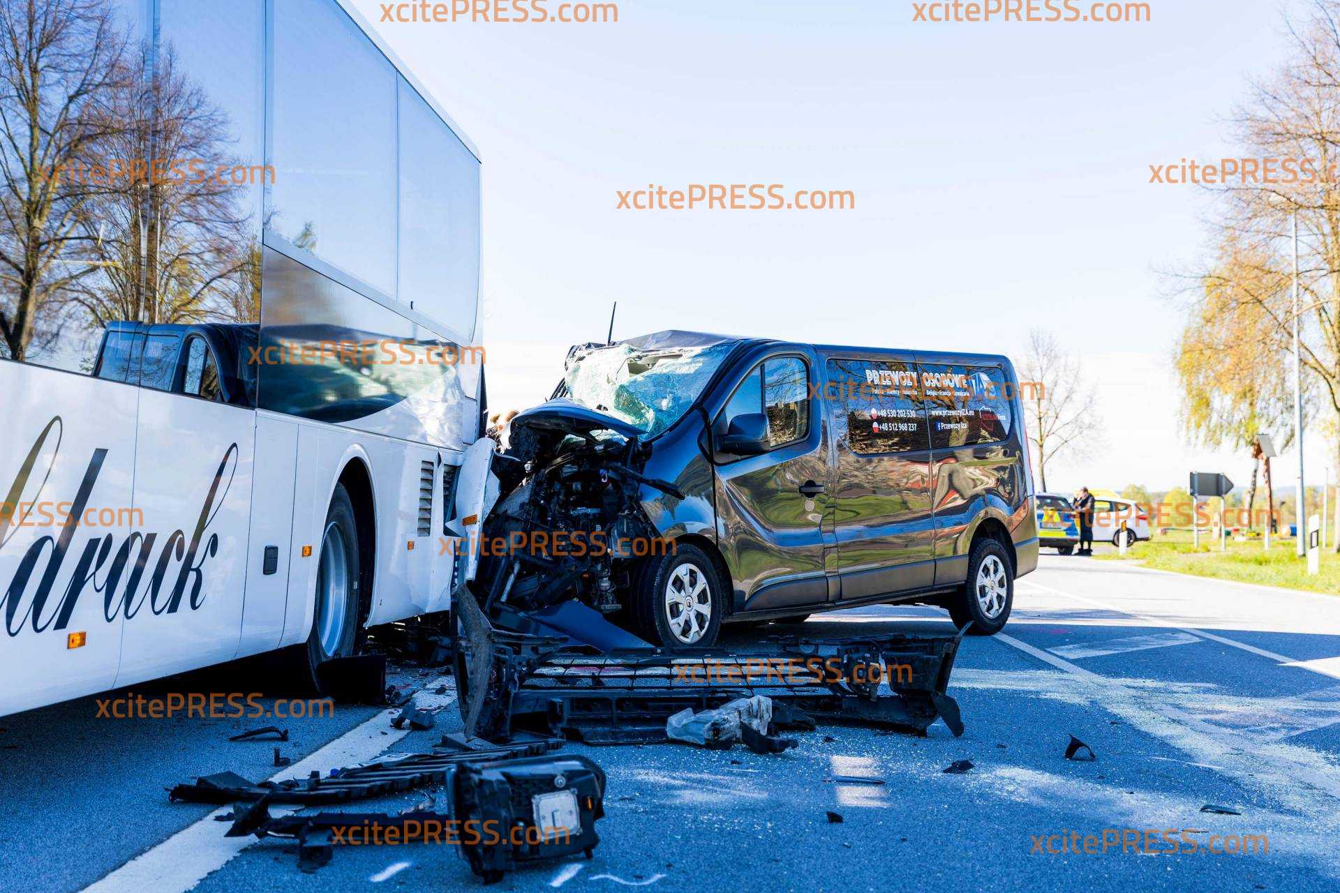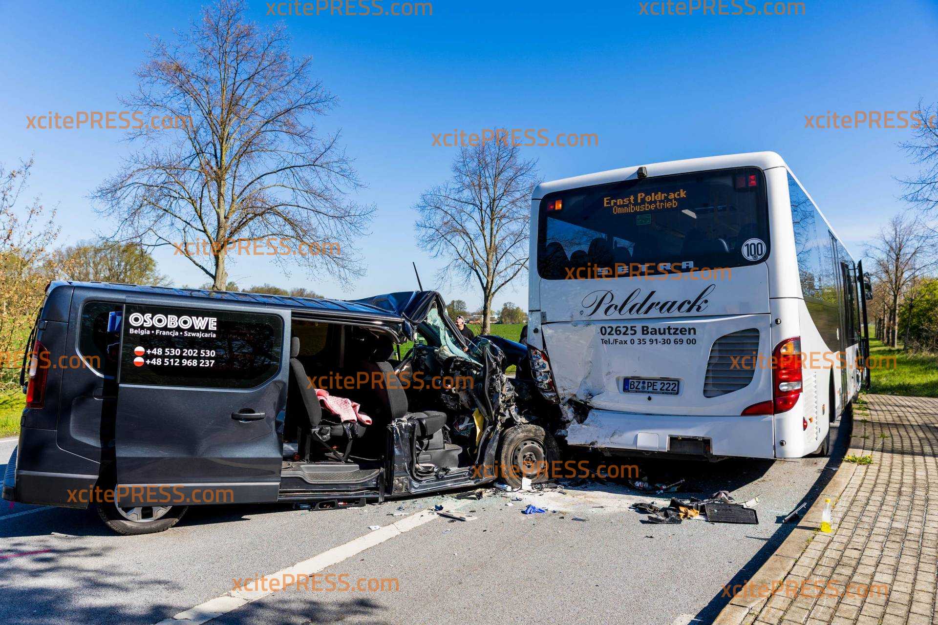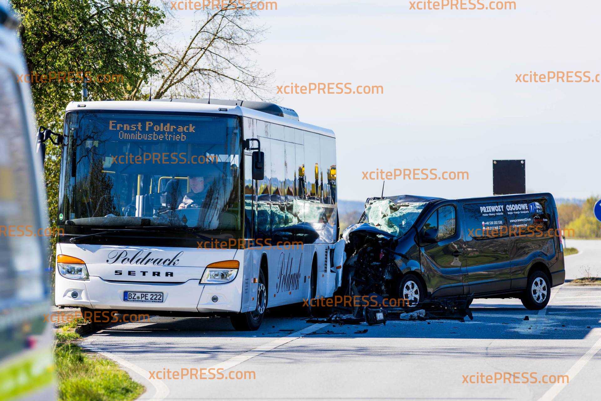 Nach ersten Erkenntnissen war ein polnischer Kleintransporter der Marke Renault auf einen stehenden Linienbus aufgefahren. Durch die Wucht des Aufpralls wurden mehrere Insassen des Transporters verletzt und teilweise im Fahrzeug eingeklemmt.