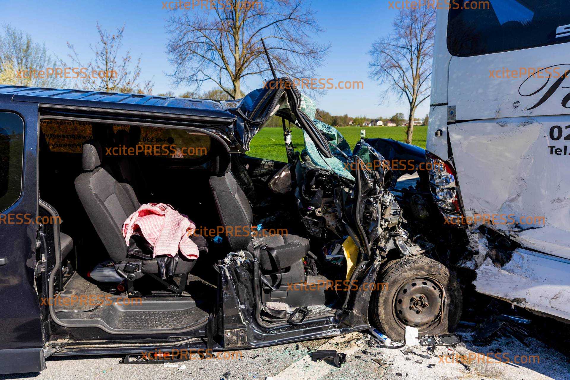 Schwerer Unfall zwischen Linienbus und Kleinbus - 6 Verletzte - MANV ausgelöst - mehrere Rettungshubschrauber vor Ort